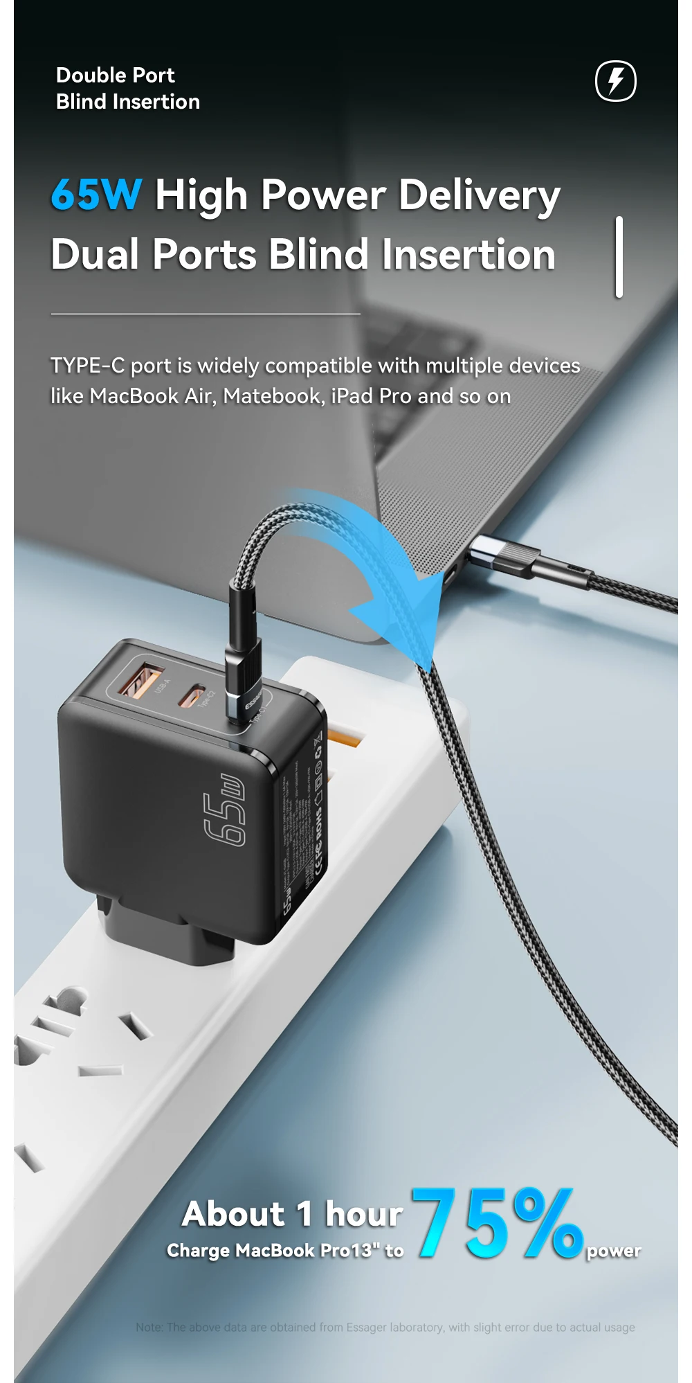 Para Macbook Pro13, solo tarda 1 hora en cargar hasta 75%