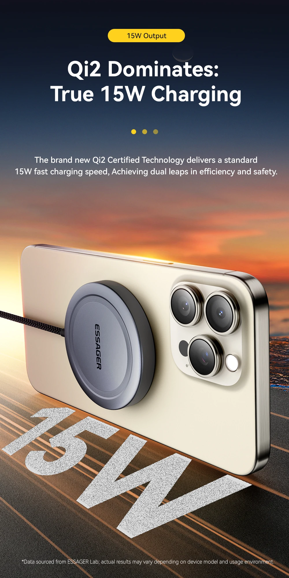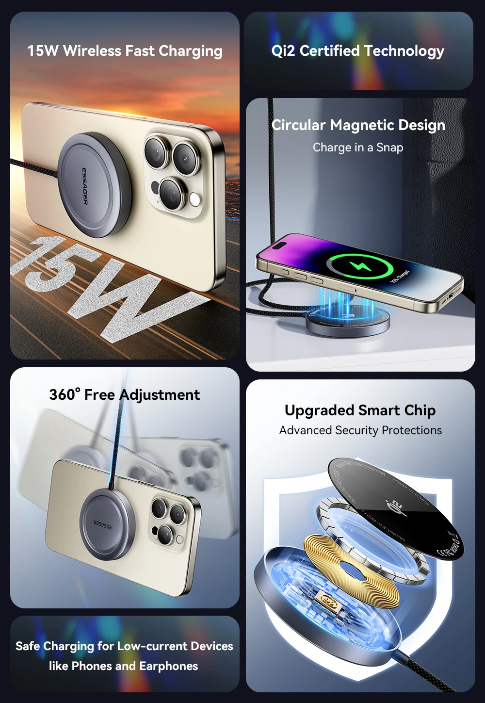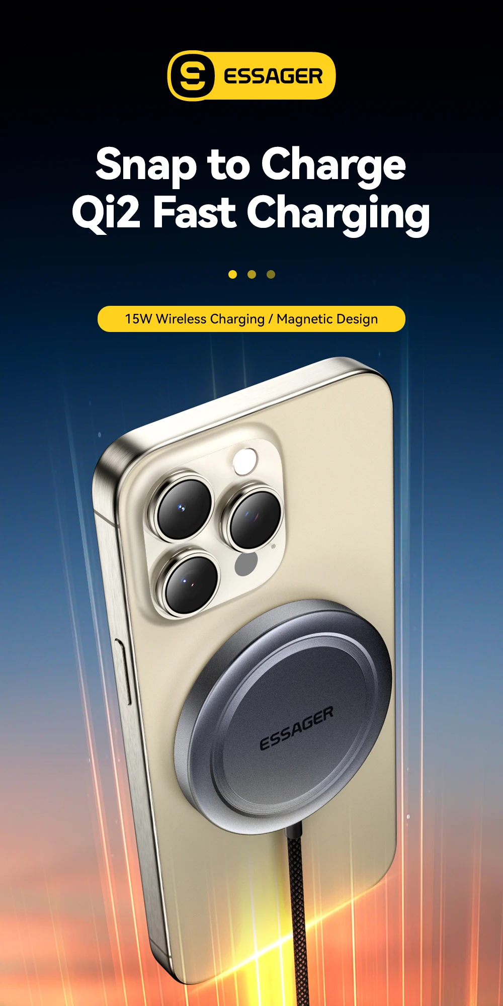 ESSAGER-cargador inalámbrico magnético de 15W, cargador de teléfono de carga rápida RGB para iPhone 16, 15, 14, 13 Pro, base de carga de teléfono Macsafe