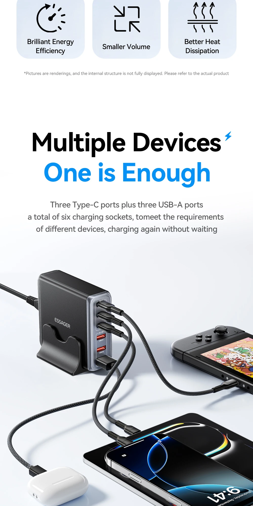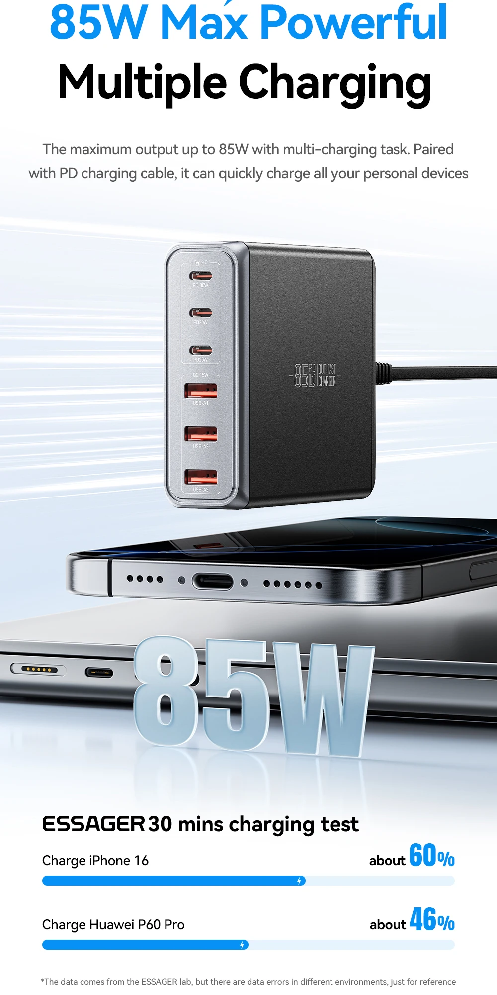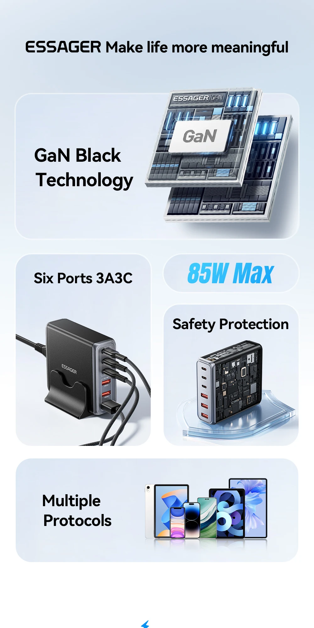 Essager-cargador rápido de 85W, 6 puertos USB tipo C, estación de carga de escritorio PD 3,0, carga rápida para iPhone 17 16 15 iPad MacBook y portátil