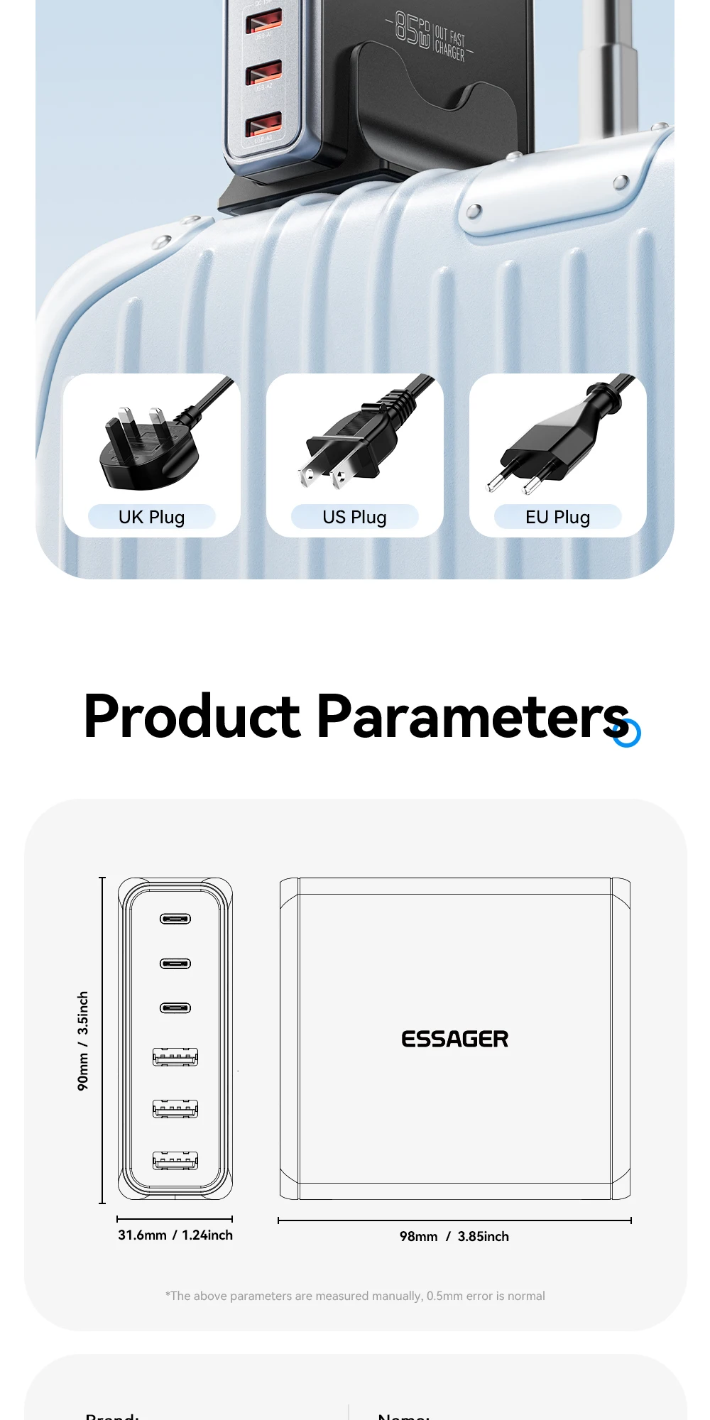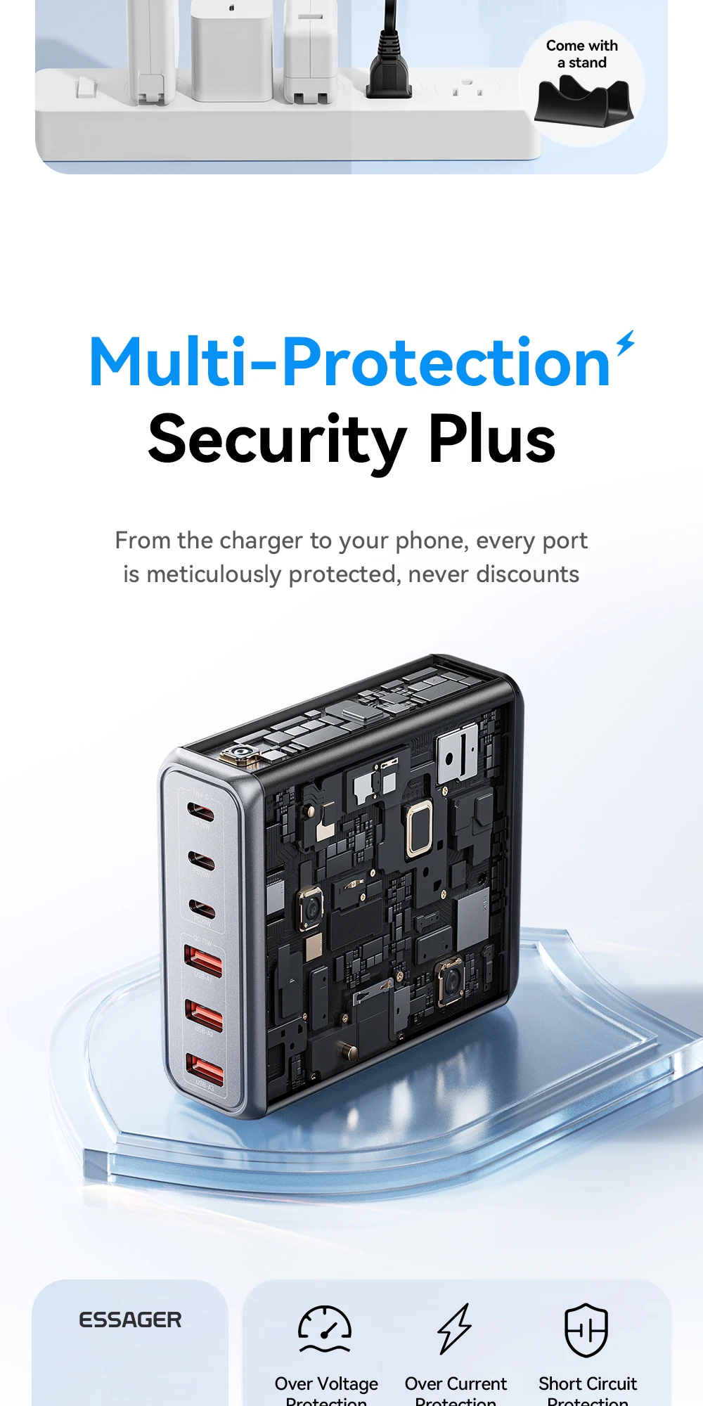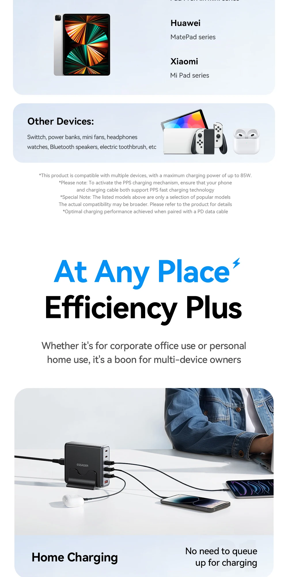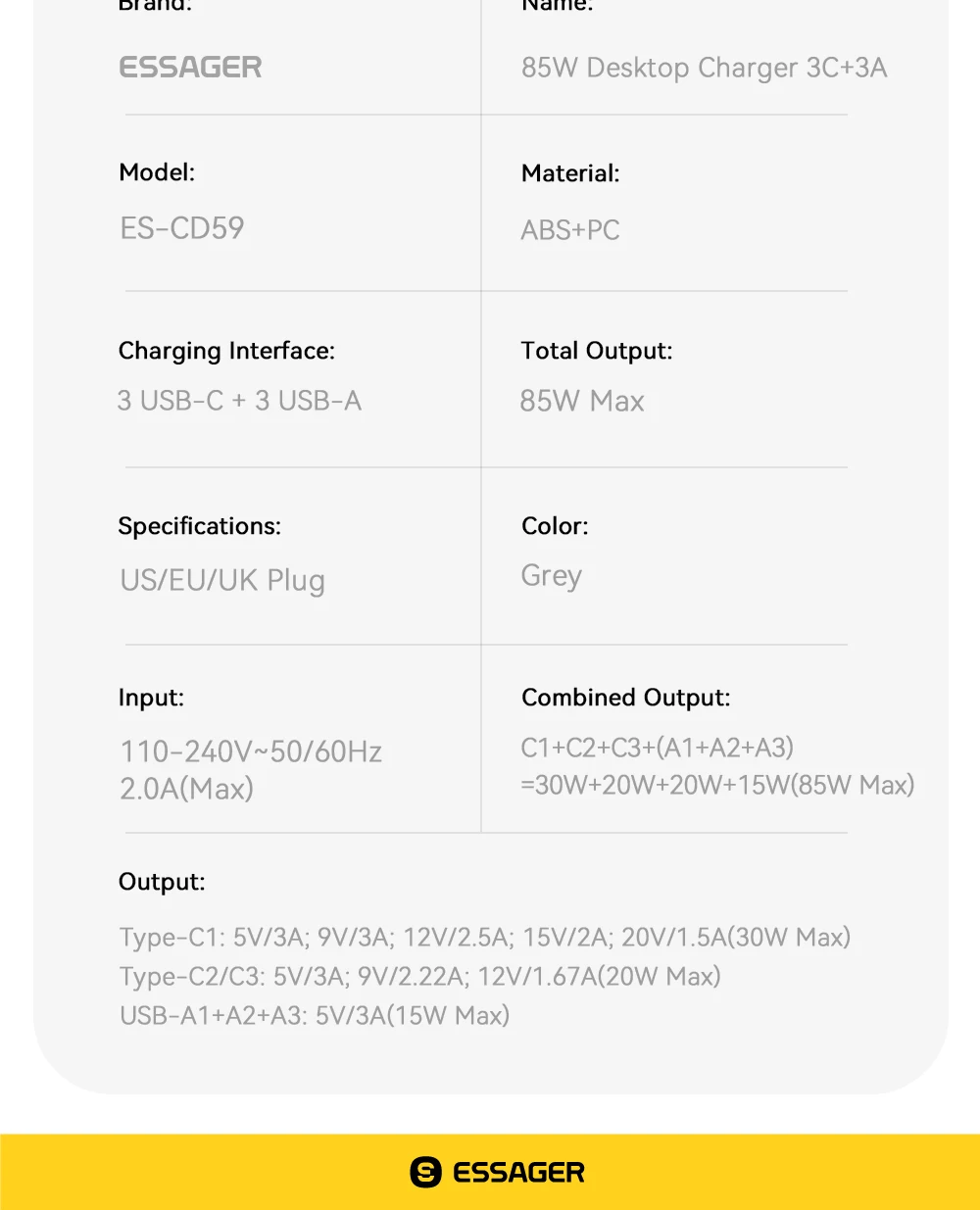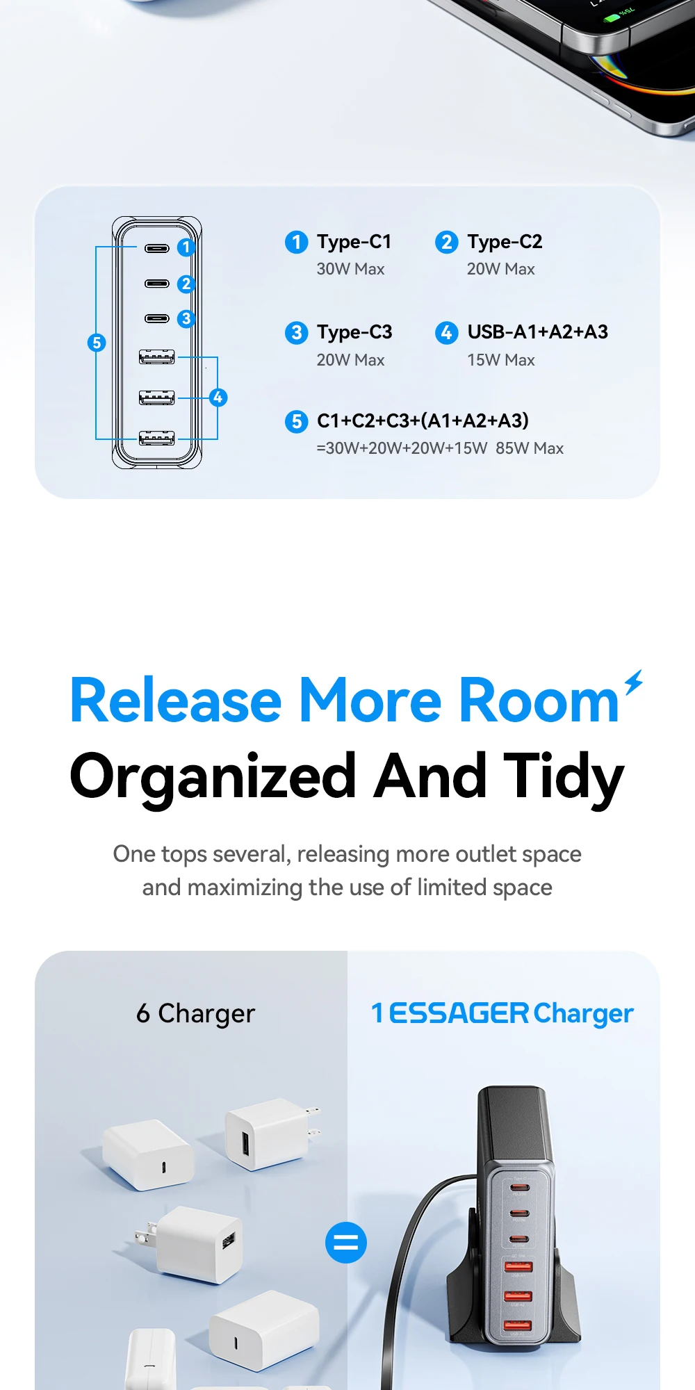 Comprar Essager-cargador rápido de 85W, 6 puertos USB tipo C, estación de carga de escritorio PD 3,0, carga rápida para iPhone 17 16 15 iPad MacBook y portátil