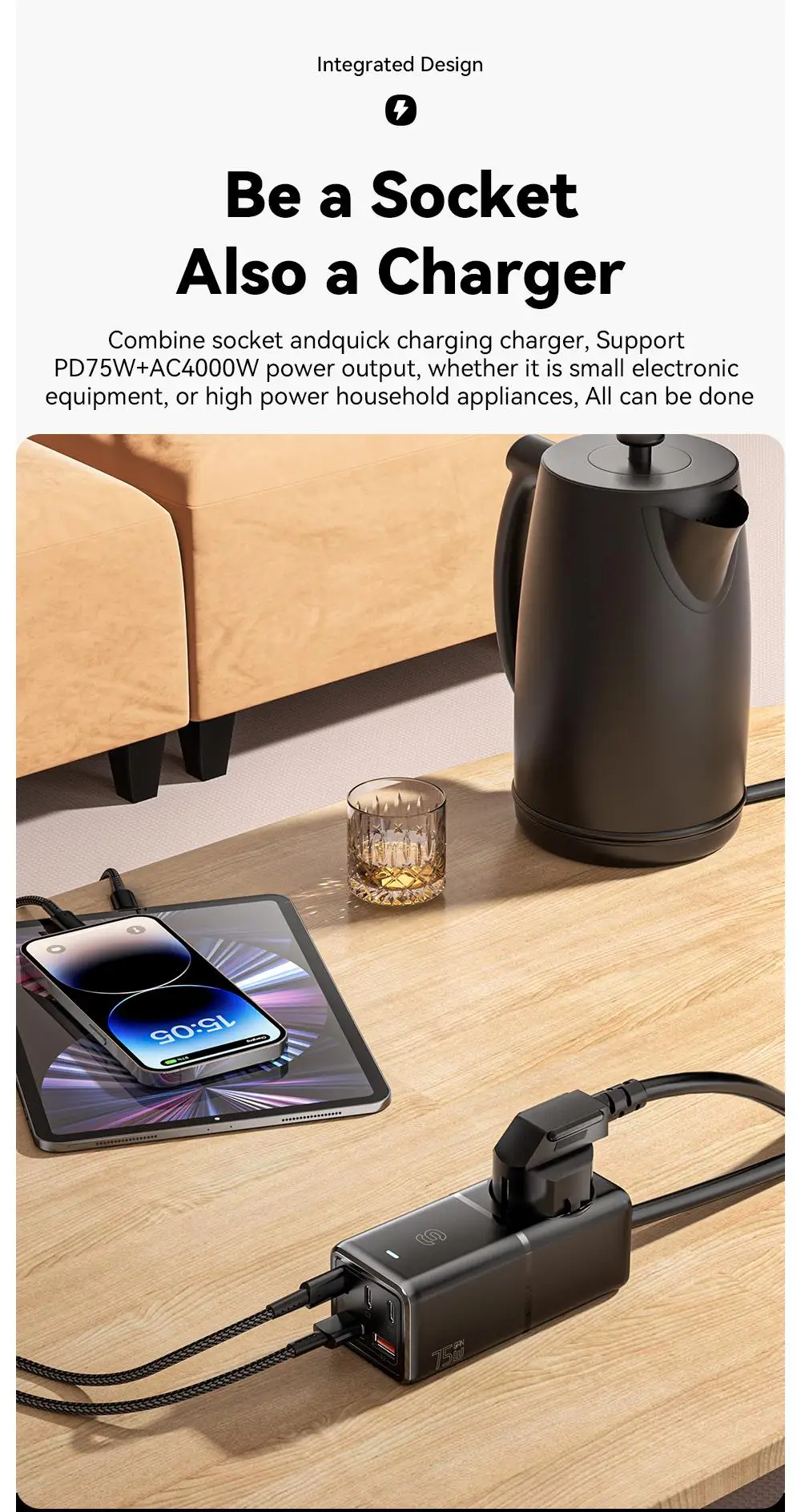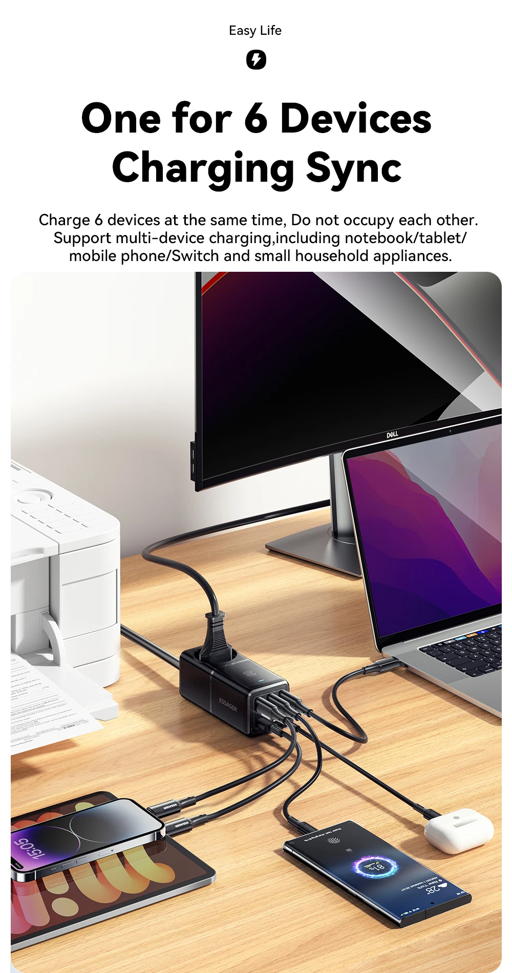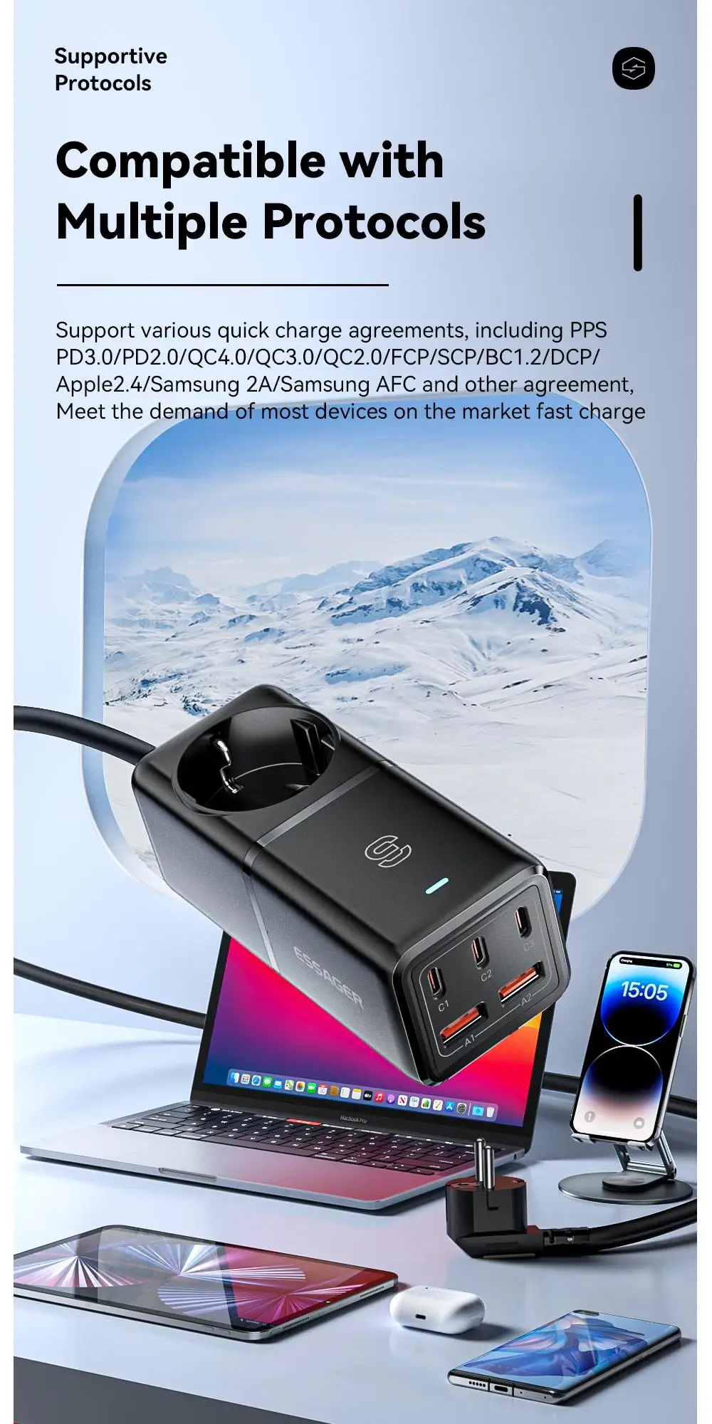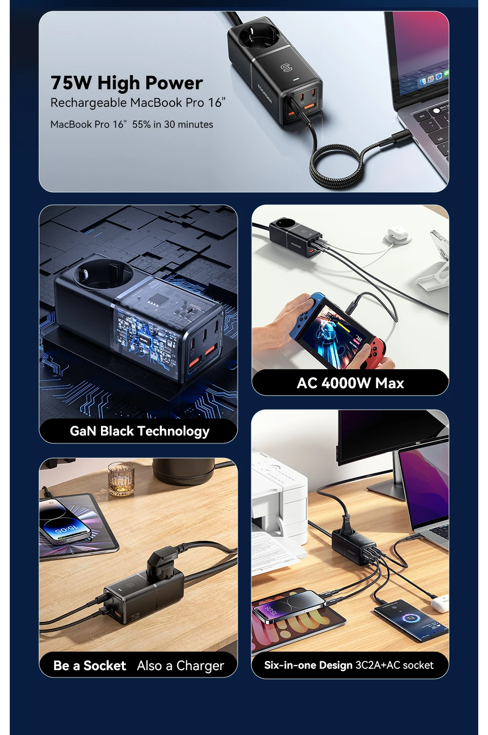 Essager 75W GaN3 Pro Desktop Cargador rápido Laptop Power Station