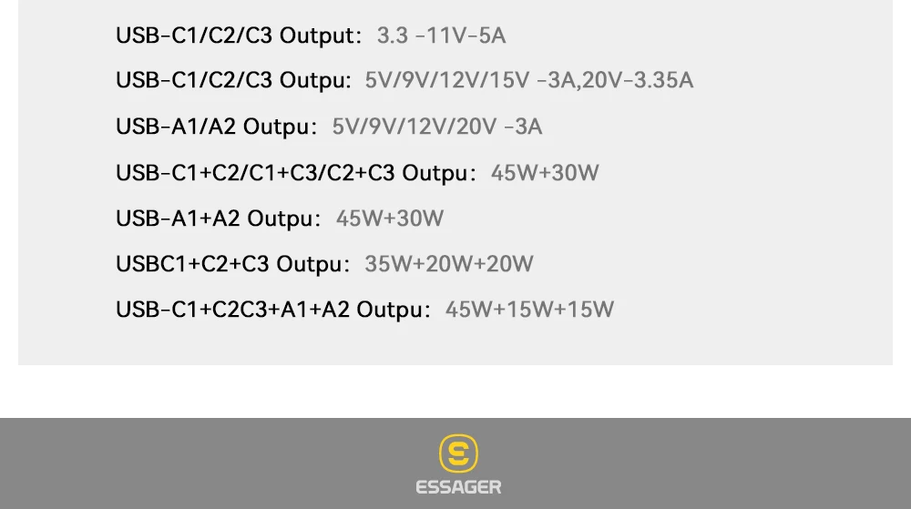 Especificaciones del cargador GaN 3C + 2A