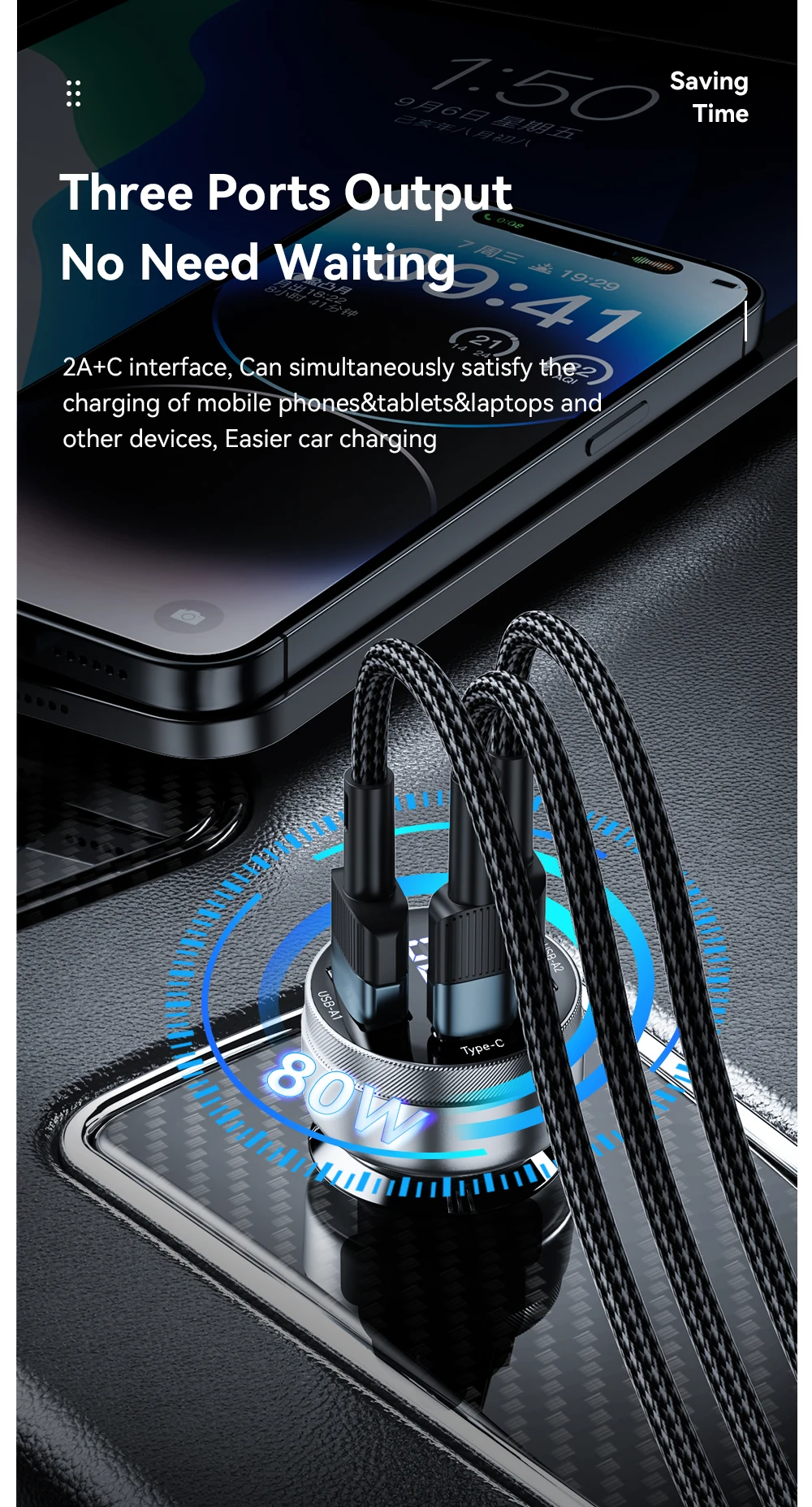 Comprar Essager-cargador USB tipo C para coche, carga rápida de teléfono para iPhone 14 13, Huawei, Xiaomi, Samsung, iPad, portátil y tableta, 80W