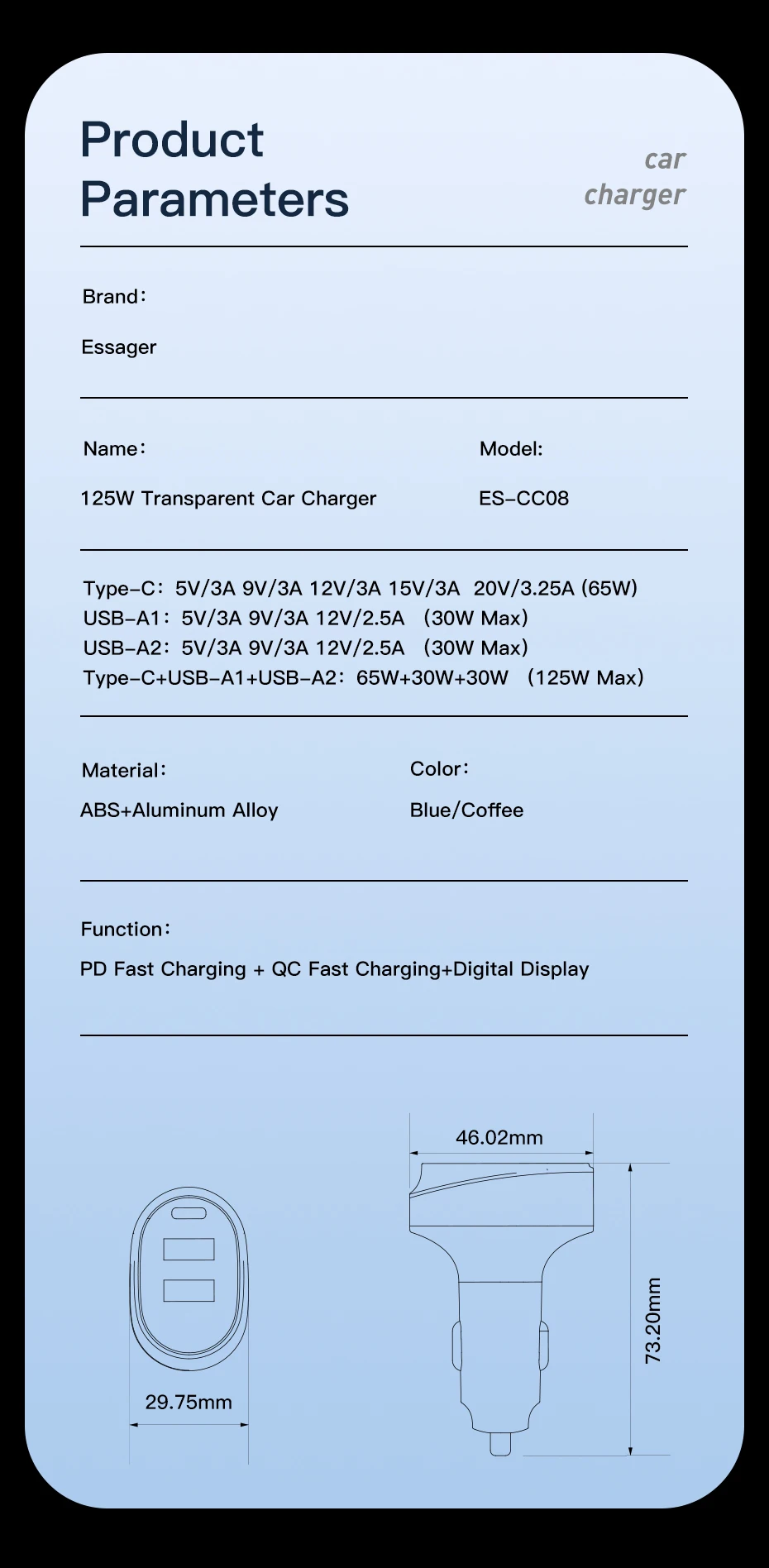 Nombre: Essager 125W pantalla Digital Car Chrger