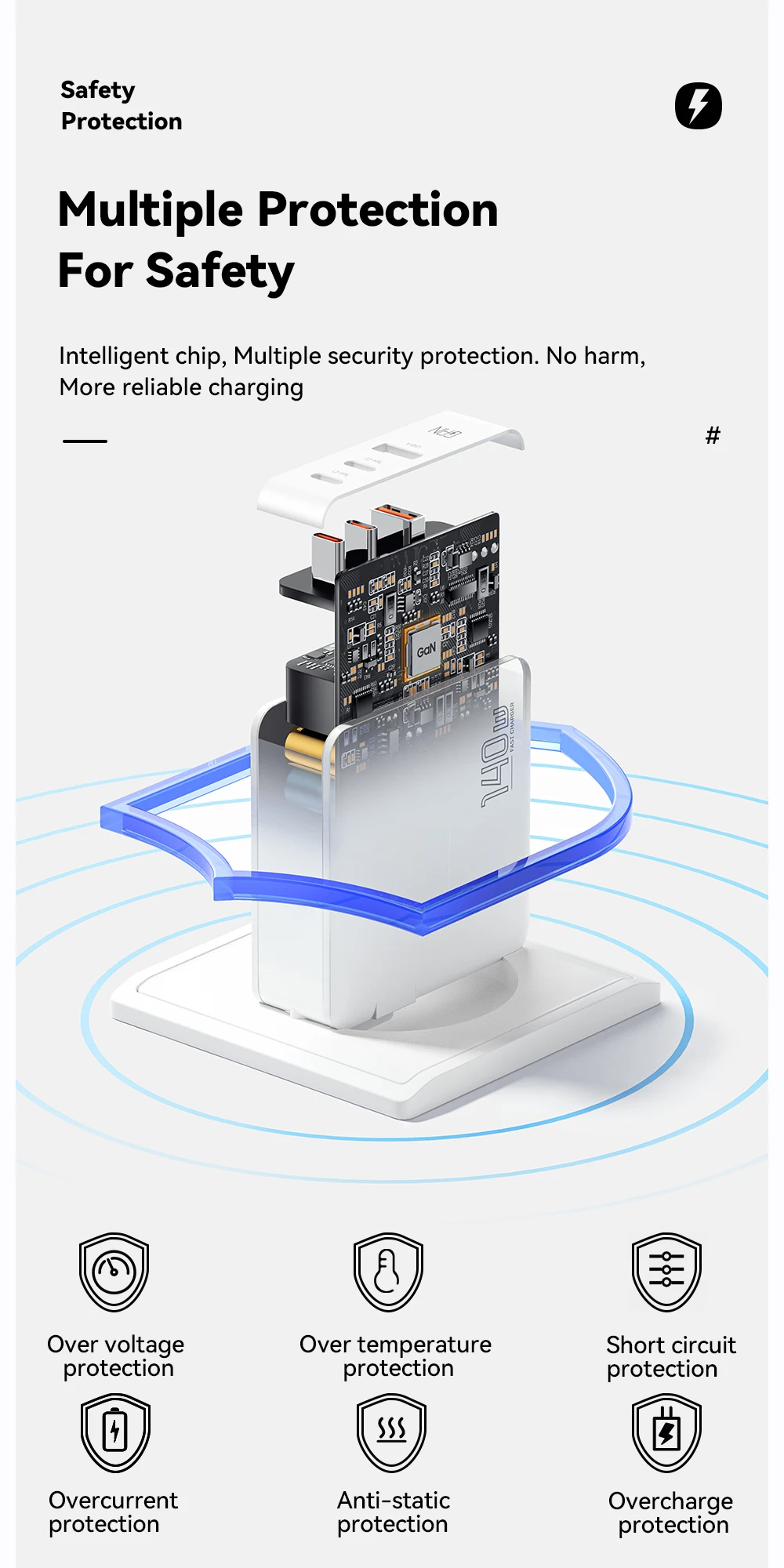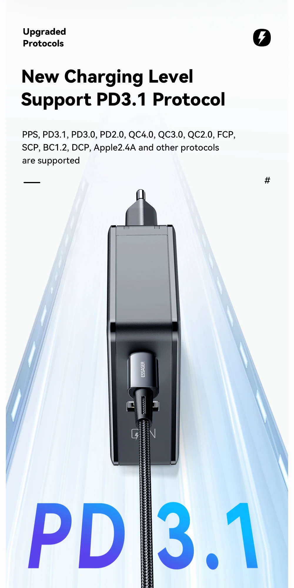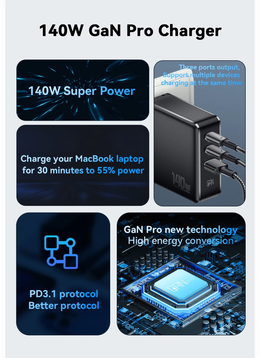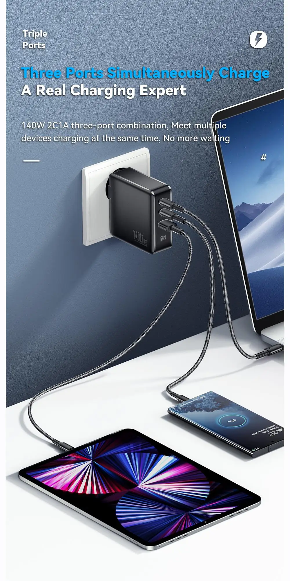 Cargador rápido Essager 140W Puertos múltiples GaN Pro PD3.1 2C + 1A