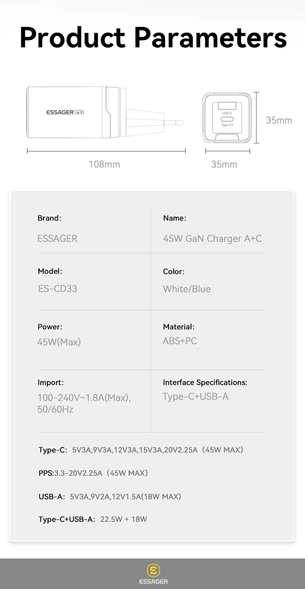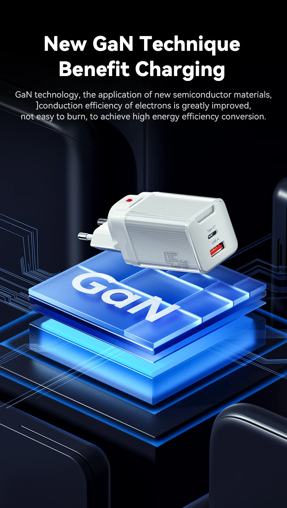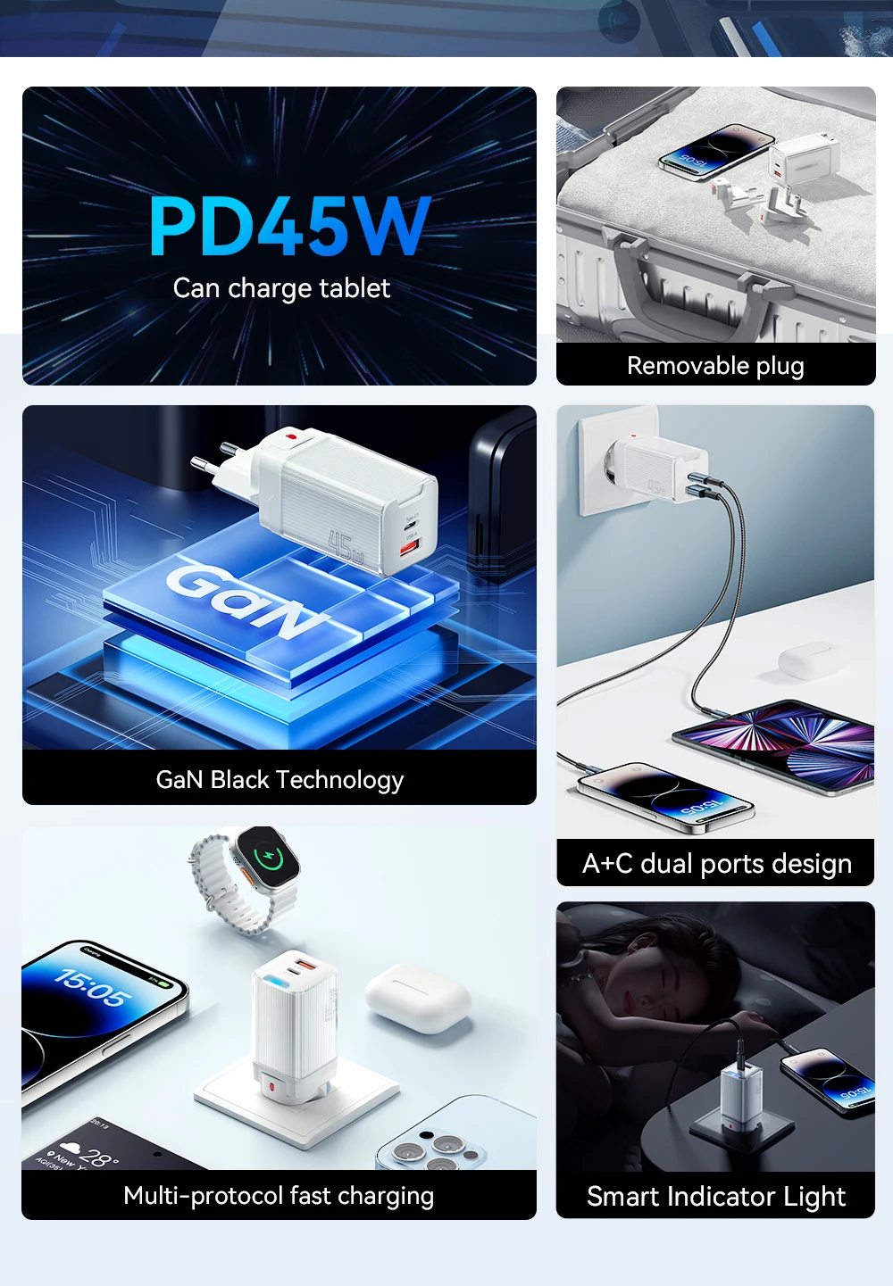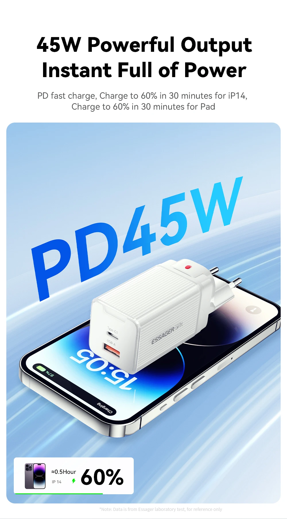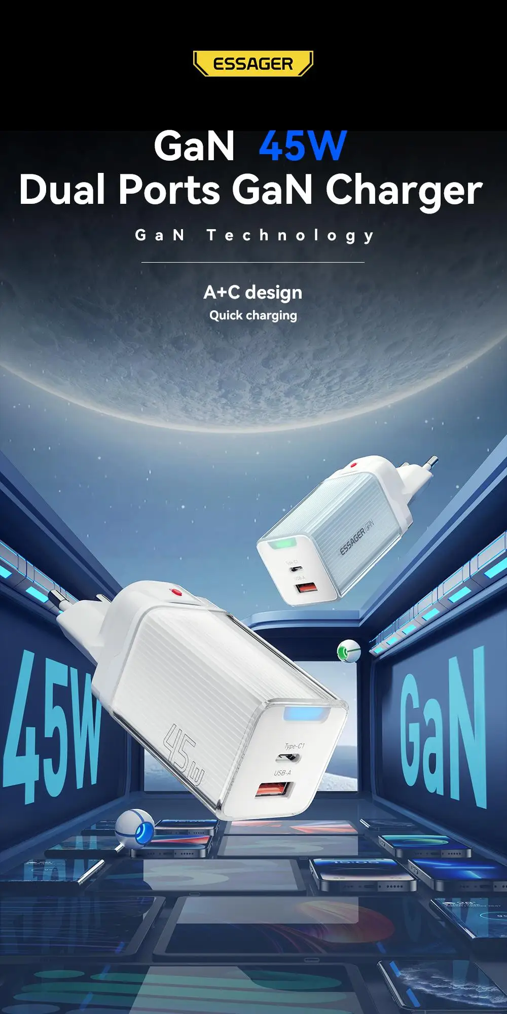 Comprar Essager-cargador USB tipo C GaN de 45W, carga rápida PD QC 3,0 para iPhone 14, 13 Pro, Samsung, XiaoMi, carga rápida de viaje para teléfono