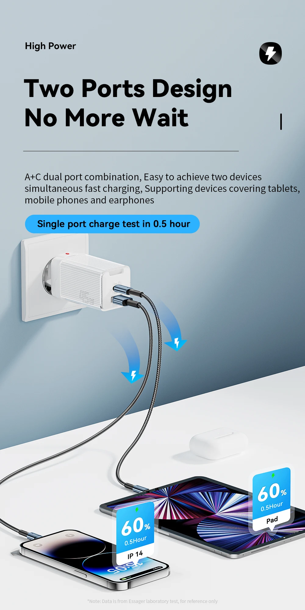 USB C1 + USB C2:PD25W + PD20W/PD20W + PD25W