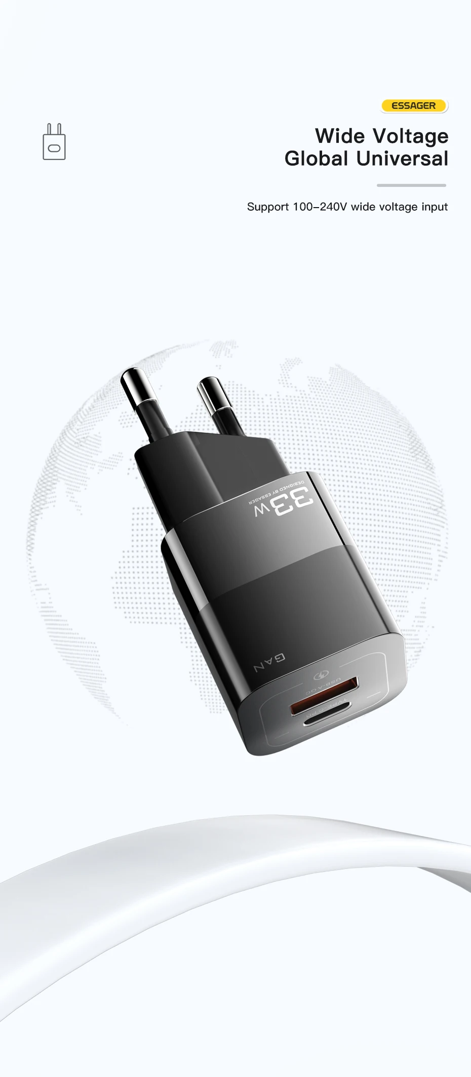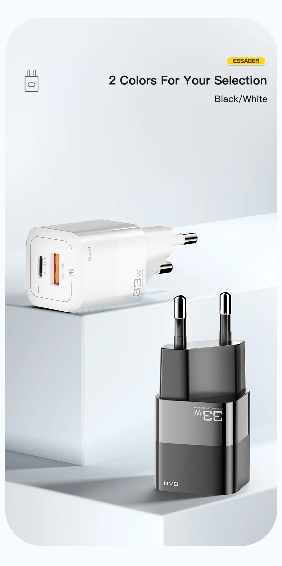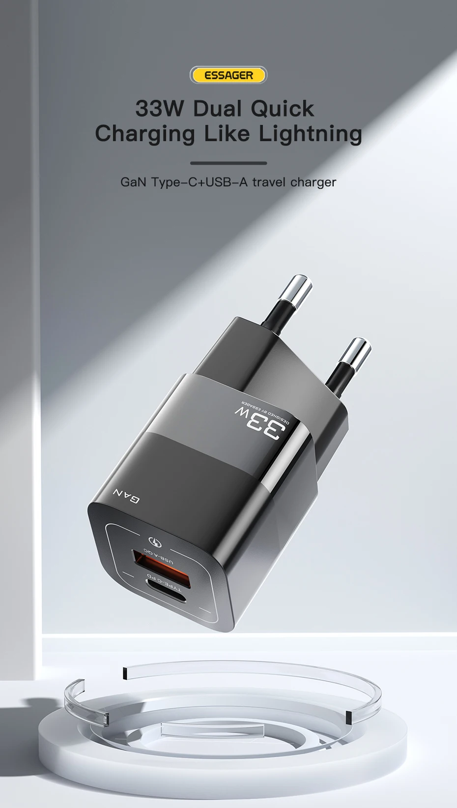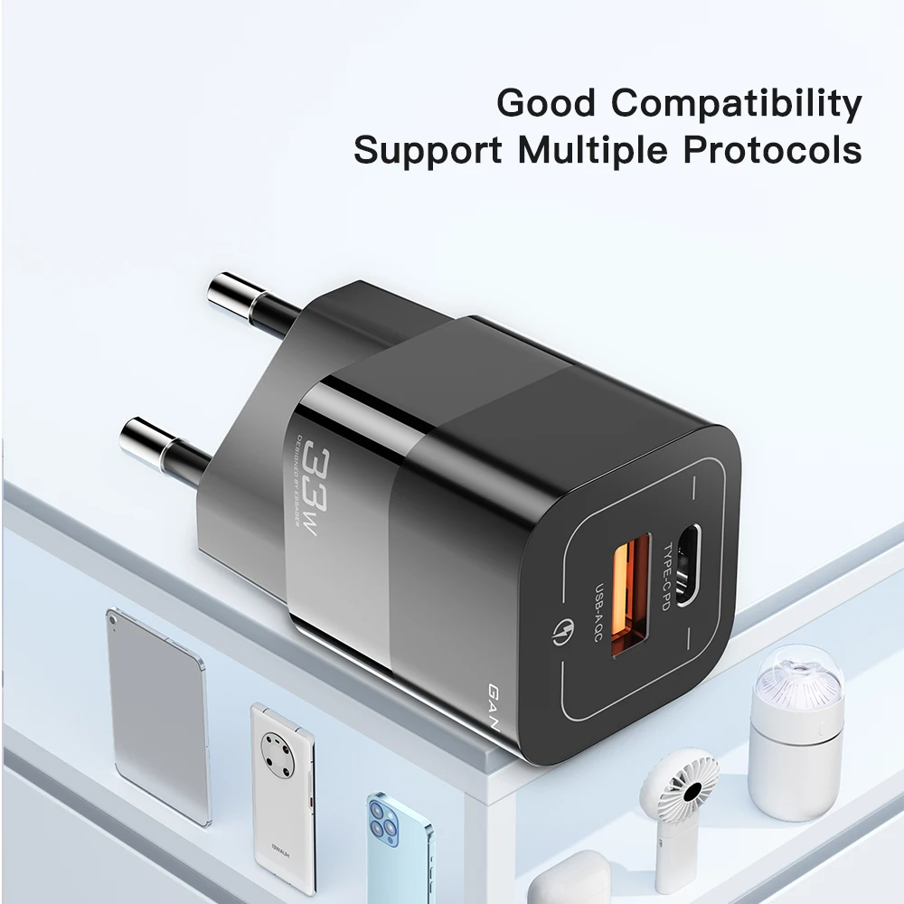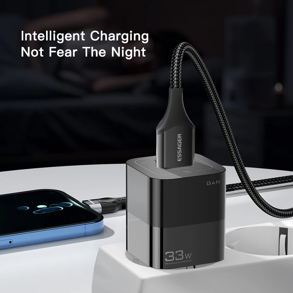 Comprar Essager-cargador USB tipo C para teléfono móvil, dispositivo de carga rápida de 33W GaN QC4.0 PD3.0 para Xiaomi Oneplus Redmi Samsung Huawei