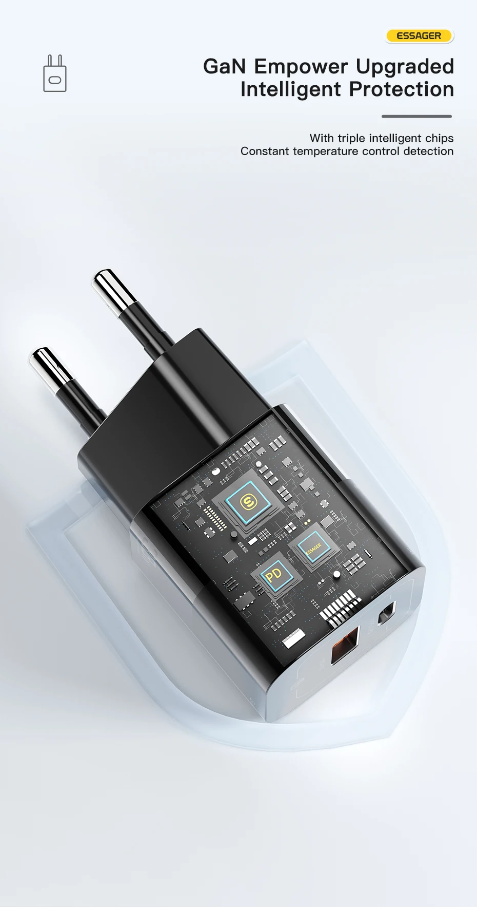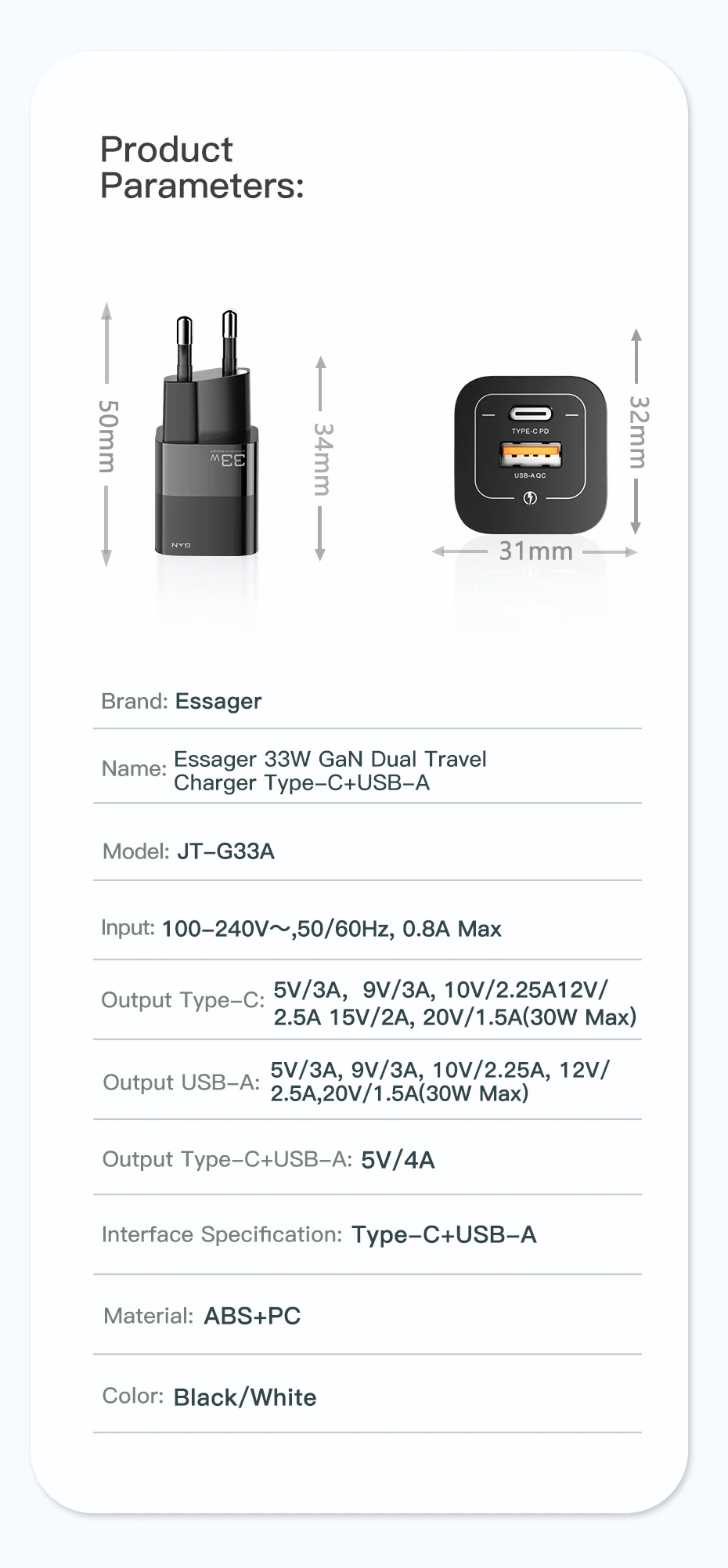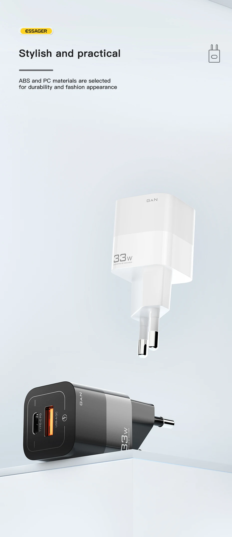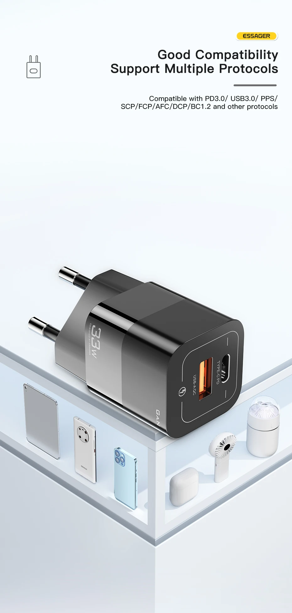 Comprar Essager-cargador USB tipo C para teléfono móvil, dispositivo de carga rápida de 33W GaN QC4.0 PD3.0 para Xiaomi Oneplus Redmi Samsung Huawei