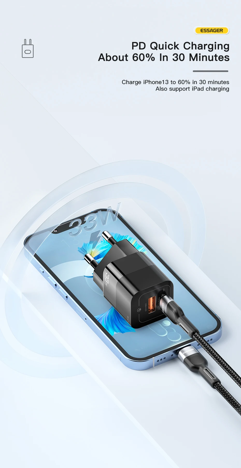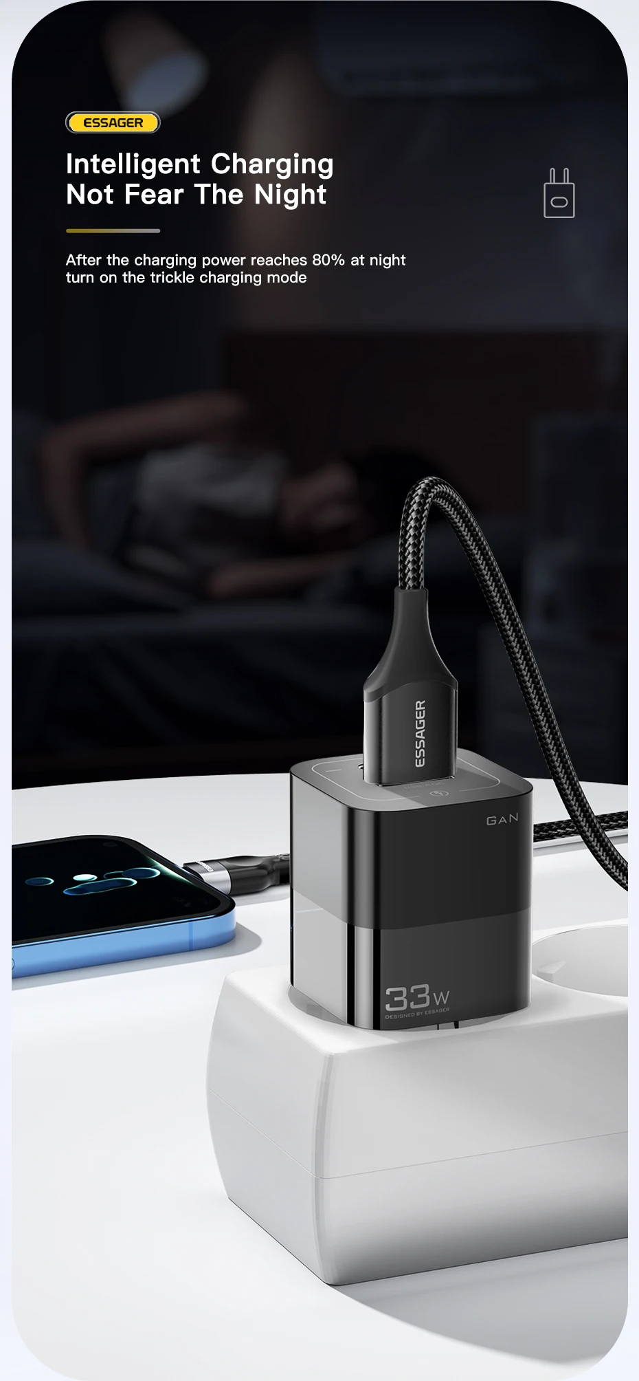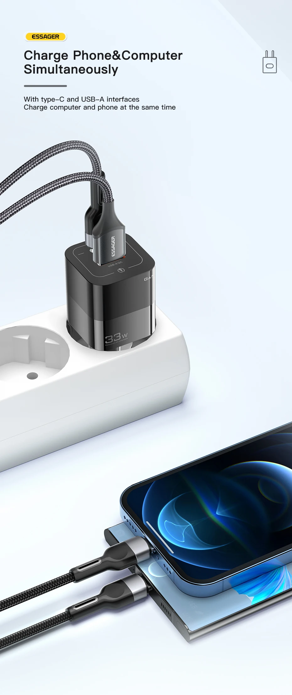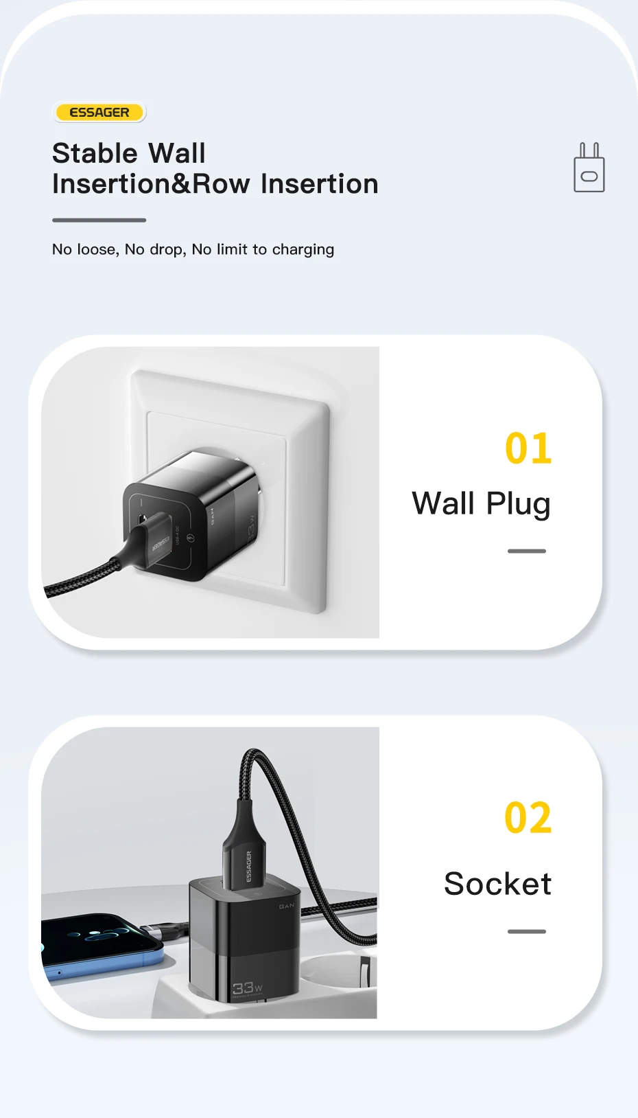 Comprar Essager-cargador USB tipo C para teléfono móvil, dispositivo de carga rápida de 33W GaN QC4.0 PD3.0 para Xiaomi Oneplus Redmi Samsung Huawei