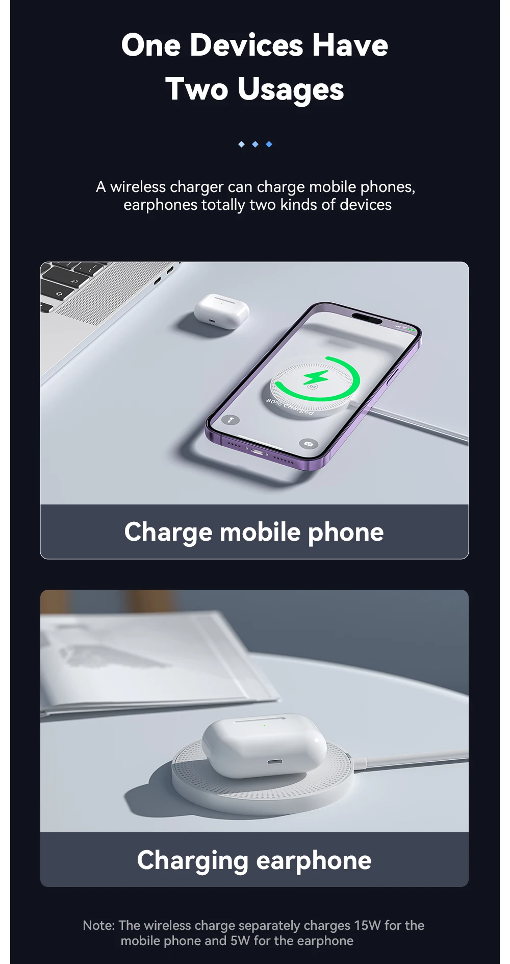 Atención:1.Solo los teléfonos de la serie iPhone 12 13 14 pueden admitir la alineación magnética automática.2.Otros teléfonos solo admiten carga inalámbrica rápida.No se admite la alineación magnética automática.Tenga en cuenta.El cargador PD de 20 W admite carga rápida y utiliza solo un puerto.Si hay dos dispositivos conectados, entonces se volverá a cargarse normalmente.Tenga en cuenta.Entrada: