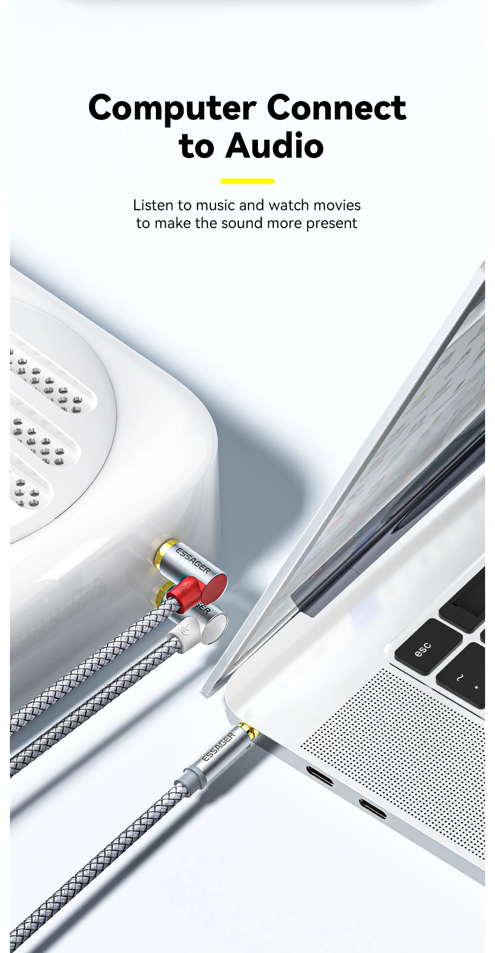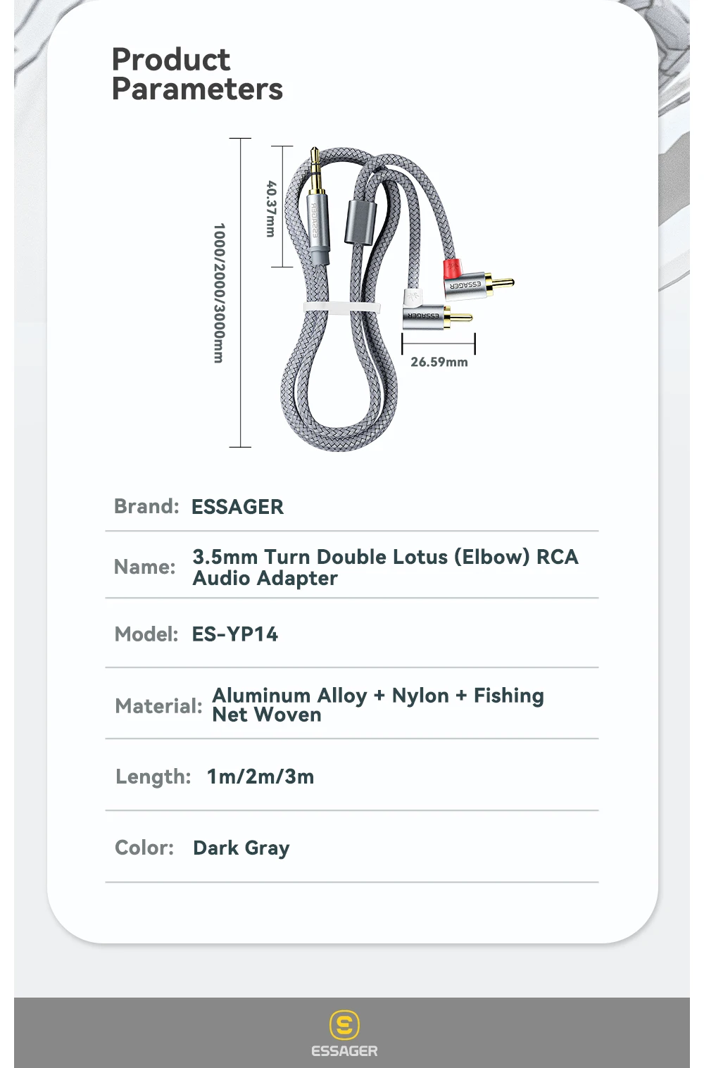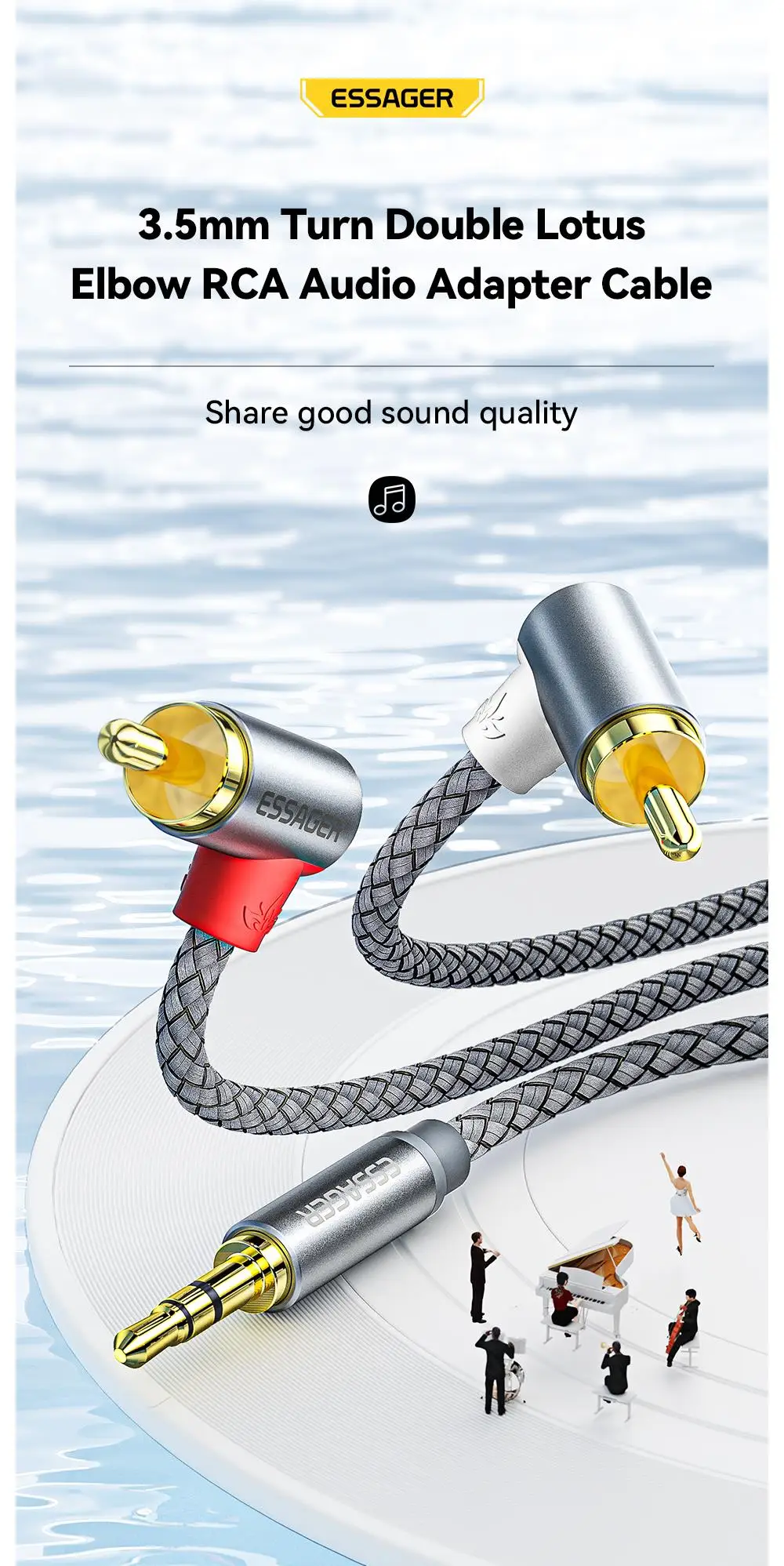 Comprar Essager-Conector de Cable RCA de 90 °, divisor macho de 3,5mm a 2RCA, AUX, Audio estéreo, para amplificador de TV, PC, DVD, auriculares, altavoz