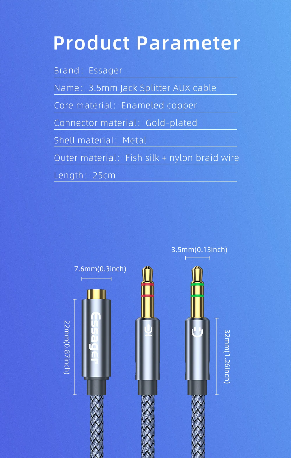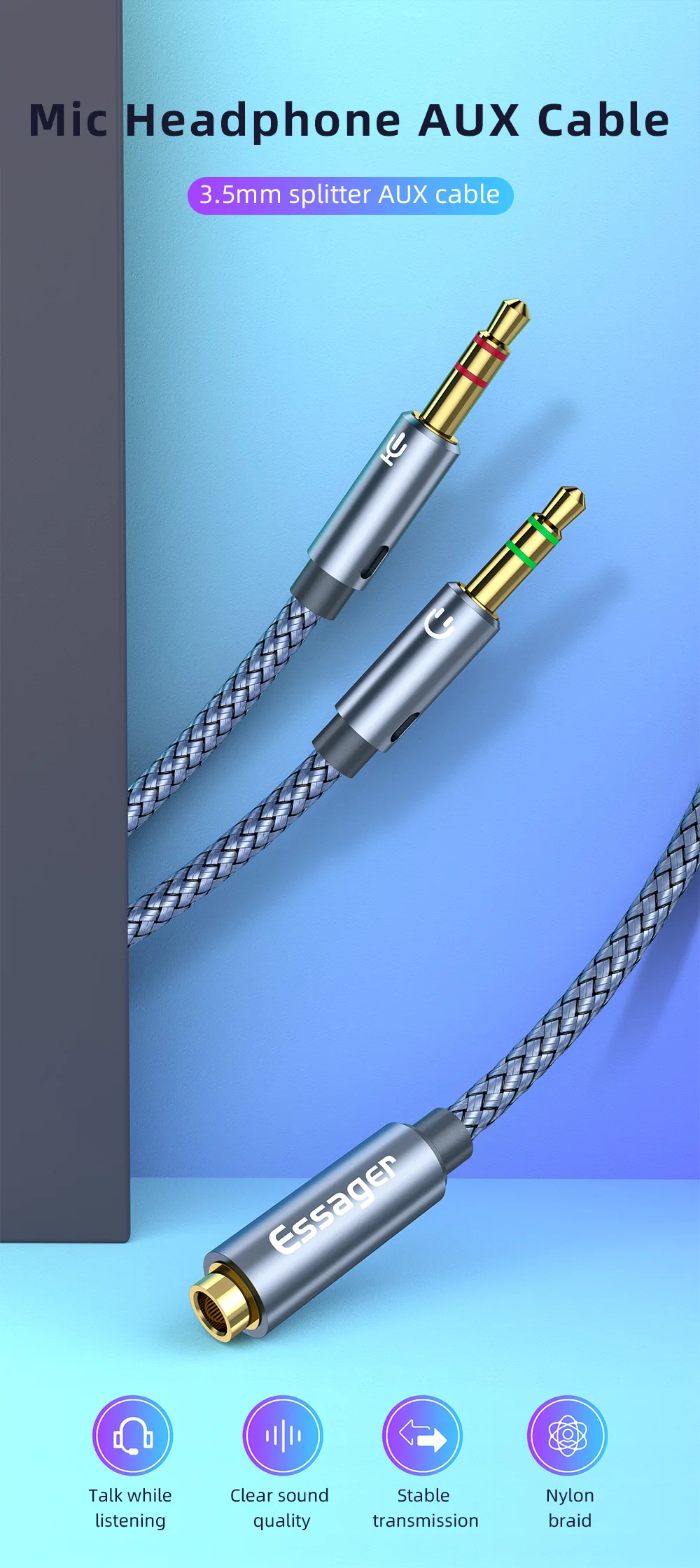 Comprar Essager-divisor de Audio para auriculares, Cable auxiliar hembra de 3,5mm a conector macho de 2 y 3,5mm para altavoz de ordenador, micrófono, divisor Y a adaptador de PC