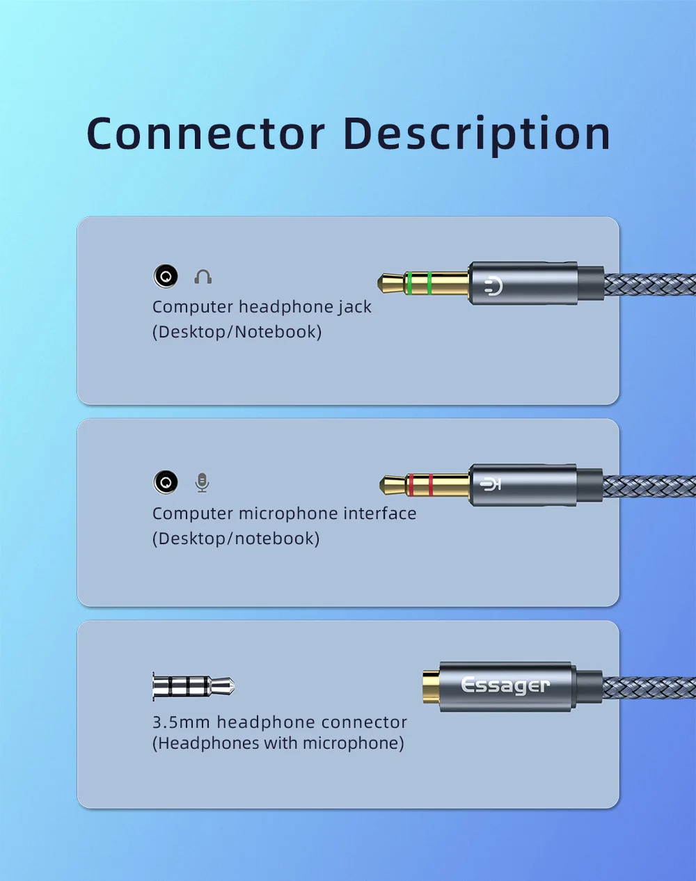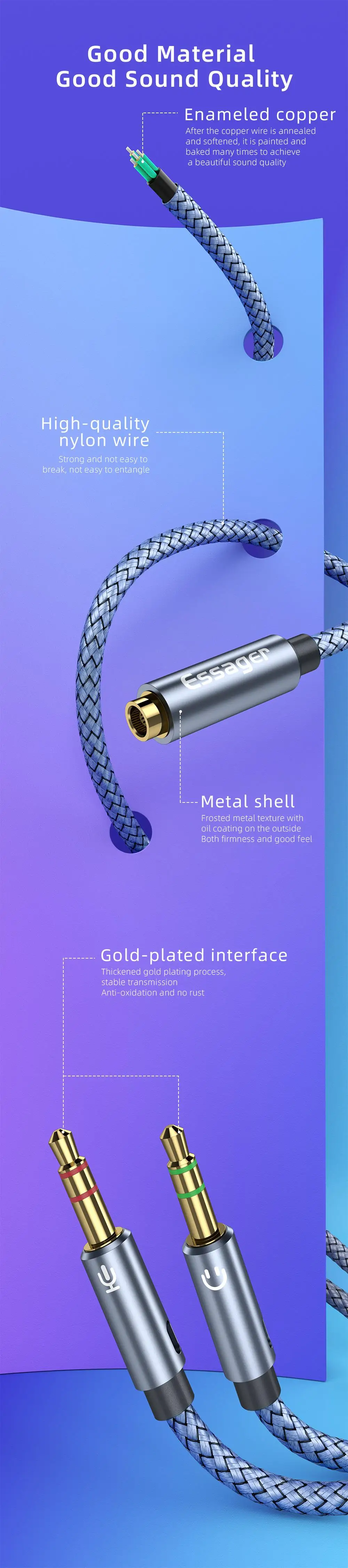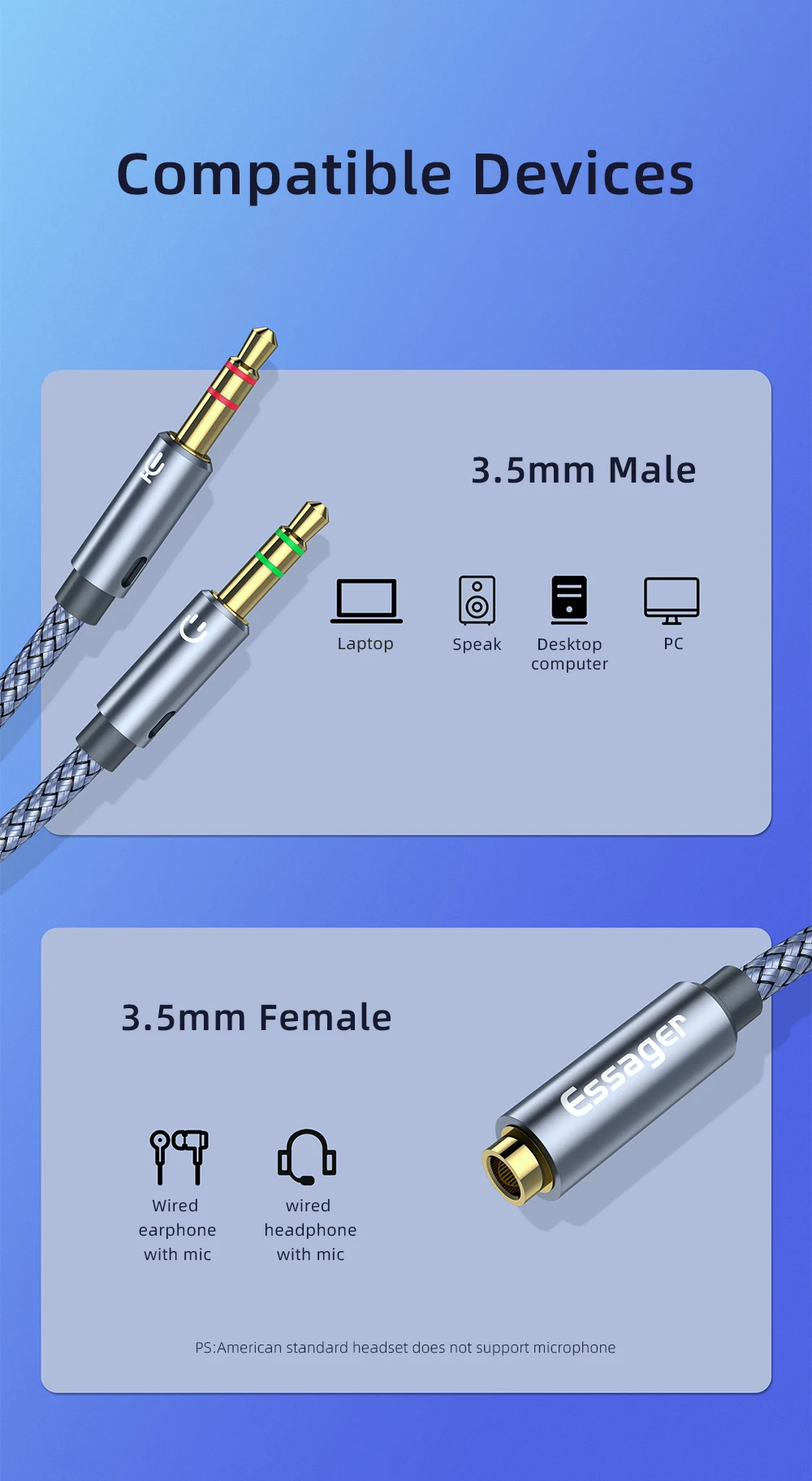Essager-divisor de Audio para auriculares, Cable auxiliar hembra de 3,5mm a conector macho de 2 y 3,5mm para altavoz de ordenador, micrófono, divisor Y a adaptador de PC