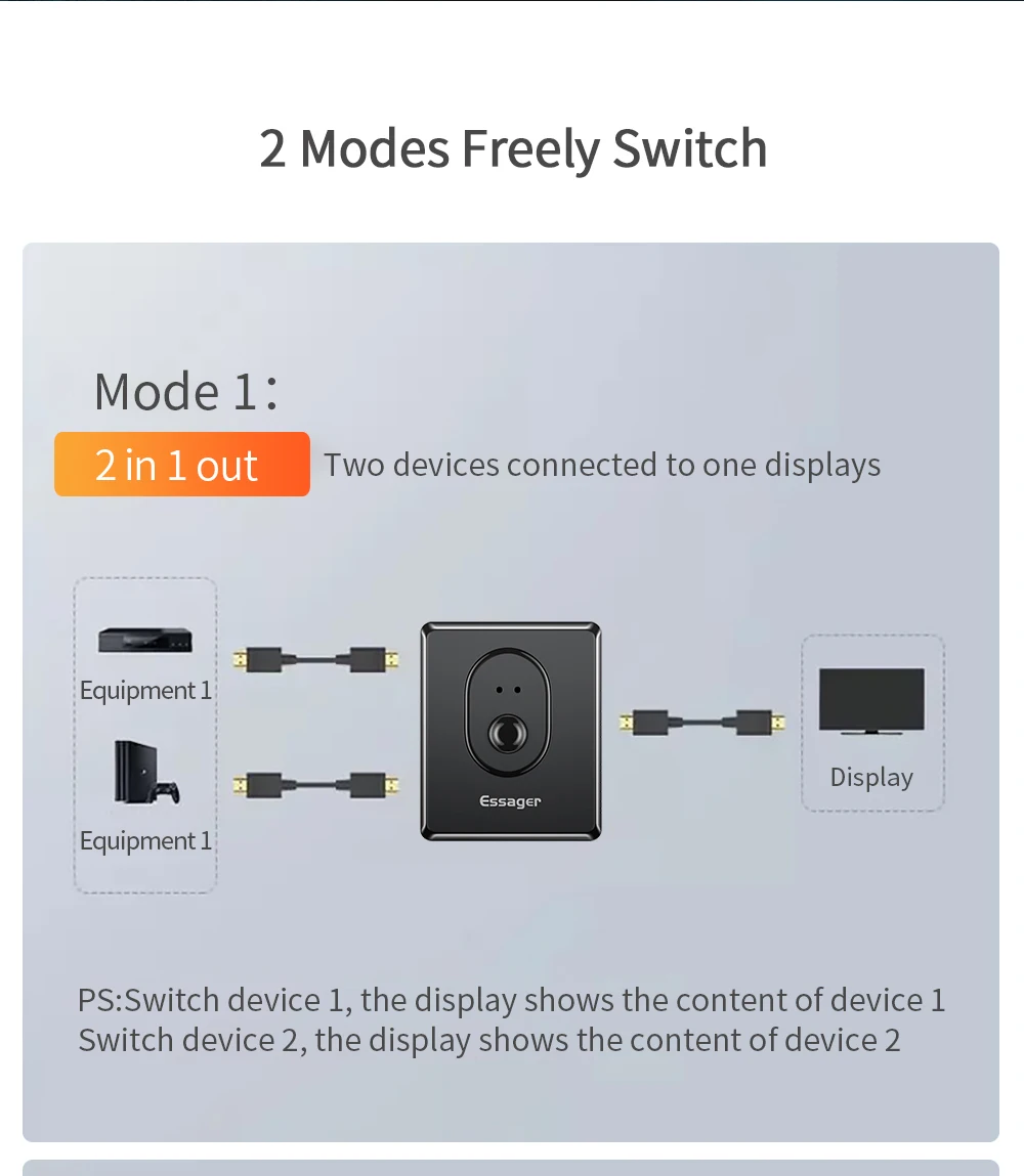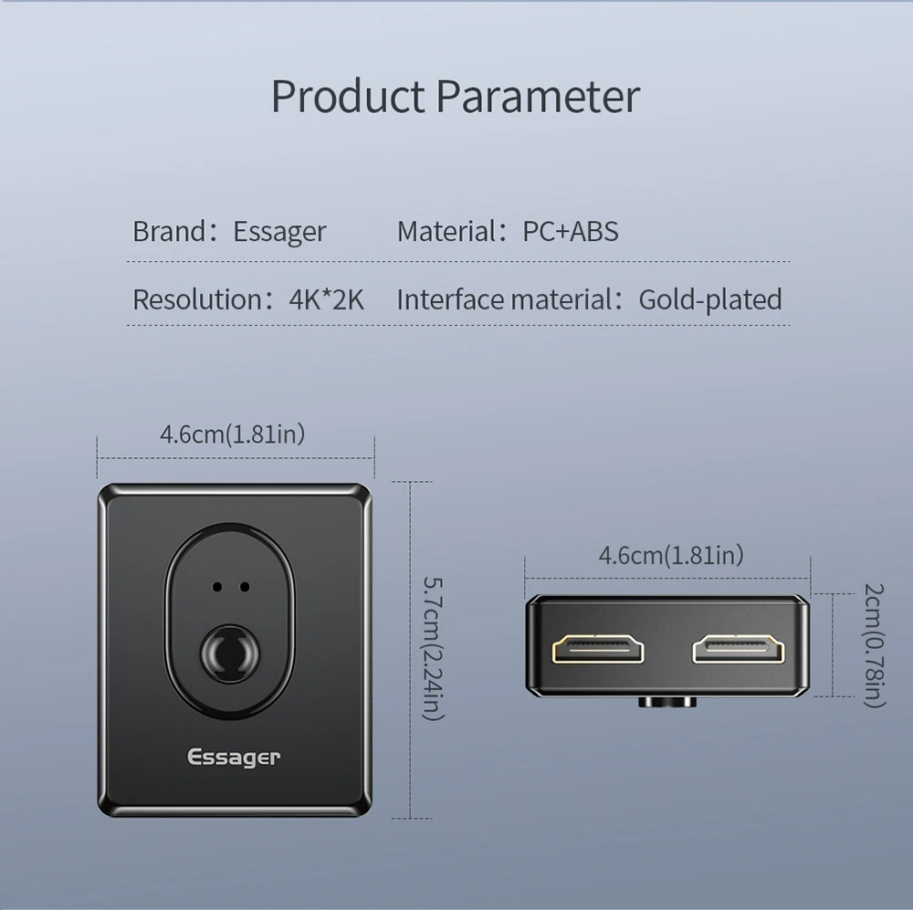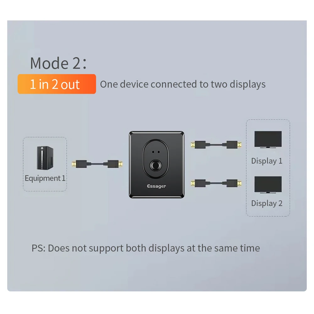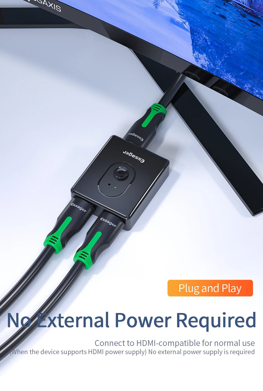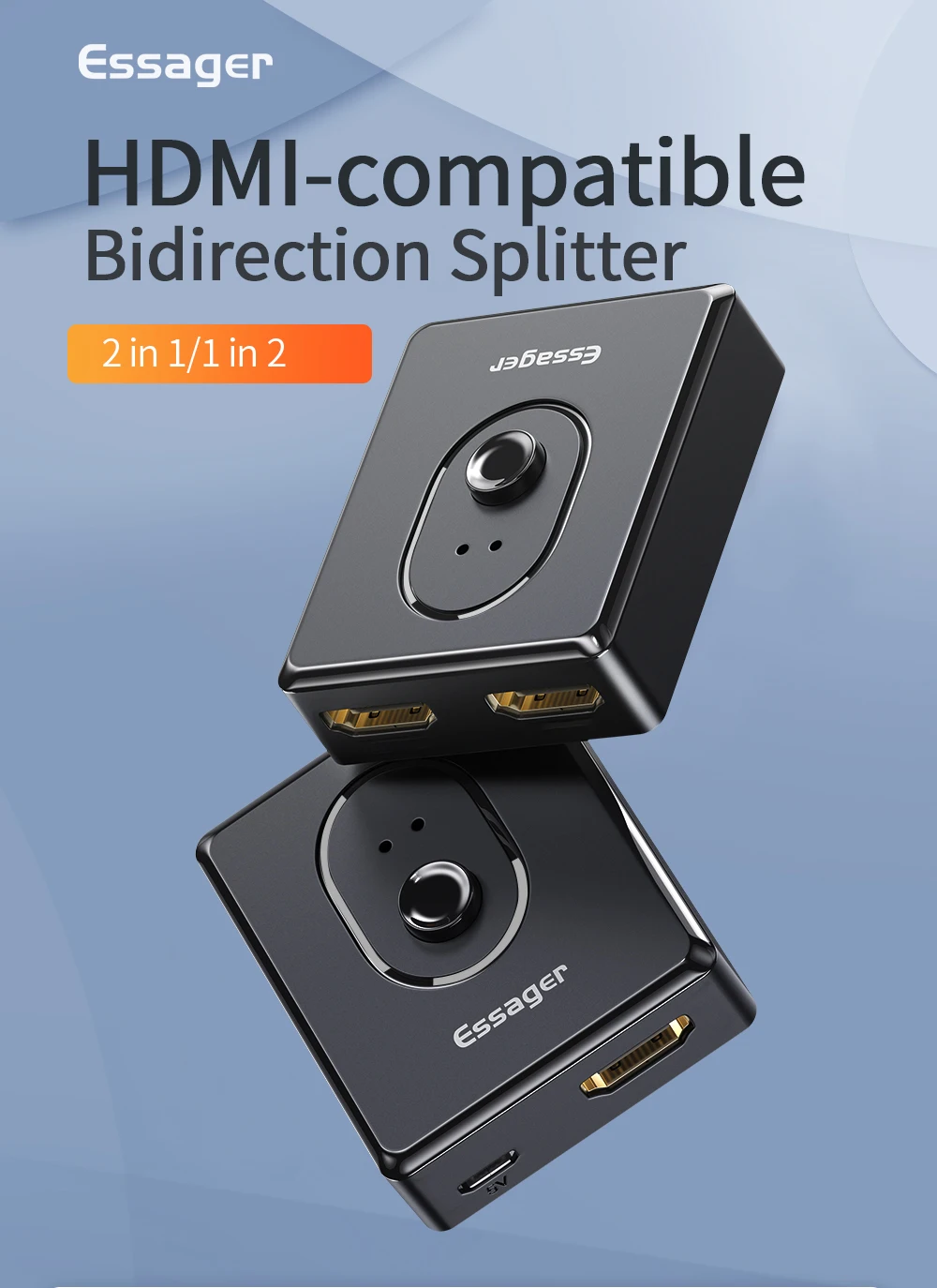 Comprar Essager-divisor Compatible con HD, 4K HD bidireccional 2,0, 1x2, 2x1, adaptador 2 en 1, salida, conmutador Compatible con HD para PS4, Xbox TV BOX