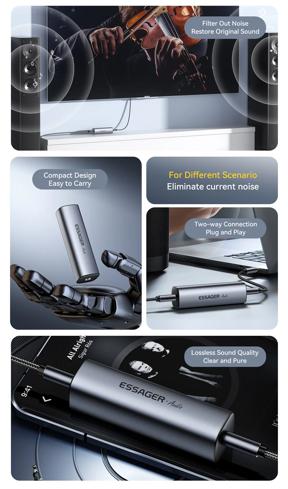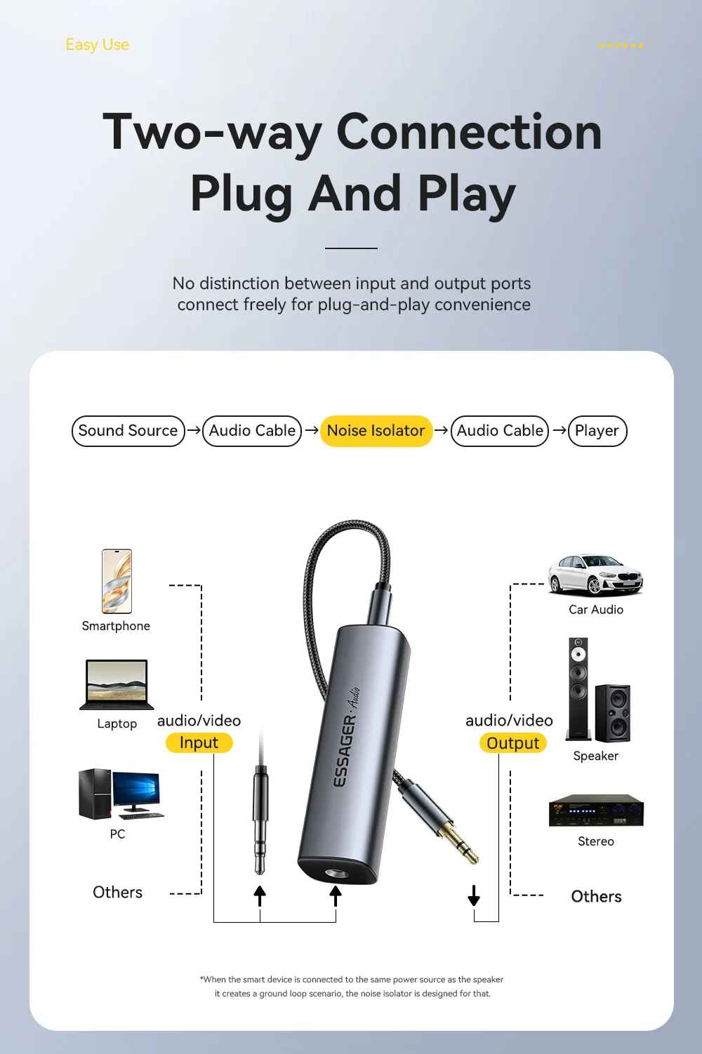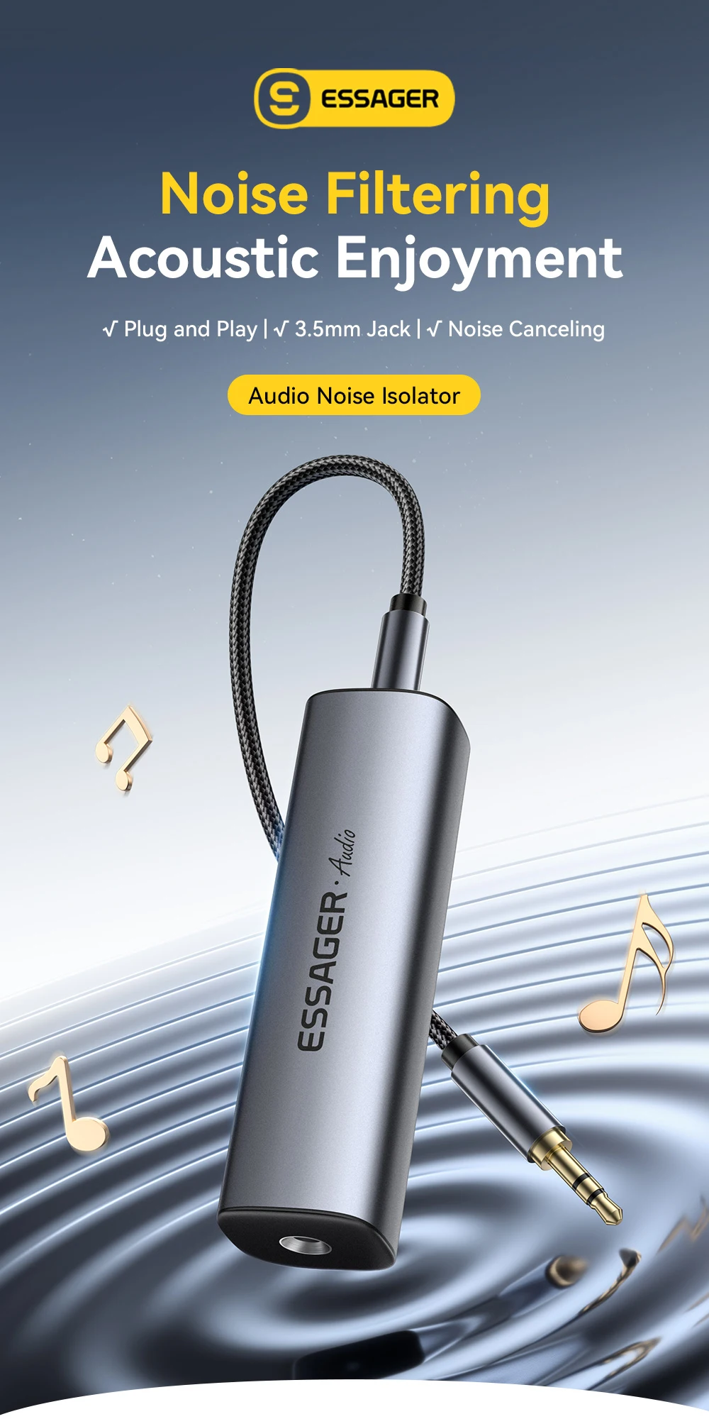 Essager-filtro de ruido de Audio auxiliar de 3,5mm, línea de altavoz, solador de ruido de bucle de tierra, elimina el sistema de Audio del coche, estéreo doméstico