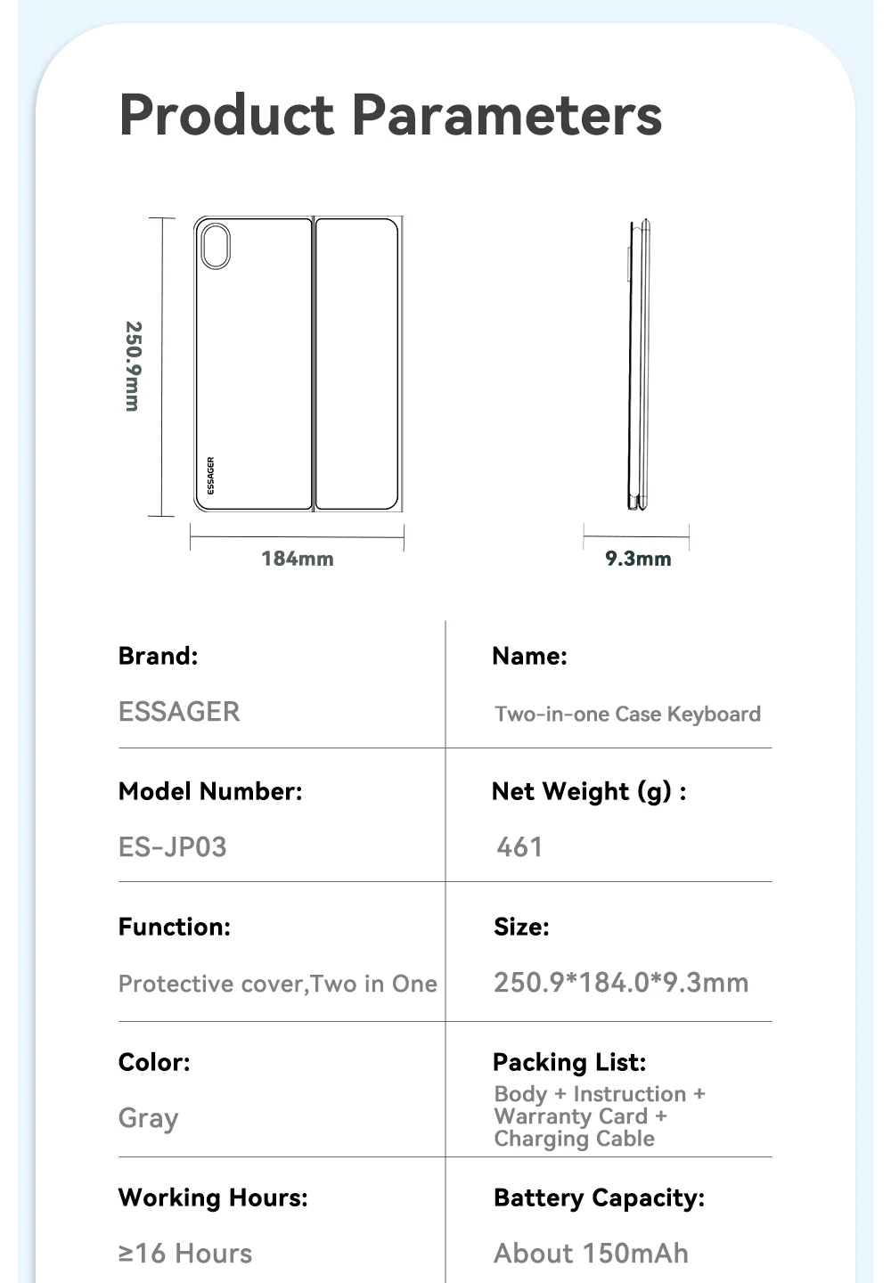 Comprar Essager-funda magnética plegable para tableta, funda con teclado inalámbrico Bluetooth 10,9, 2022 pulgadas, para iPad de décima generación