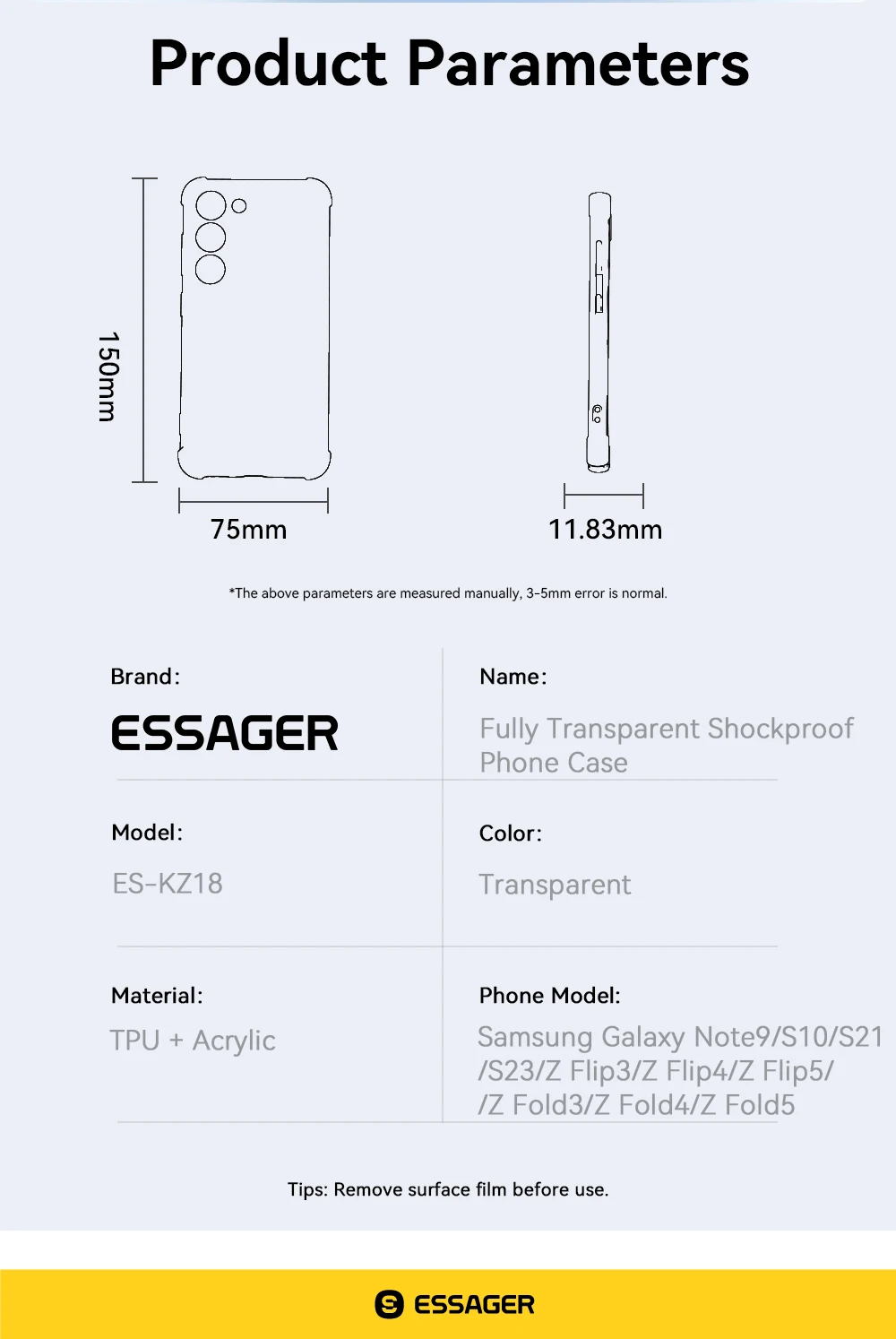 Comprar Essager-funda de teléfono transparente a prueba de caídas, carcasa de silicona suave para Samsung S10, S21, S23, NOTE 9, Galaxy Z, Flip5, Flip4, Fold5