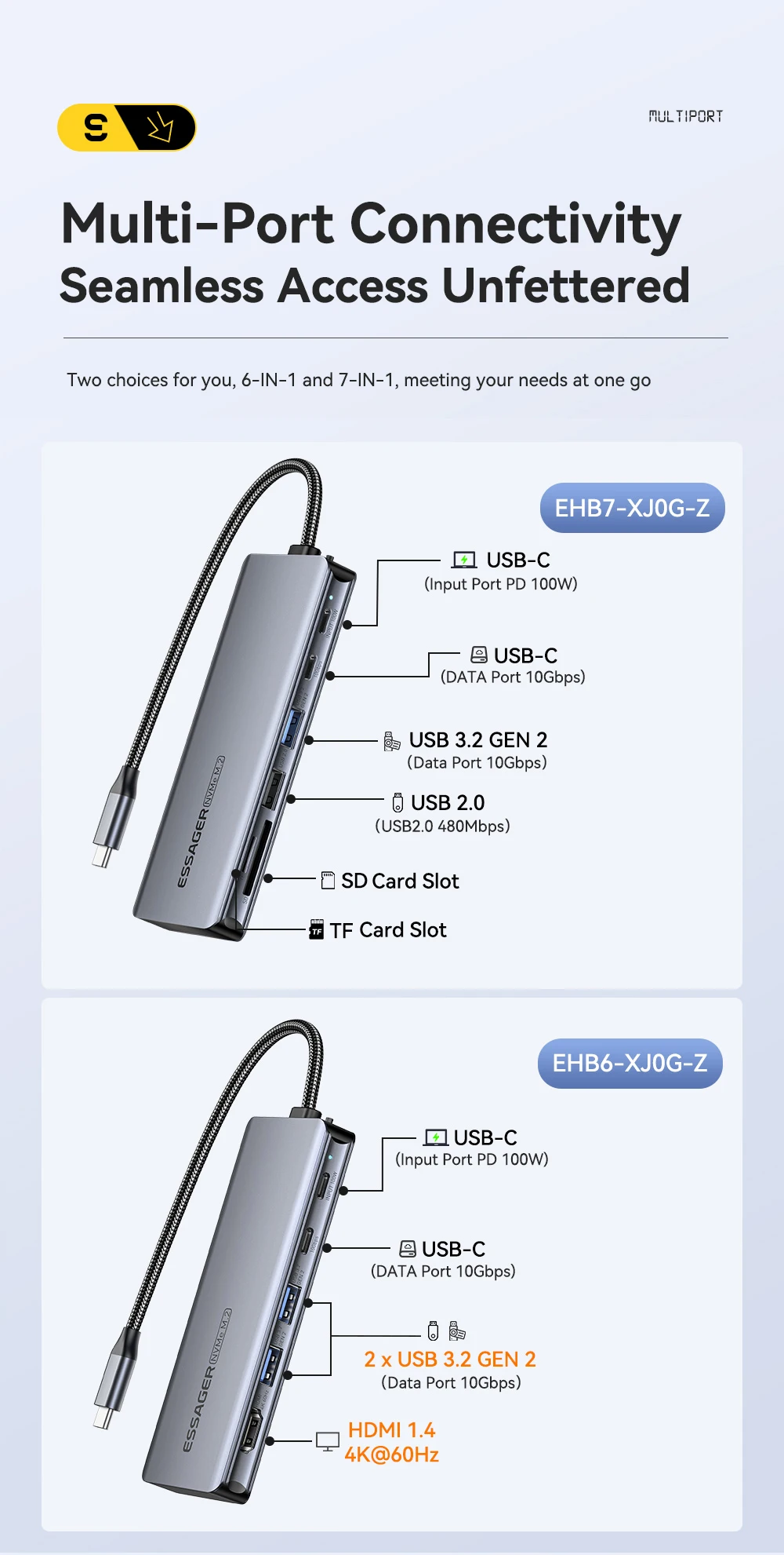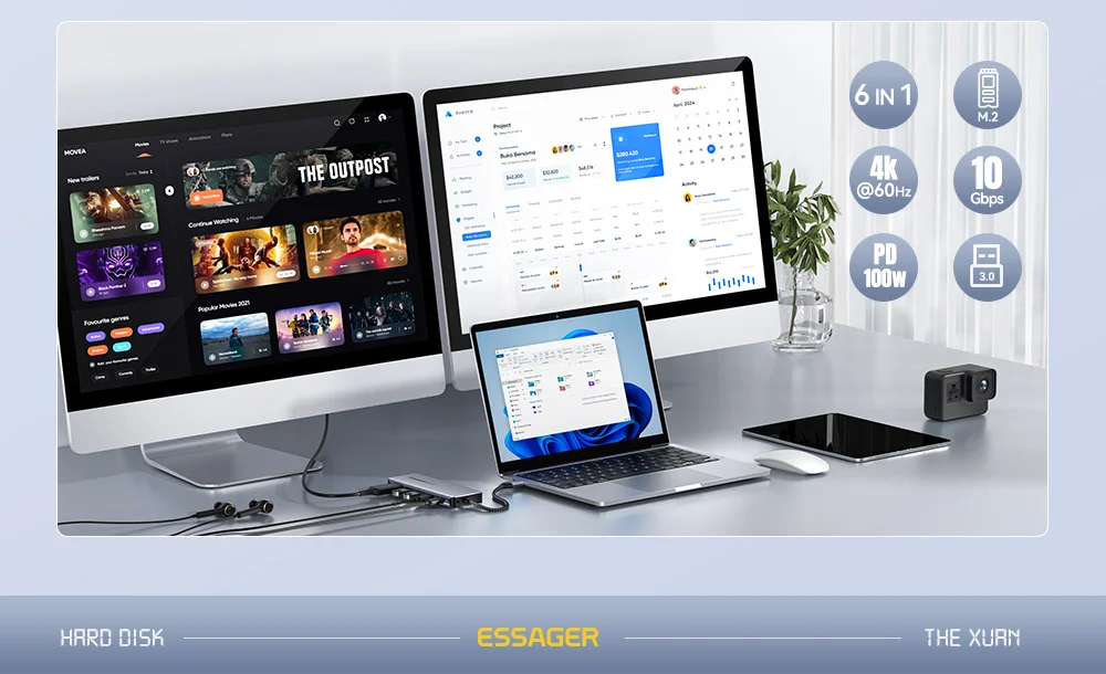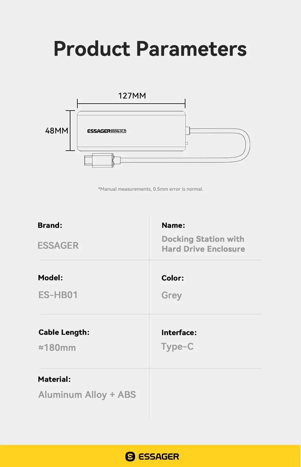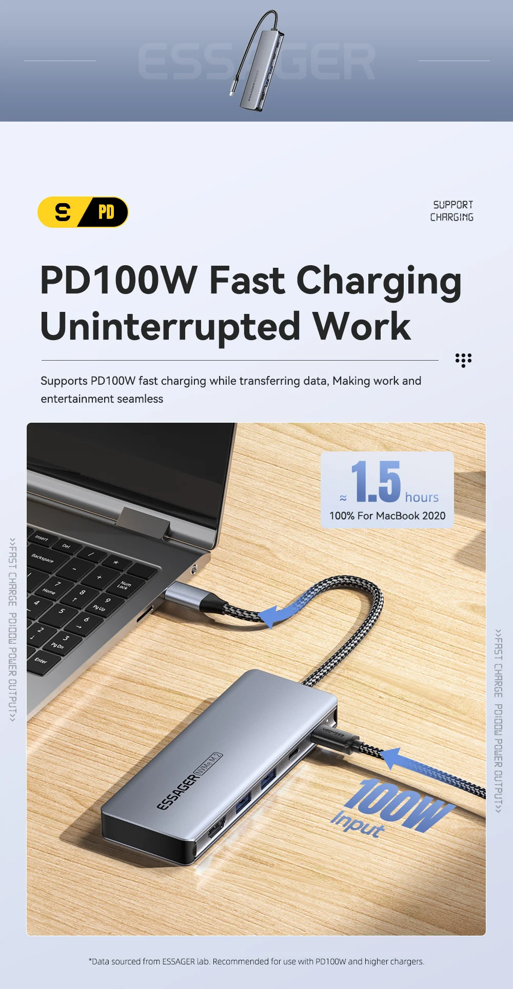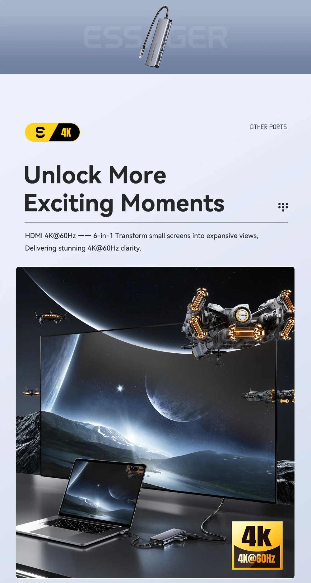 Comprar Essager-Hub USB tipo C con carcasa de disco duro M.2 SSD, adaptador 6/7 en 1 PD100W USB3.2 10gbps HDMI USB tipo C para Macbook Pro Air PC