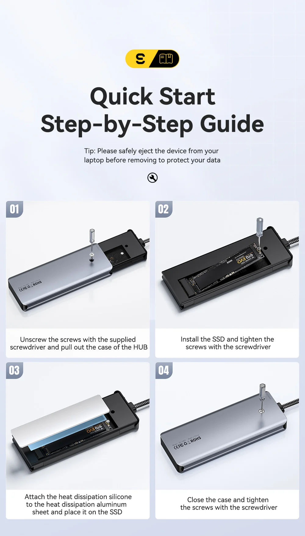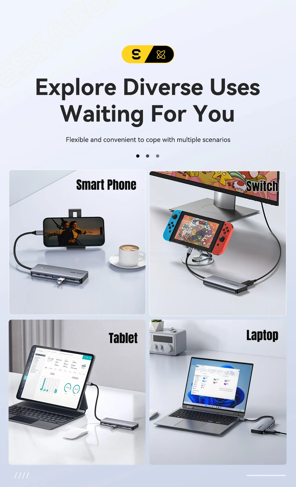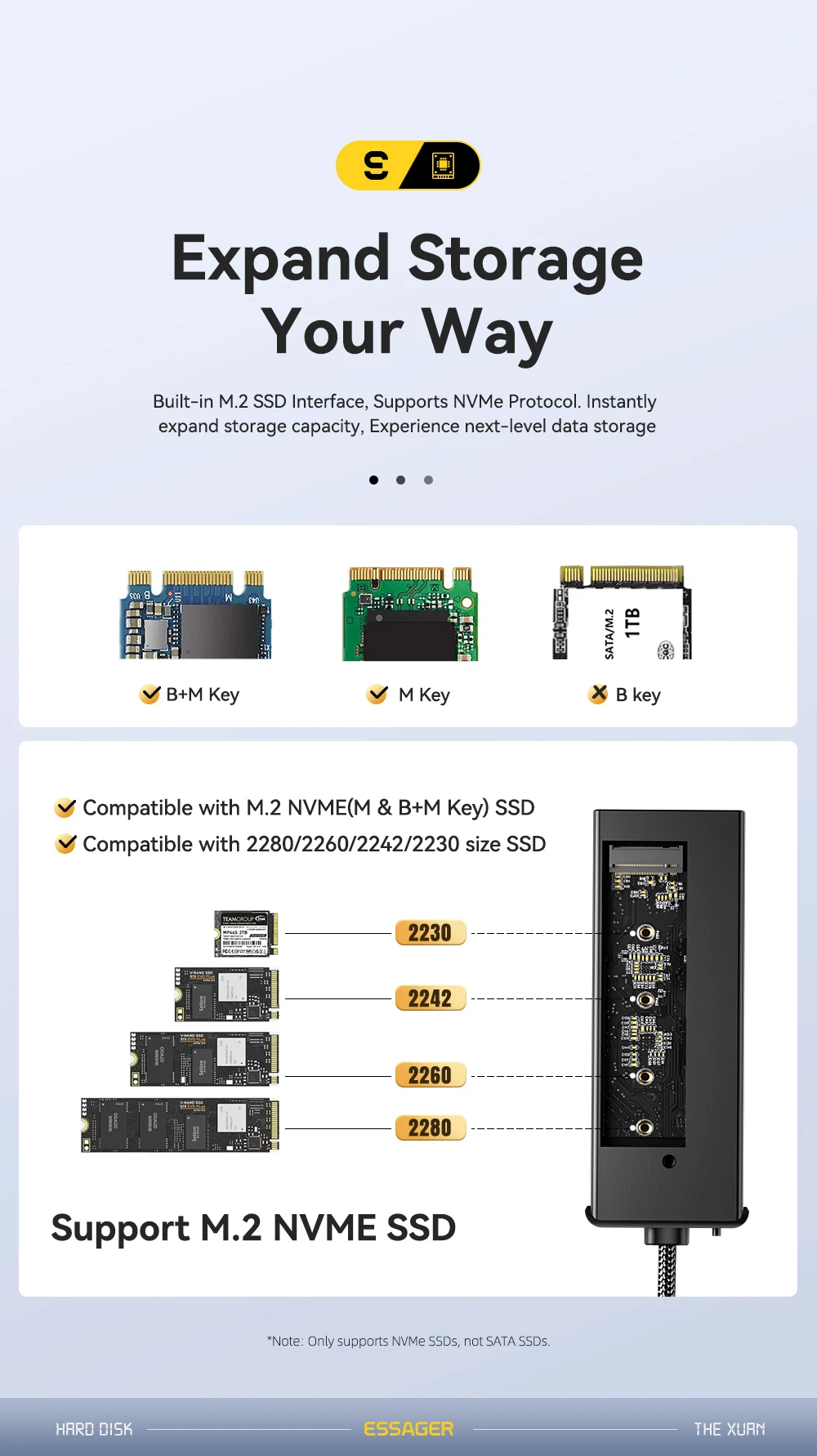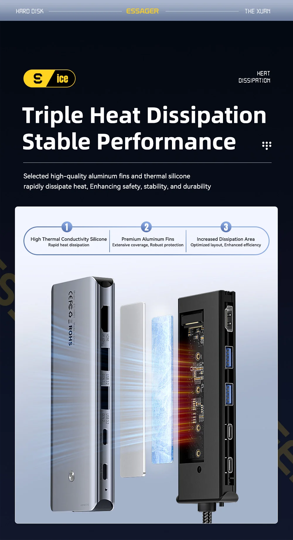 Comprar Essager-Hub USB tipo C con carcasa de disco duro M.2 SSD, adaptador 6/7 en 1 PD100W USB3.2 10gbps HDMI USB tipo C para Macbook Pro Air PC