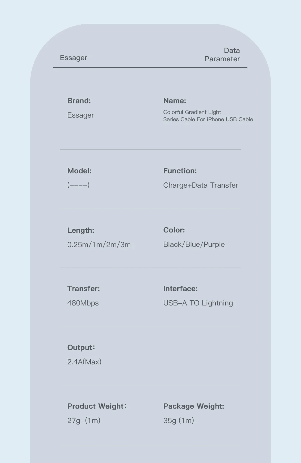 Comprar Essager LED USB Cable For iPhone 13 12 11 Pro Max XRS 8 7 Plus 6s Fast Charger Wire For iPhone Charger Charging Cord Data Cable