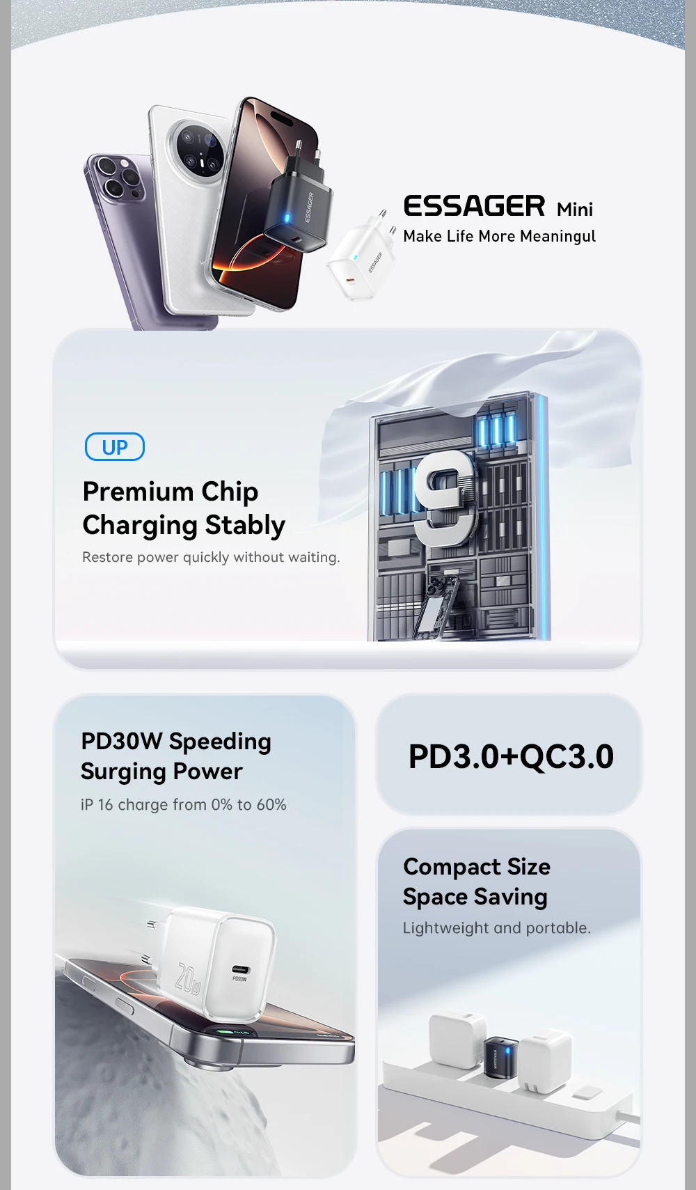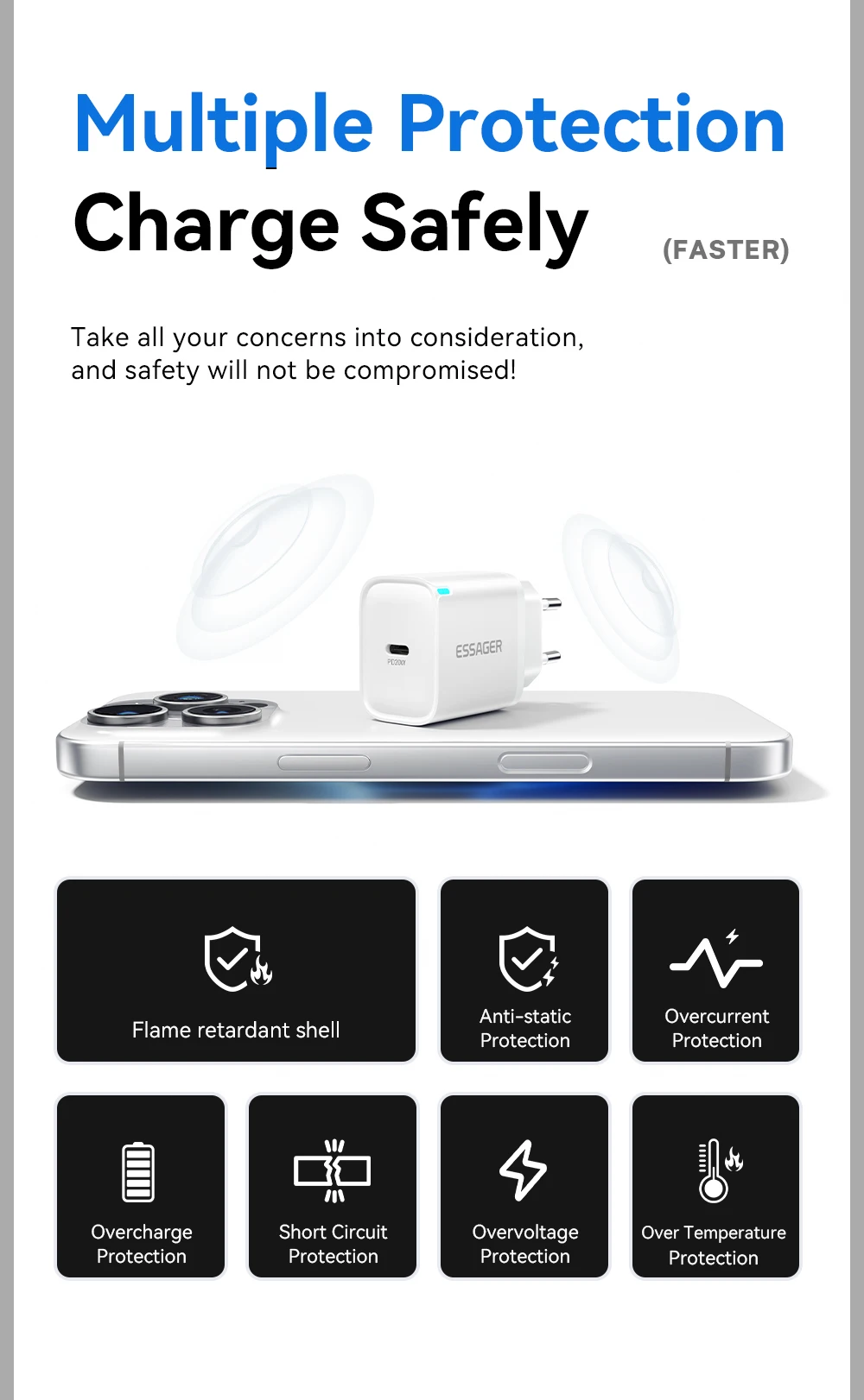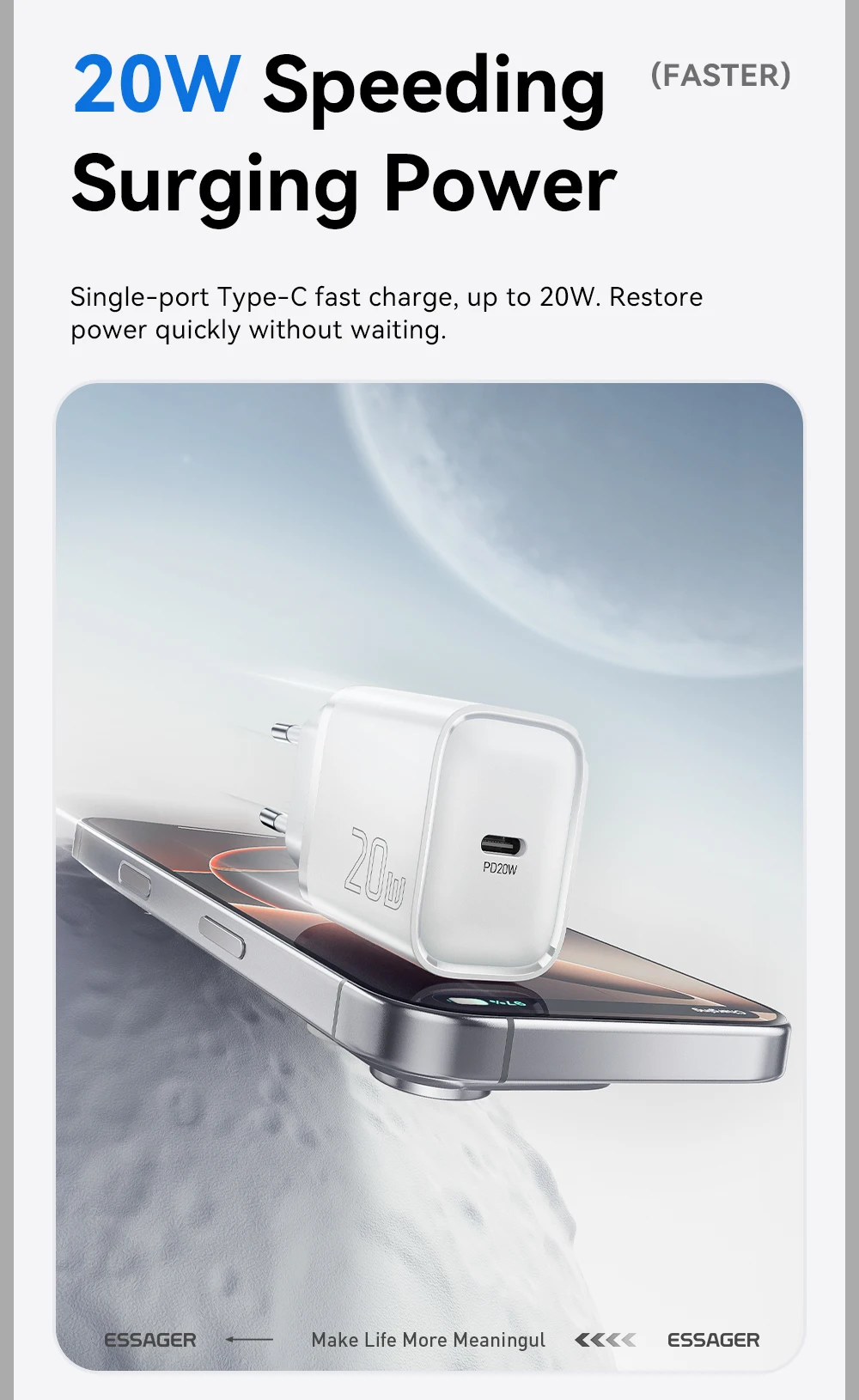 Comprar Essager Mini 20W USB tipo C cargador PD carga rápida para iPhone 16 15 14 Pro carga rápida 3,0 cargador de teléfono móvil para Samsung