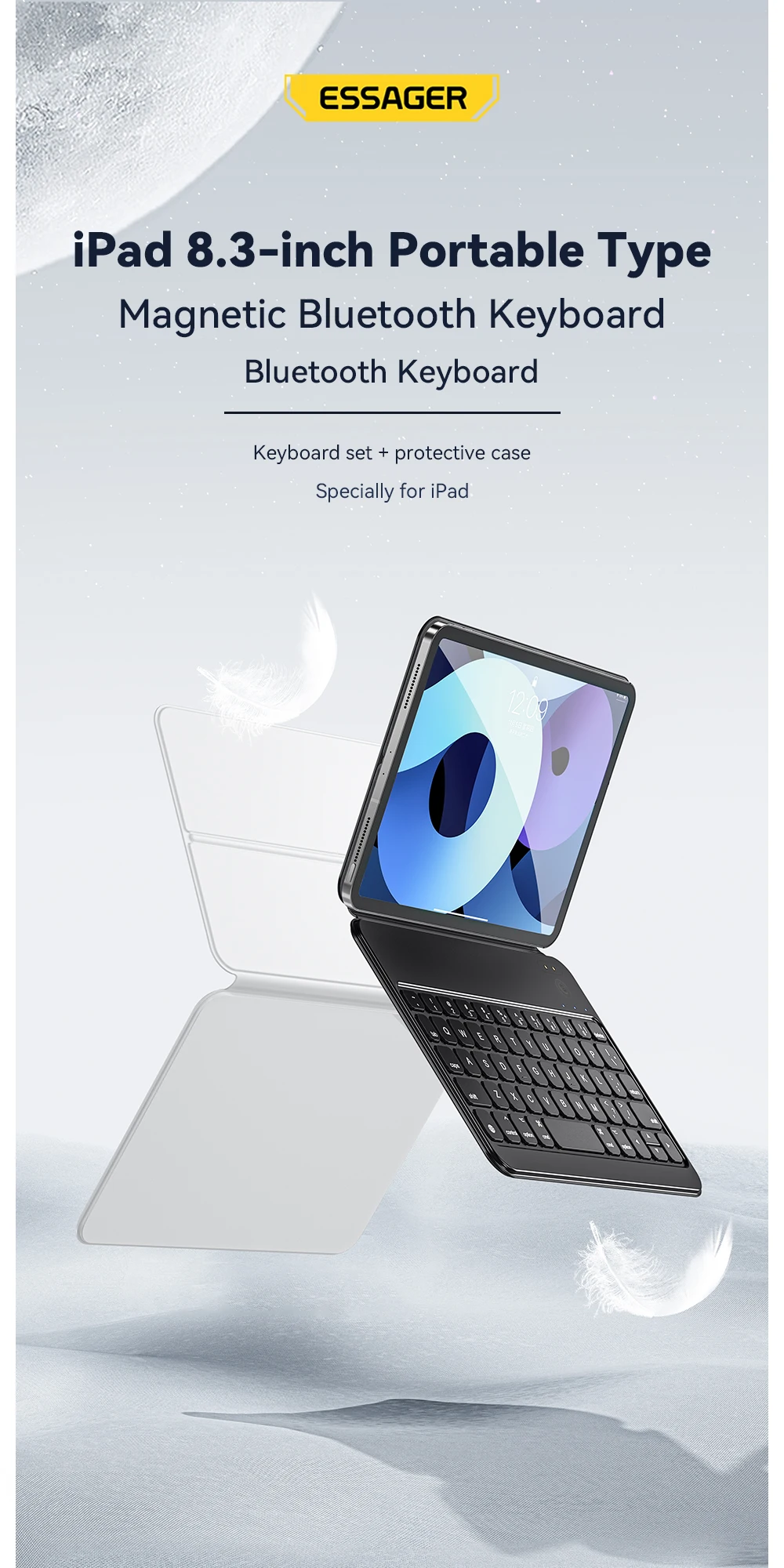 Mini teclado Essager Bluetooth de 8,3 pulgadas, Funda de cuero portátil, teclados inalámbricos, tableta de carga para iPad Mini 6th Generation