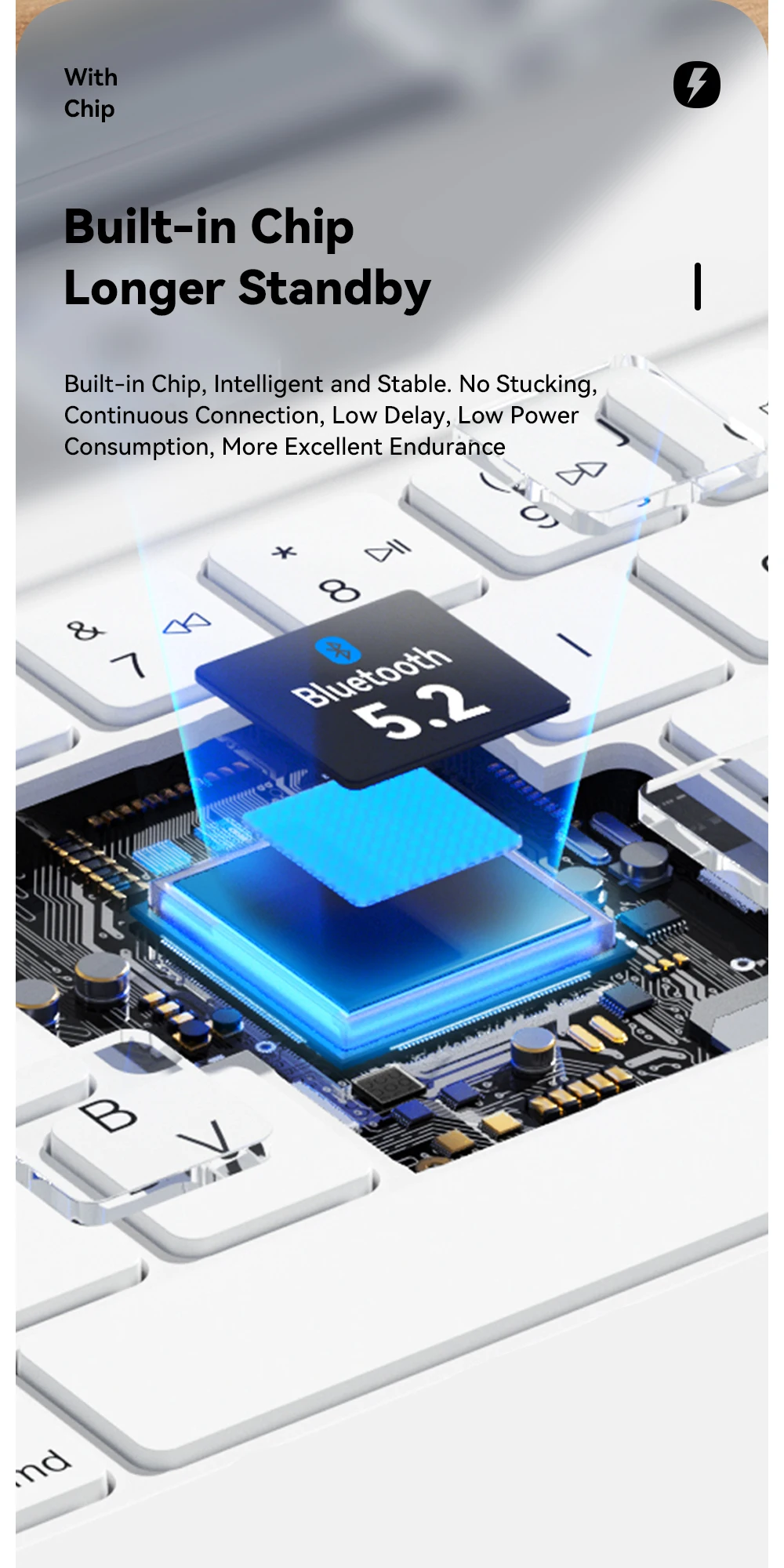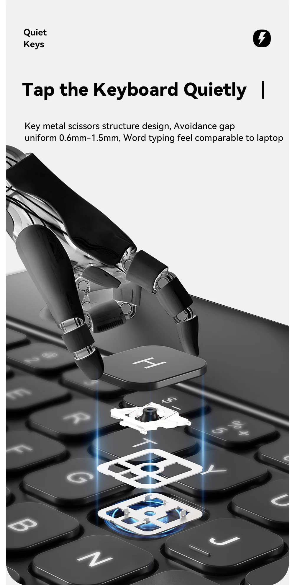 Teclado de tijera, escritura rápida, buena sensación.