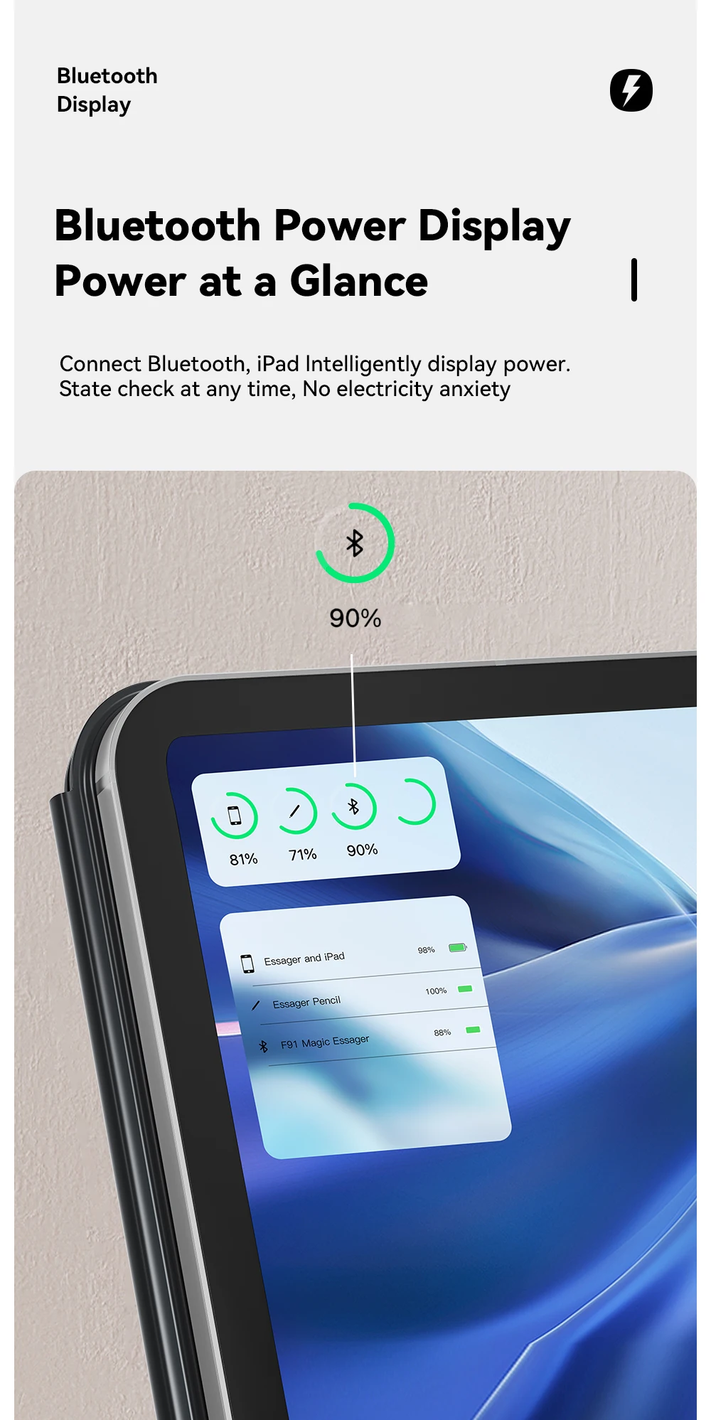 1. Después de emparejar correctamente, la próxima vez que use el teclado, el iPad se conectará automáticamente.