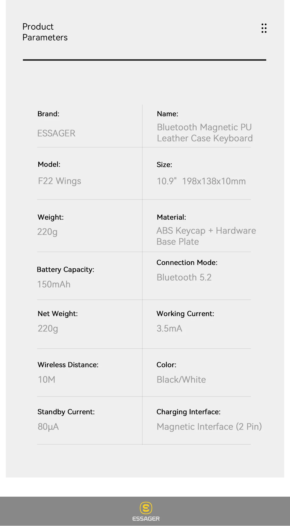 10. Capacidad de la batería: ≈ 150mAh
