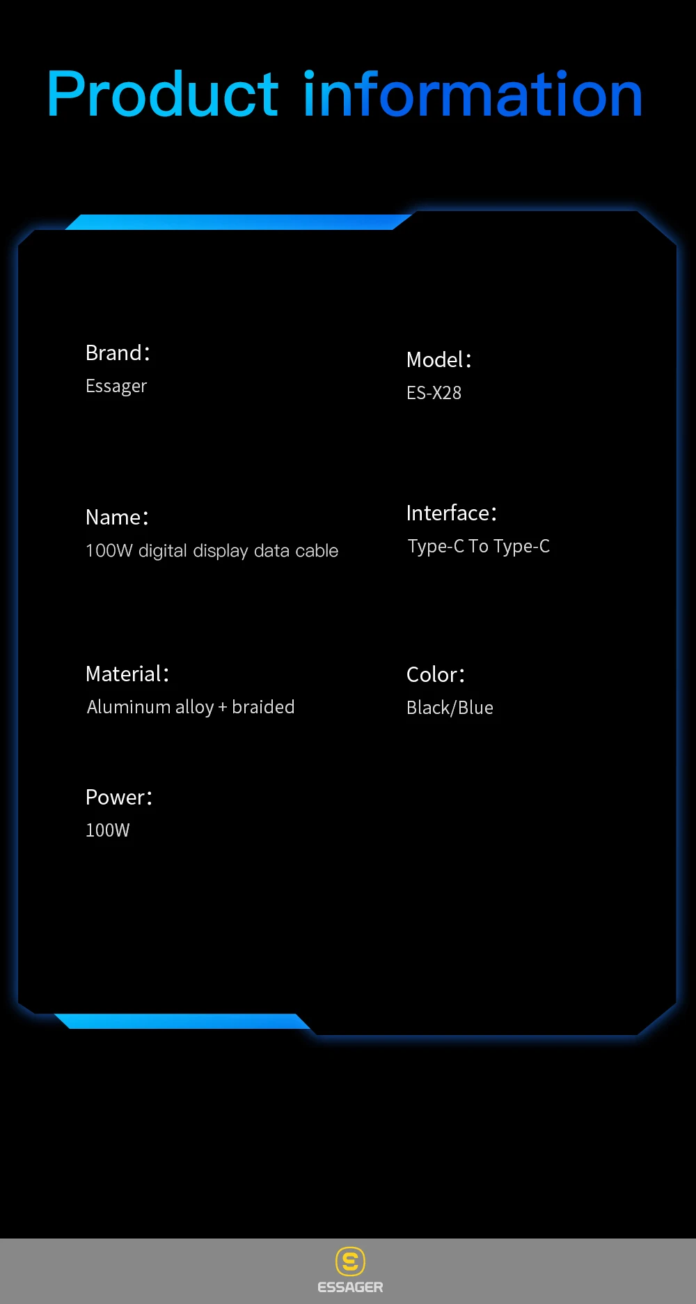 Admite transmisión de potencia de 100 W, chip E-marker incorporado, corriente grande de 5 A, puede cargar rápidamente equipos de protocolo PD