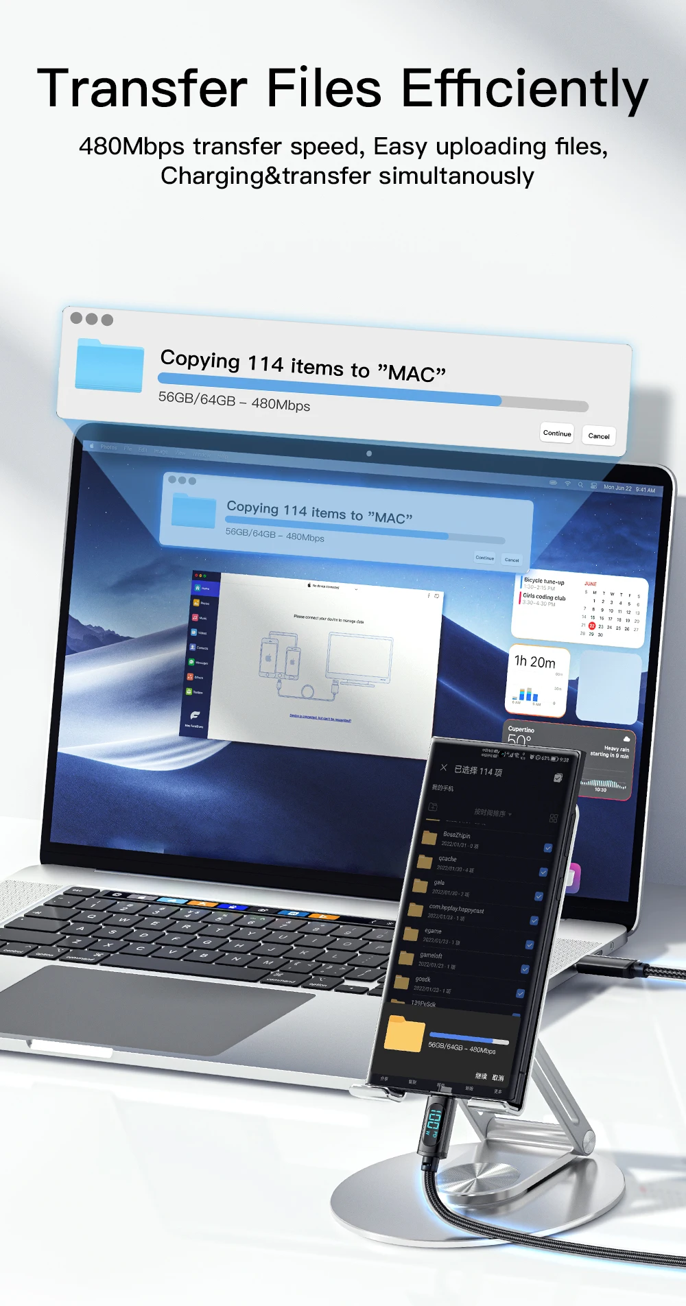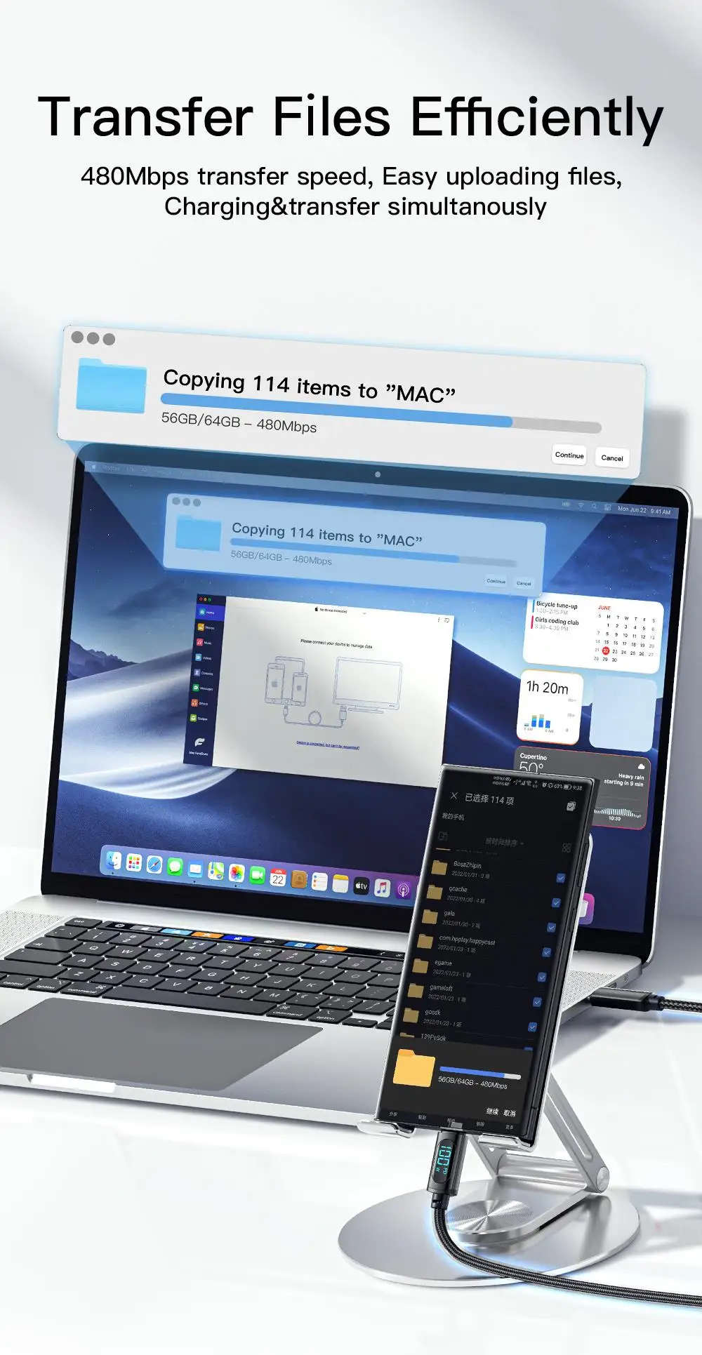 La transmisión de datos es de hasta 480 Mbps, puede transferir 1 GB de archivos fácilmente en 30 segundos.