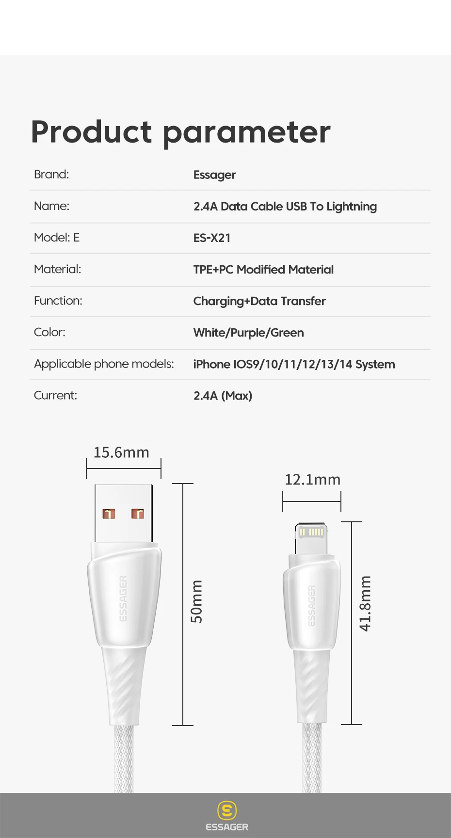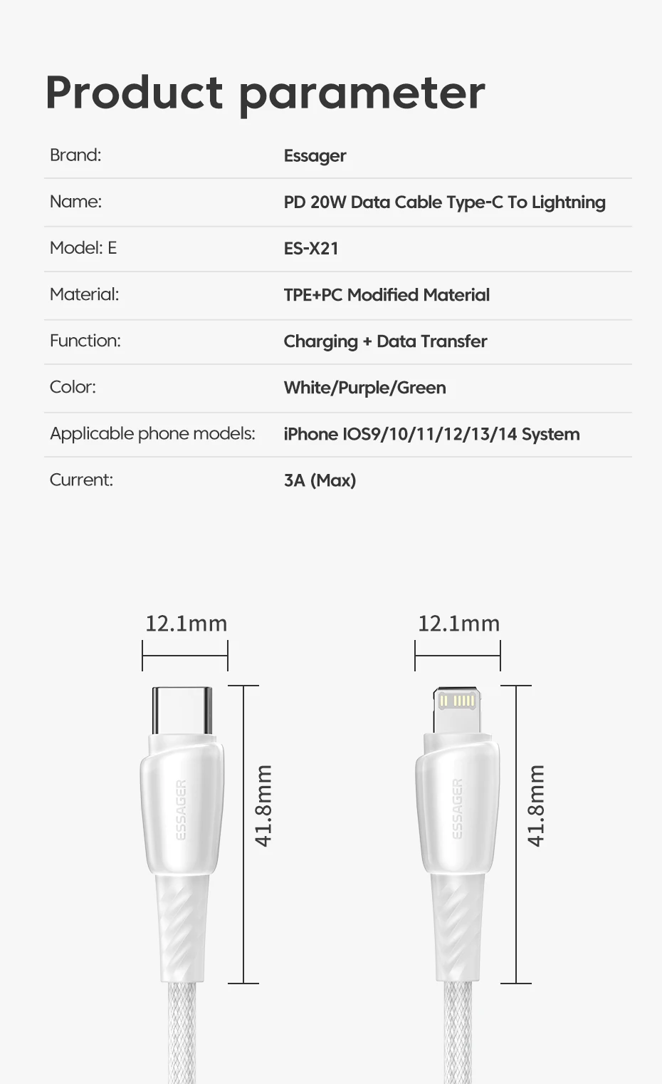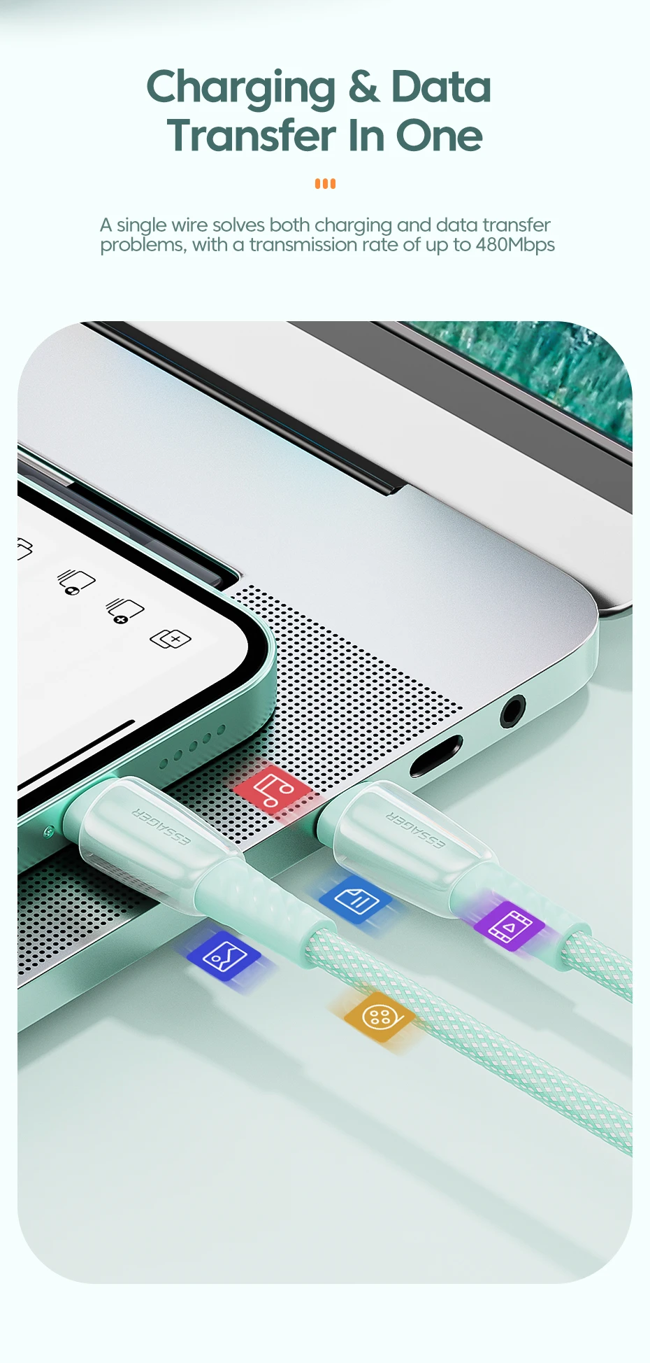 Comprar ESSAGER PD 20W Cable USB C para iPhone 14 13 12 Pro Max 2.4A Cable cargador de carga rápida para iPhone 6 7 8Plus iPad Cable de datos