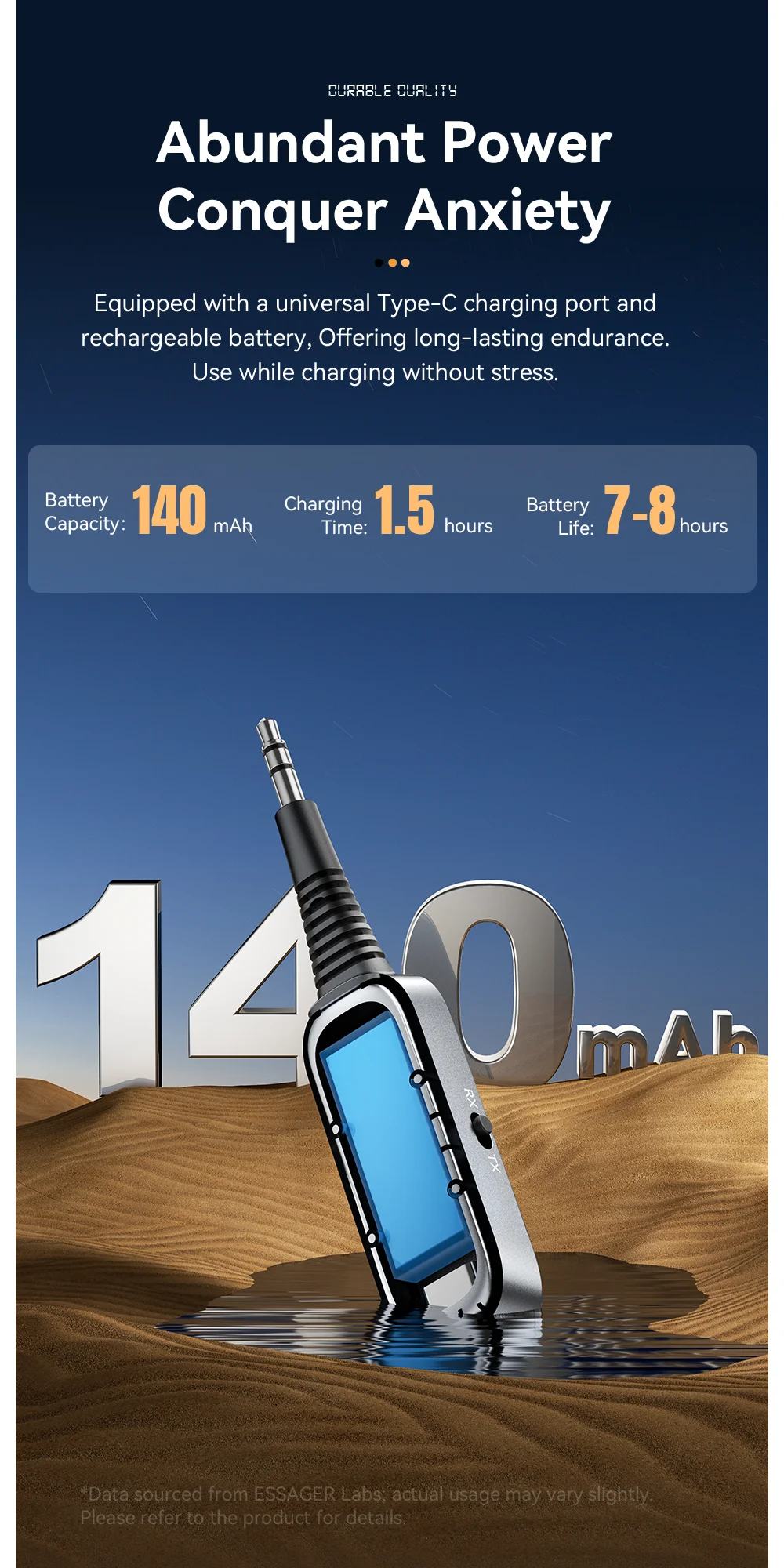 Essager-receptor de Audio Bluetooth 2 en 1, transmisor inalámbrico Bluetooth 5,1, adaptador de Audio auxiliar de 3,5mm, estéreo para auriculares, TV y coche