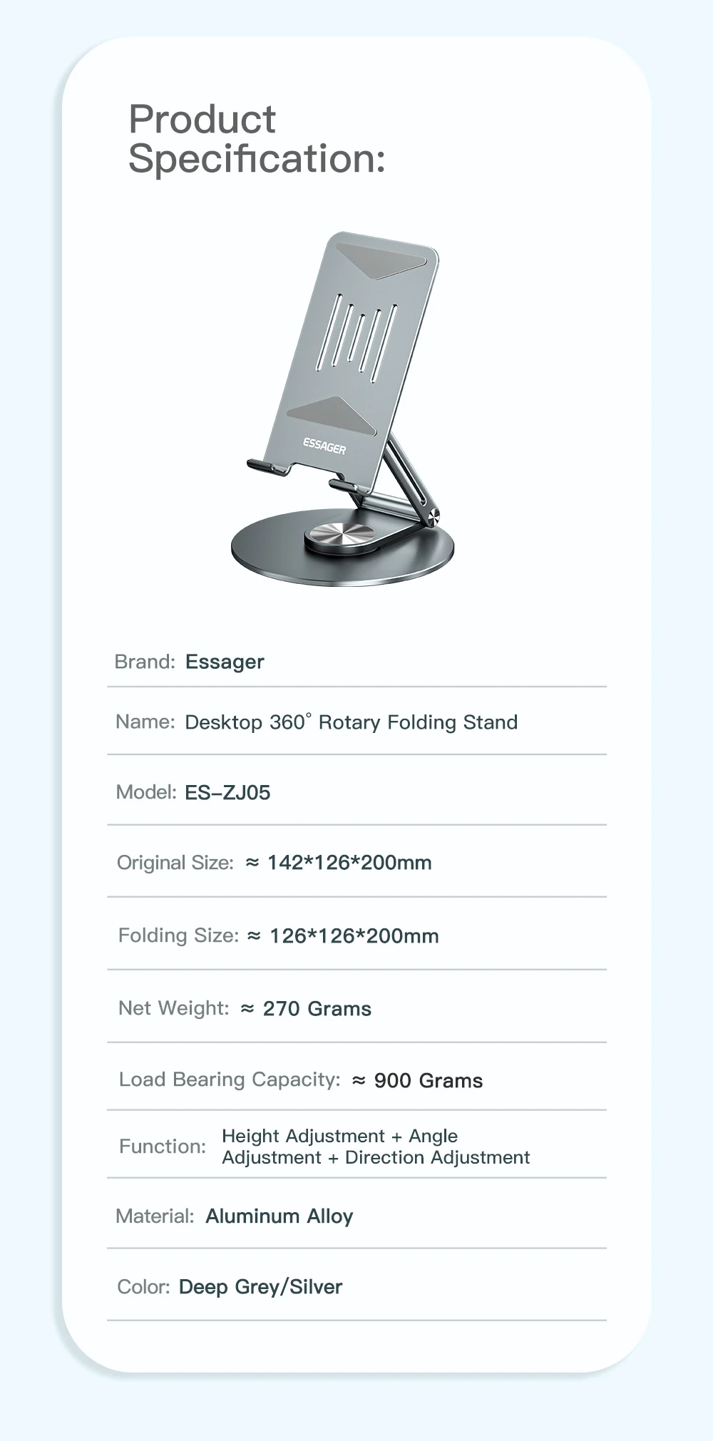 Nombre: Soporte de teléfono giratorio Essager 360 °
