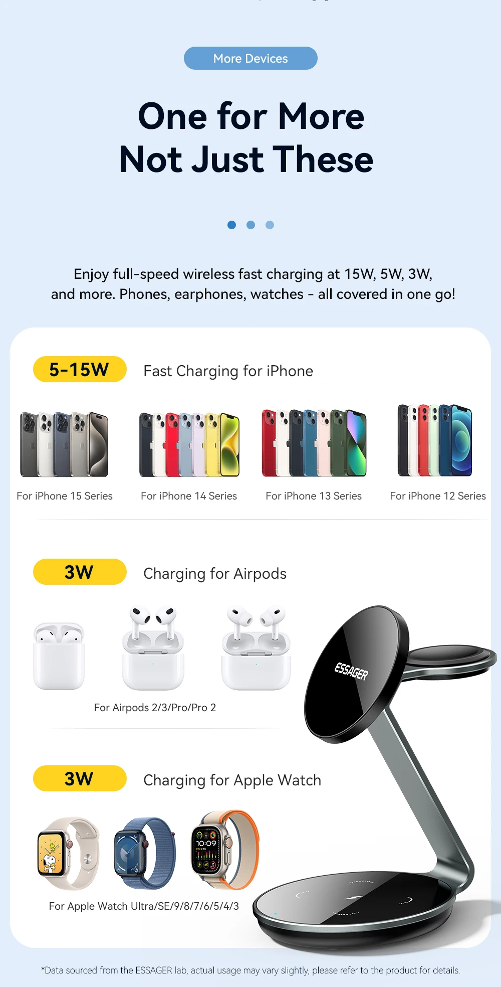 Essager-soporte magnético para cargador inalámbrico, base de estación de carga rápida 3 en 1 para iPhone 15, 14, 13, 12 Pro Max, Apple Watch, AirPods, 15W
