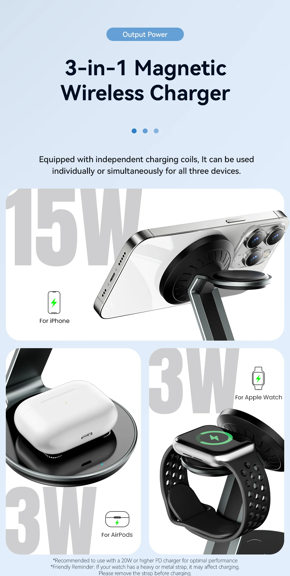 Comprar Essager-soporte magnético para cargador inalámbrico, base de estación de carga rápida 3 en 1 para iPhone 15, 14, 13, 12 Pro Max, Apple Watch, AirPods, 15W