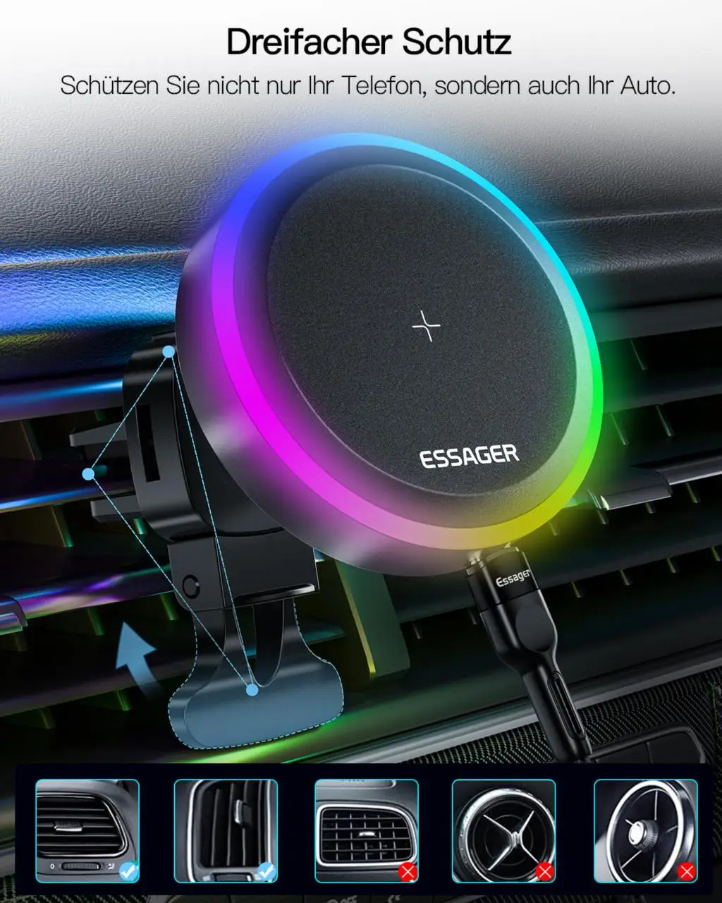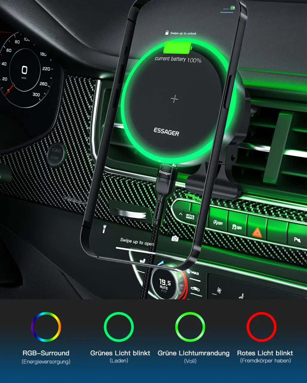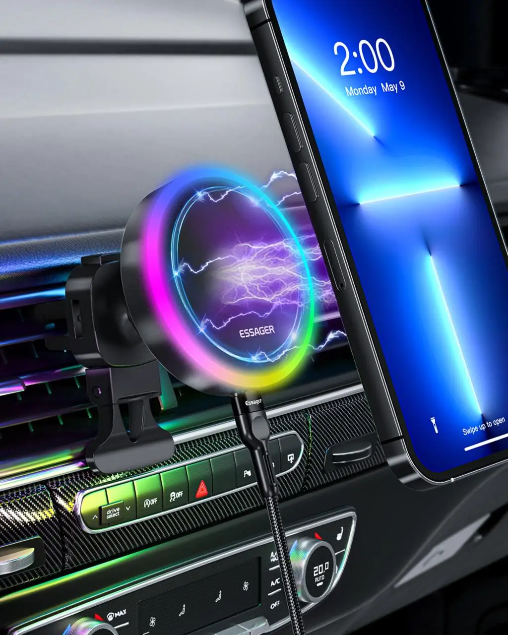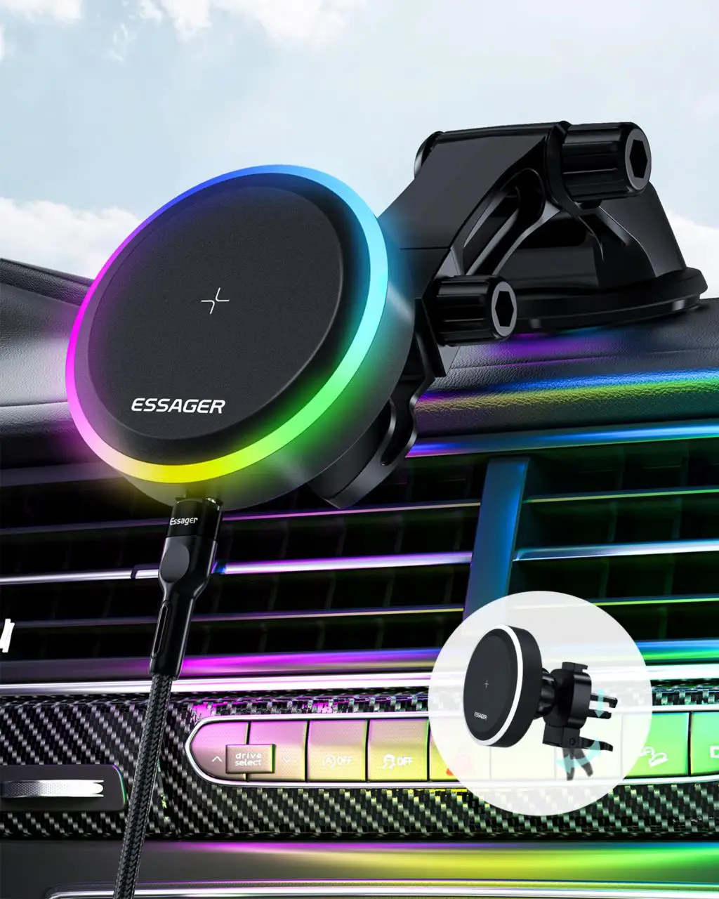 Comprar Essager-Soporte de teléfono magnético RGB para coche, cargador inalámbrico Qi de 15W para iPhone 13, 12 Pro Max, Samsung, Universal