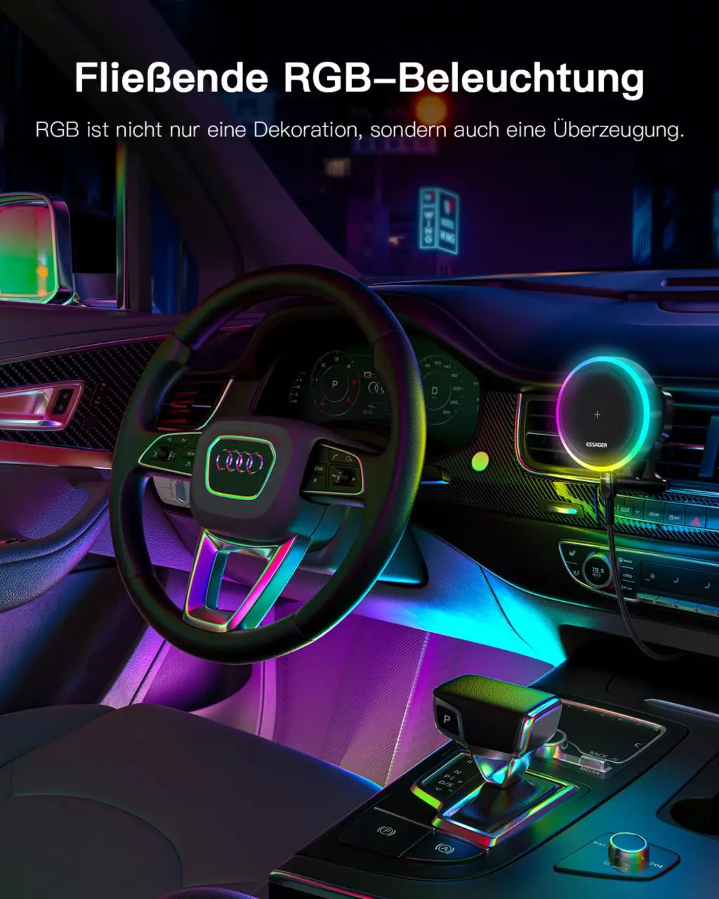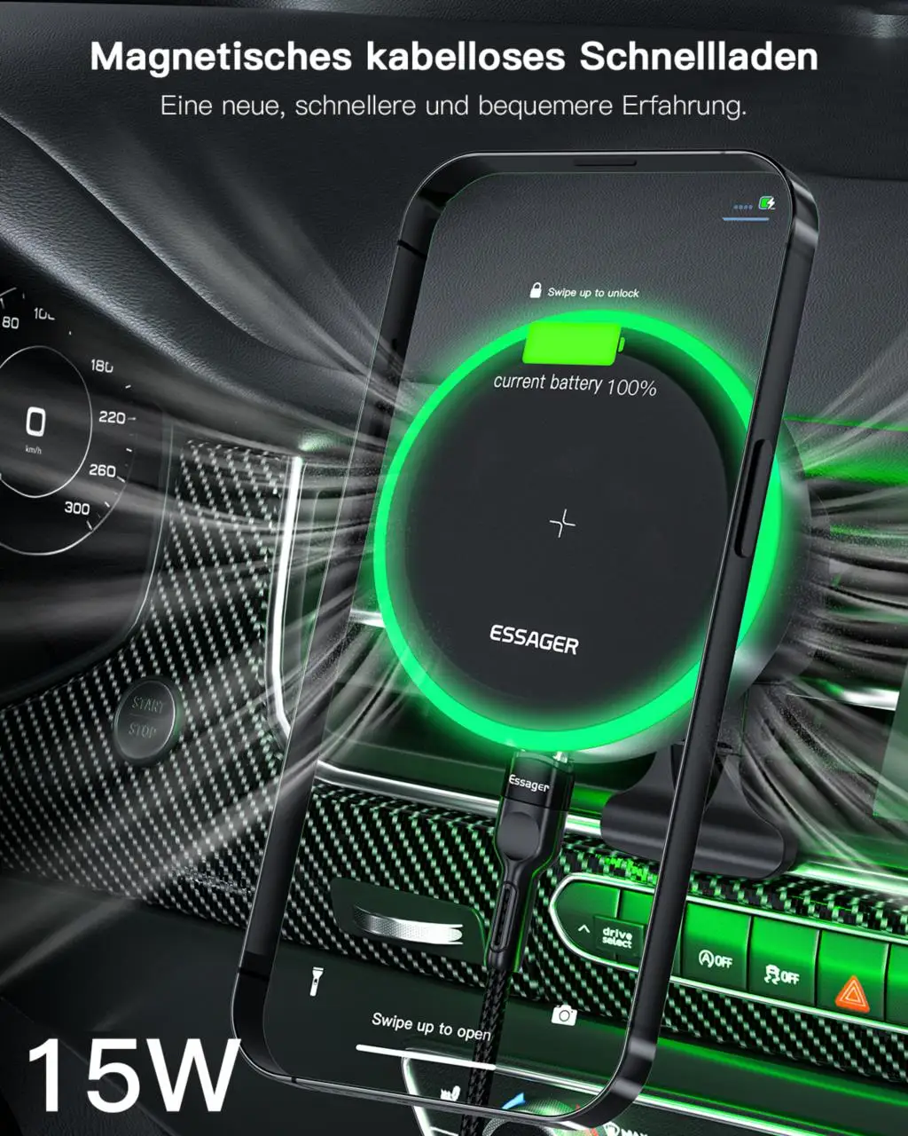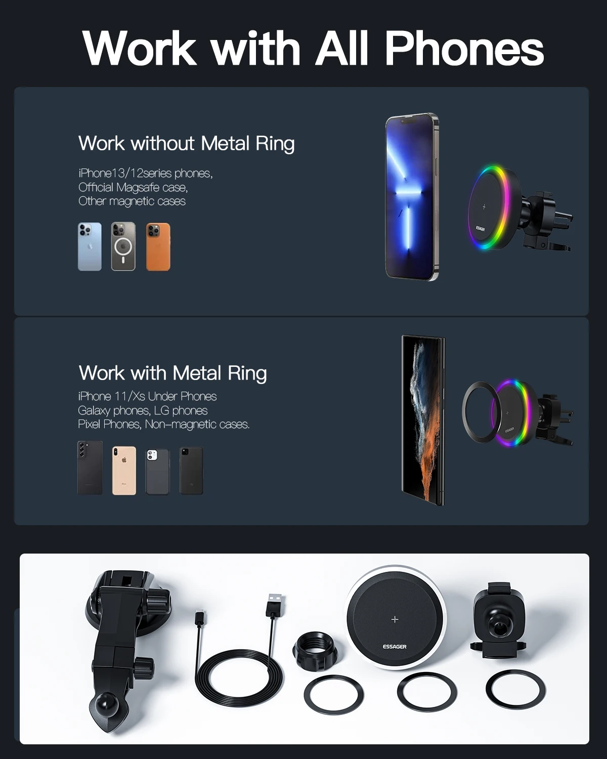 Comprar Essager-Soporte de teléfono magnético RGB para coche, cargador inalámbrico Qi de 15W para iPhone 13, 12 Pro Max, Samsung, Universal