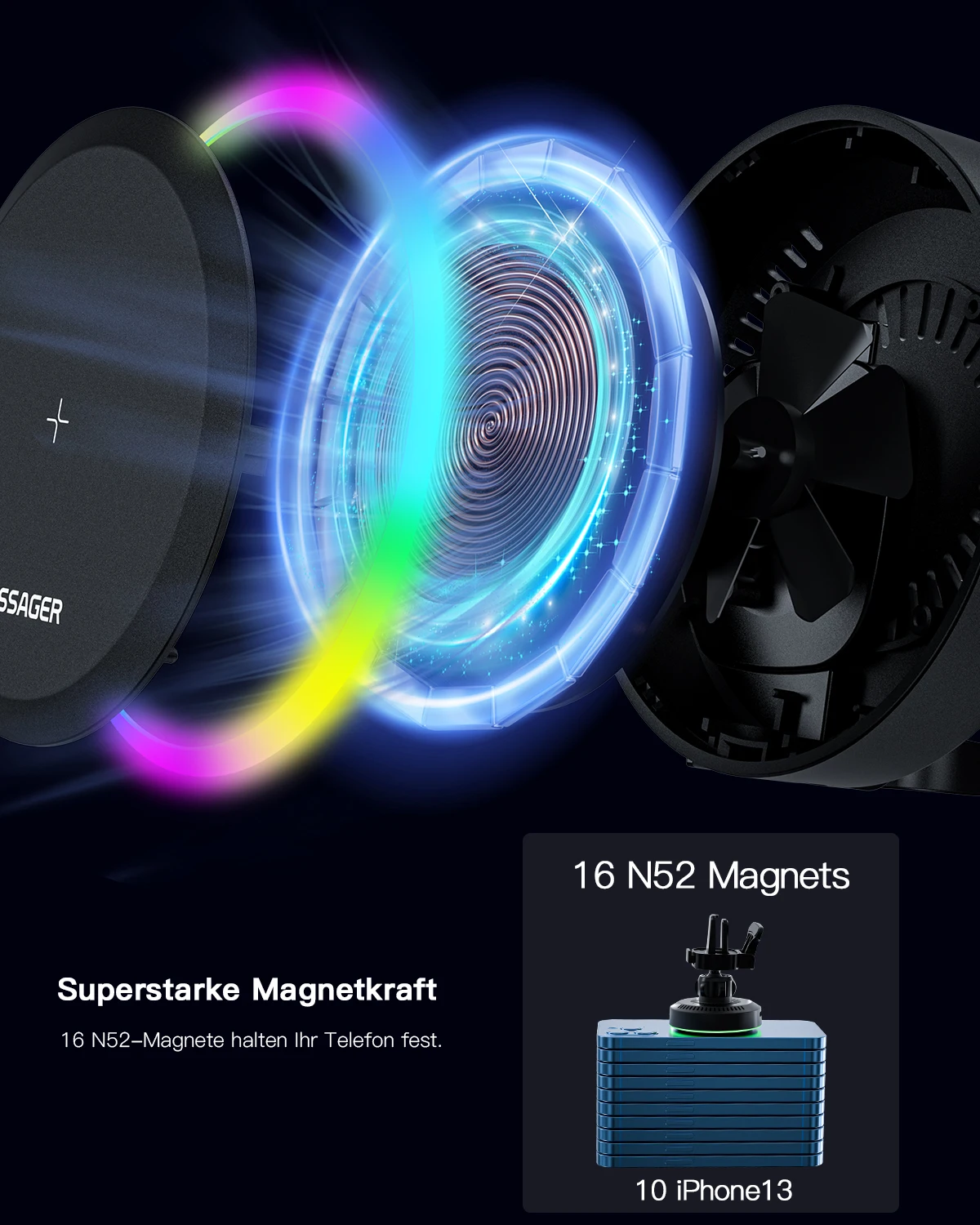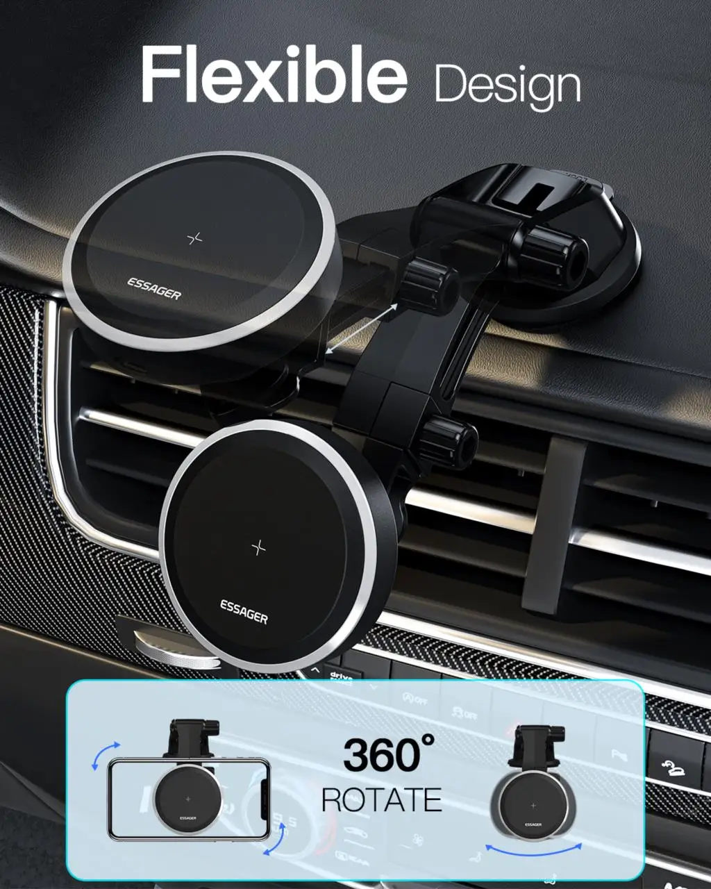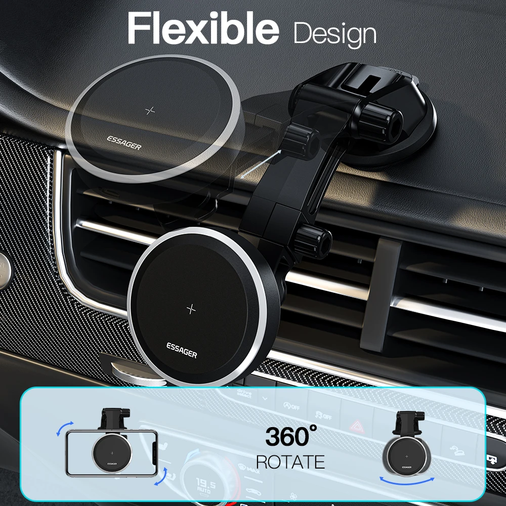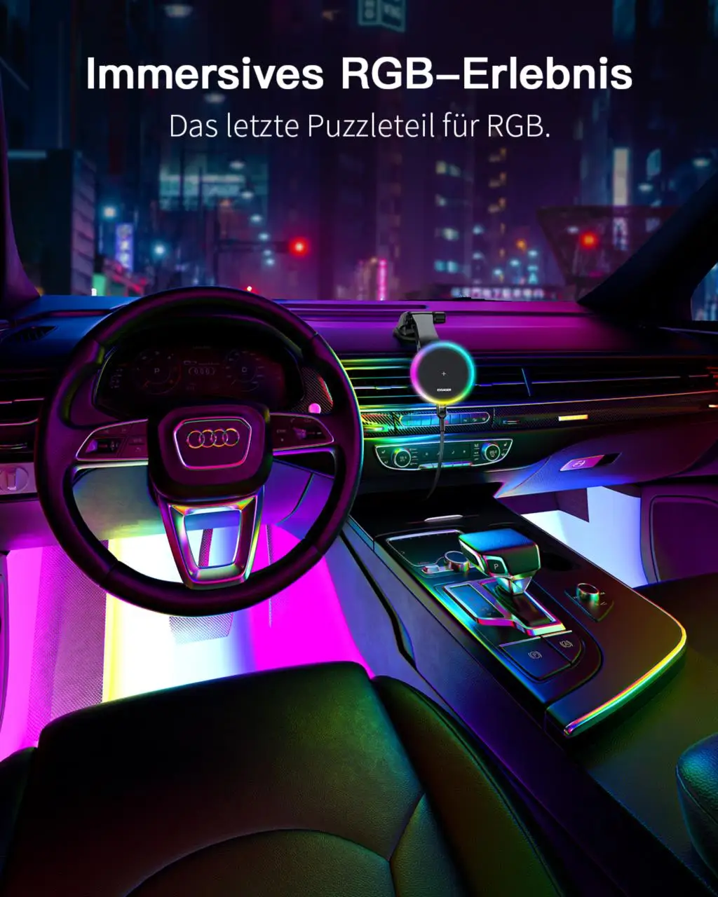 Comprar Essager-Soporte de teléfono magnético RGB para coche, cargador inalámbrico Qi de 15W para iPhone 13, 12 Pro Max, Samsung, Universal