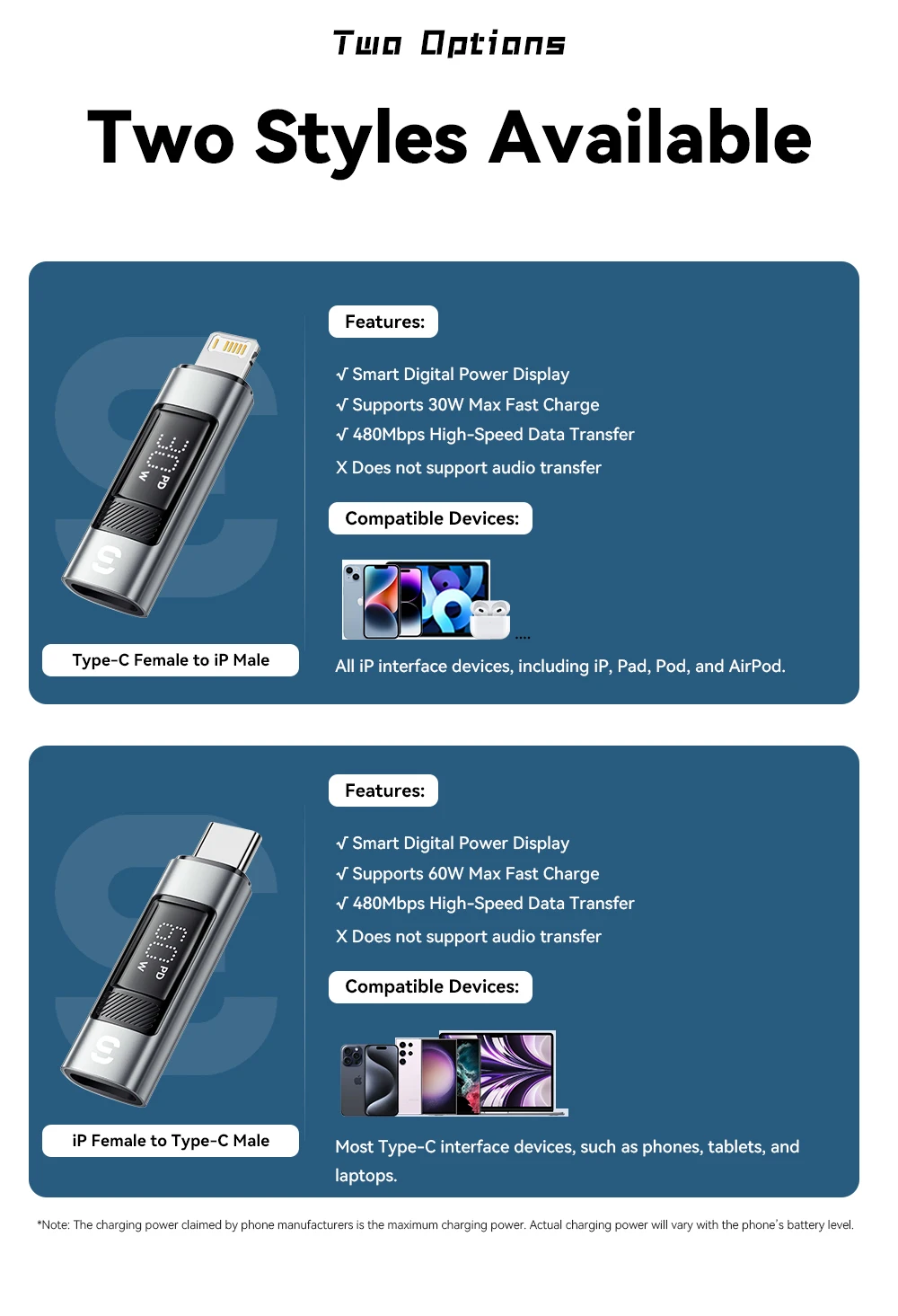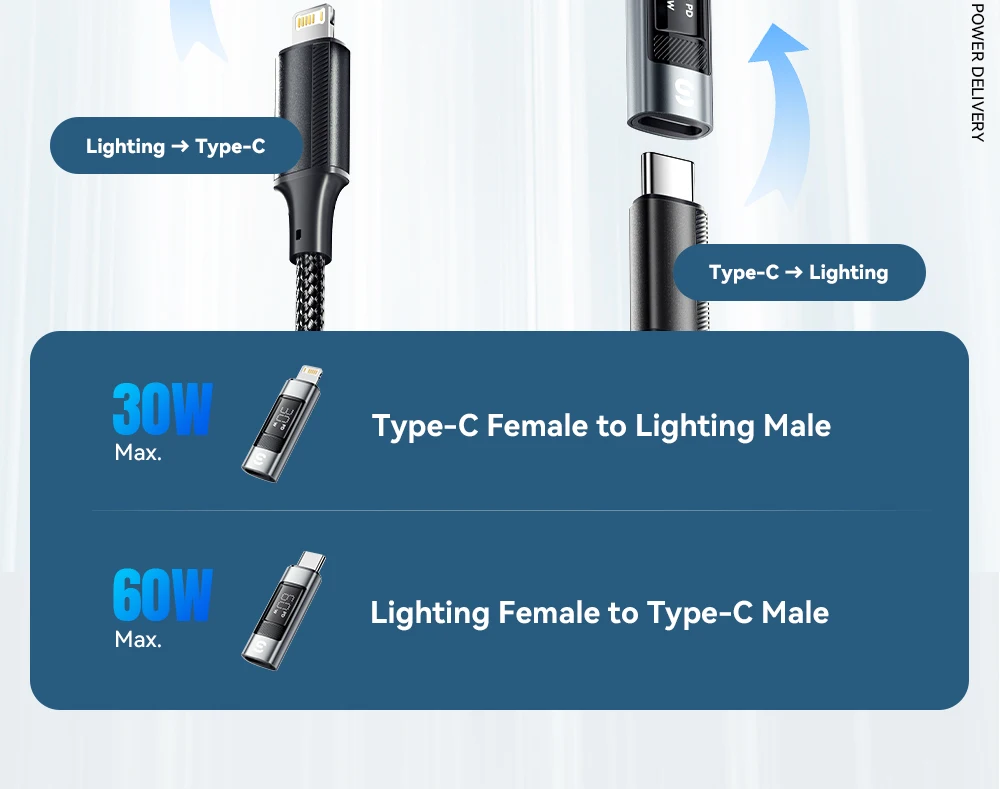 (30W máx.) Conversión de iluminación tipo C: este adaptador convierte el tipo C en iluminación, lo que lo hace compatible con una amplia gama de dispositivos.