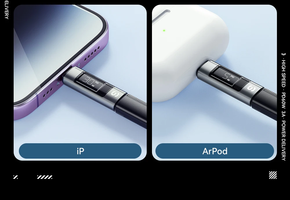 Muy buen adaptador de USB-C a Lightning. Indica cuántos vatios están pasando, y lo comparé con otro cable de una marca diferente, y ambos muestran los mismos números. Entonces debe ser preciso.