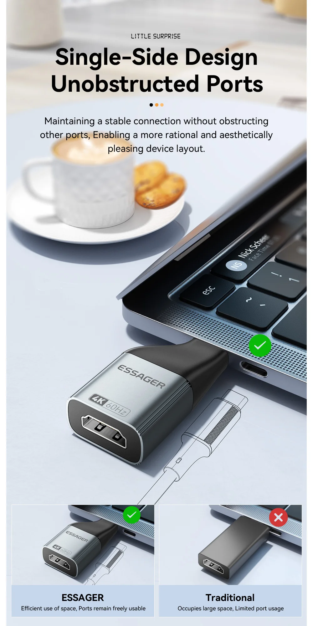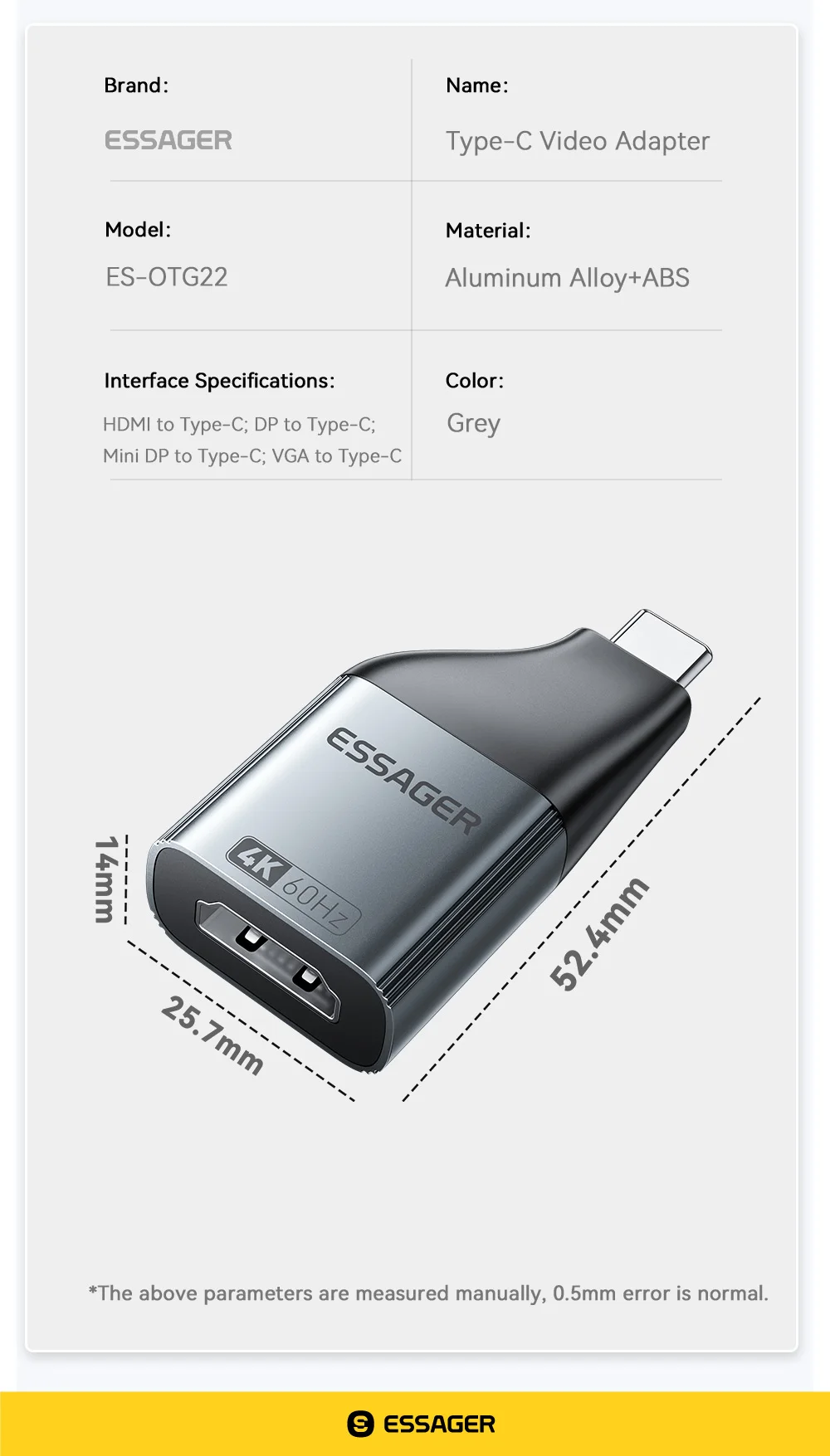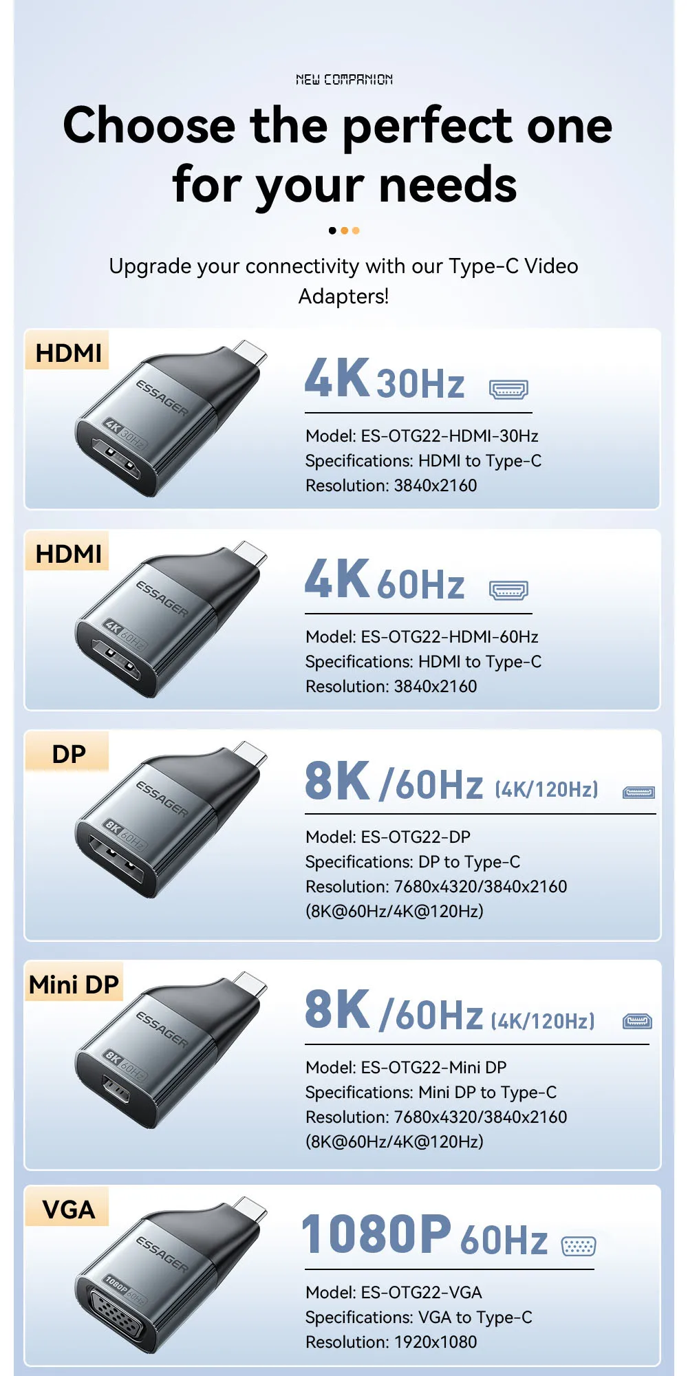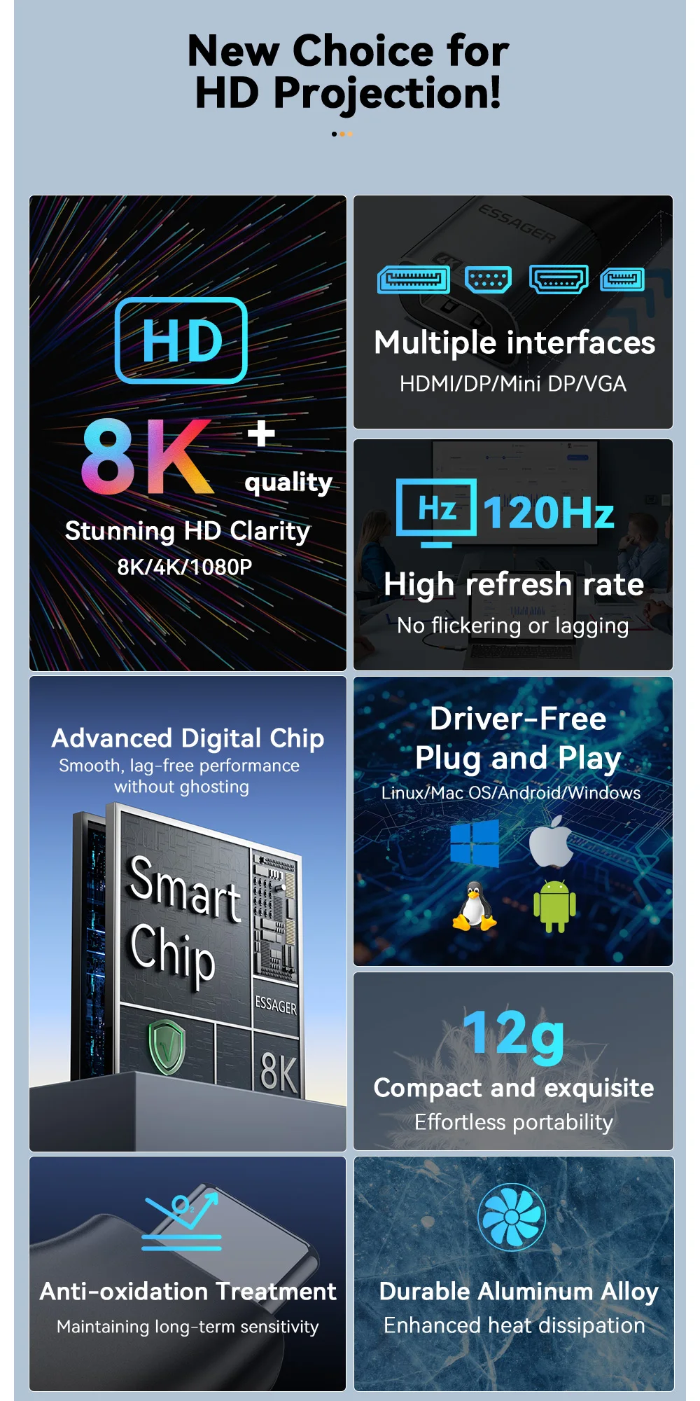 Comprar Essager USB-C a HDMI DP VGA Mini DisplayPort adaptador 8K 60Hz/4K 120Hz convertidor de vídeo de alta definición para MacBook PC portátil
