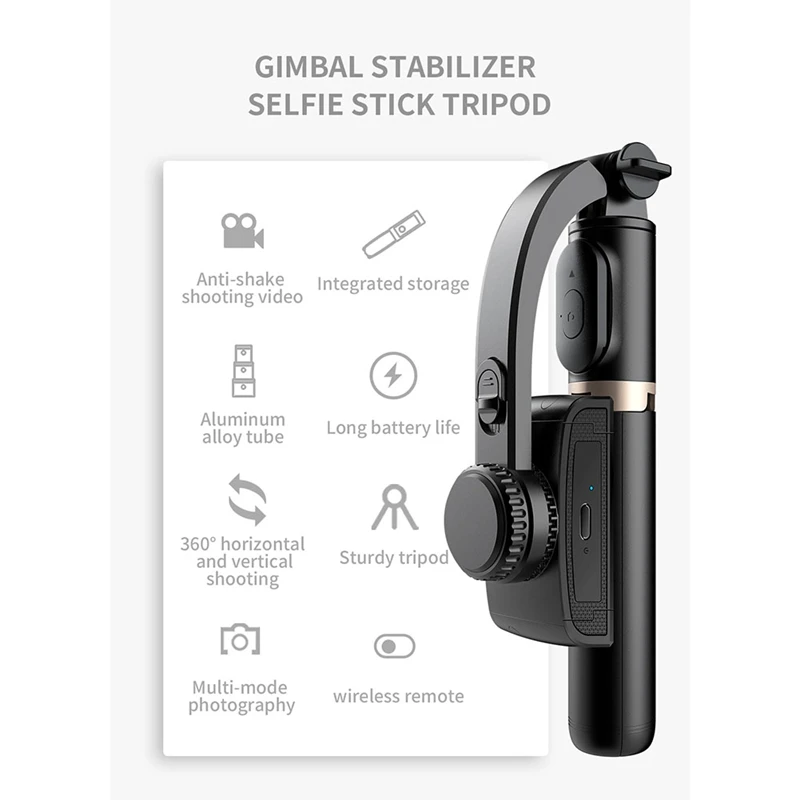 Comprar Estabilizador de mano con Bluetooth para teléfono inteligente, cardán de aluminio con trípode, palo de Selfie, cardán plegable