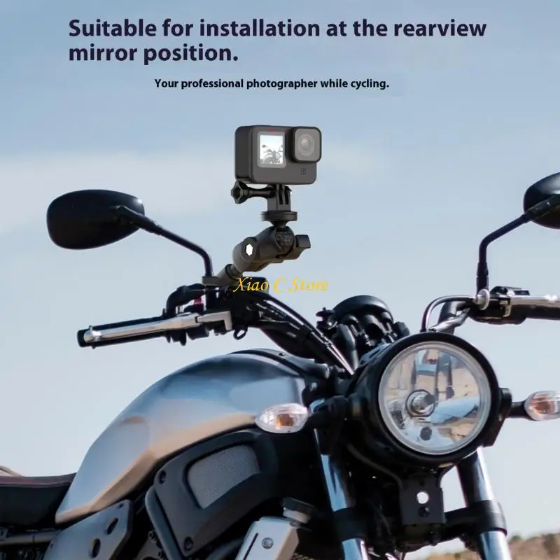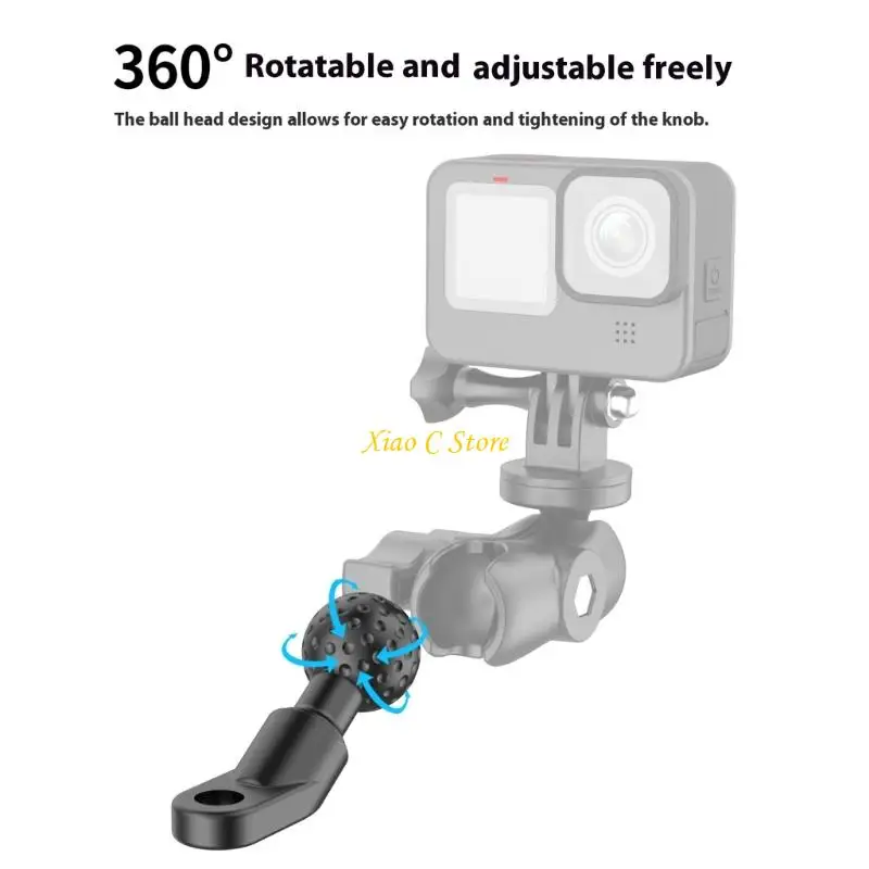 Características:OOTDTYEl soporte para cámara de motocicleta cuenta con un 360°cabeza esférica giratoria ajustable, lo que permite un posicionamiento estable de la cámara de acción en el cristal del manillar durante viajes a alta velocidad mientras mantiene imágenes sin vibraciones.