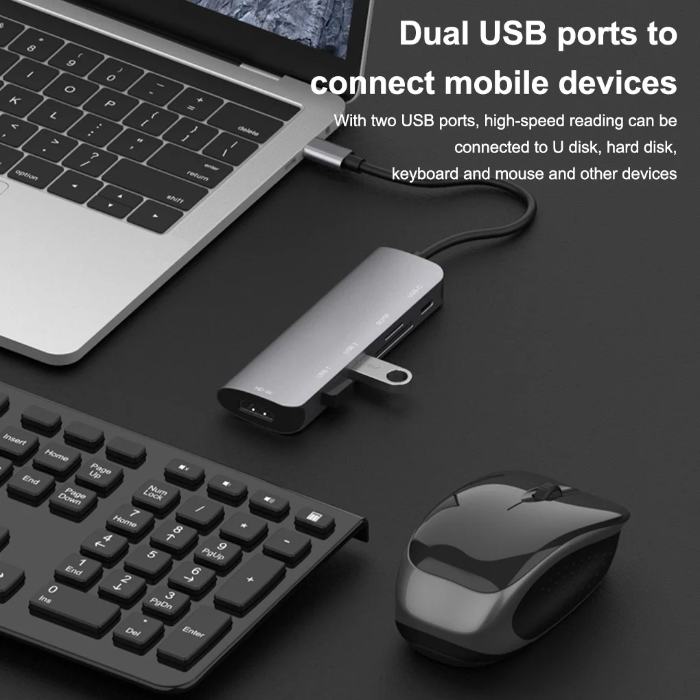Multifunción: este adaptador compatible con tipo C a HDMI cuenta con muchos puertos, como USB 2,0, compatible con HDMI, TF, etc.