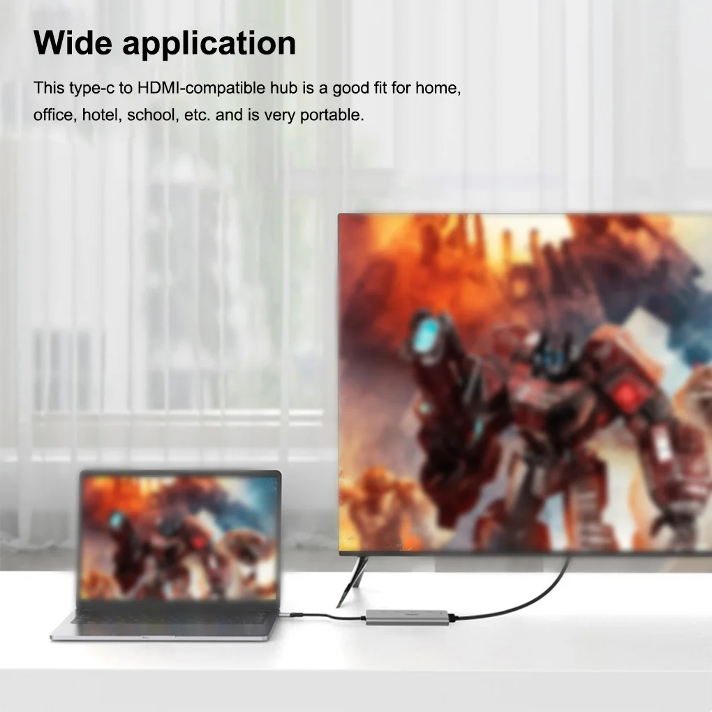 Amplia aplicación: Este concentrador compatible con tipo C a HDMI es adecuado para el hogar, la Oficina, el hotel, la escuela, etc. y es muy portátil.