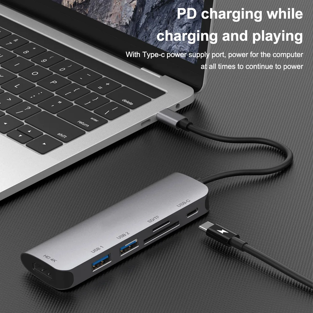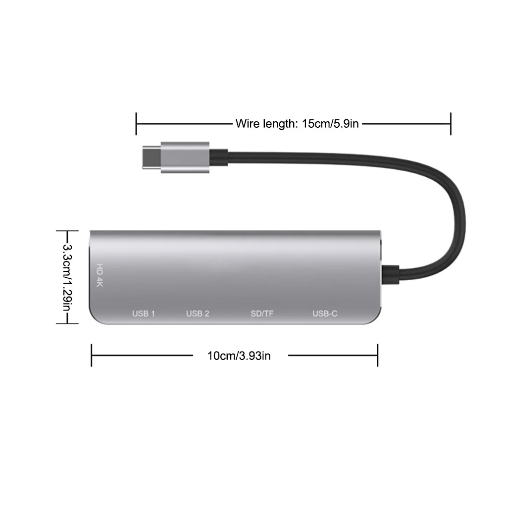 Multifunción: este adaptador compatible con tipo C a HDMI cuenta con muchos puertos, como USB 2,0, compatible con HDMI, TF, etc.