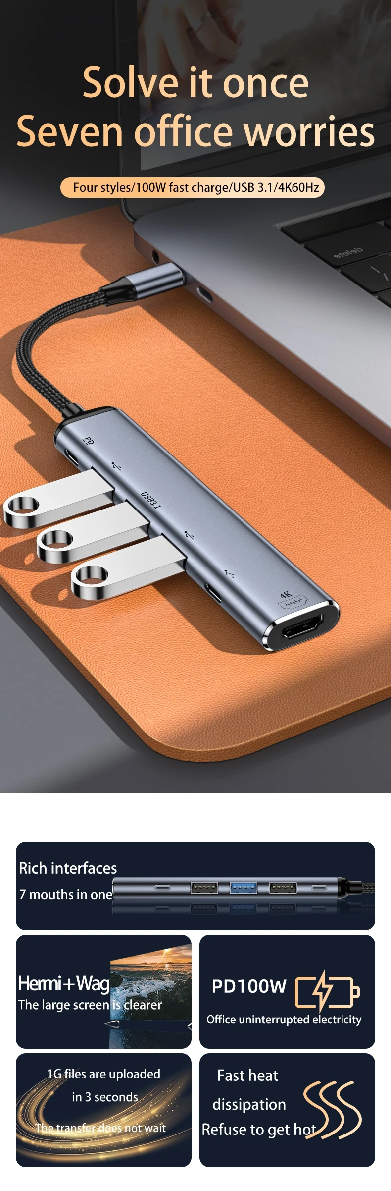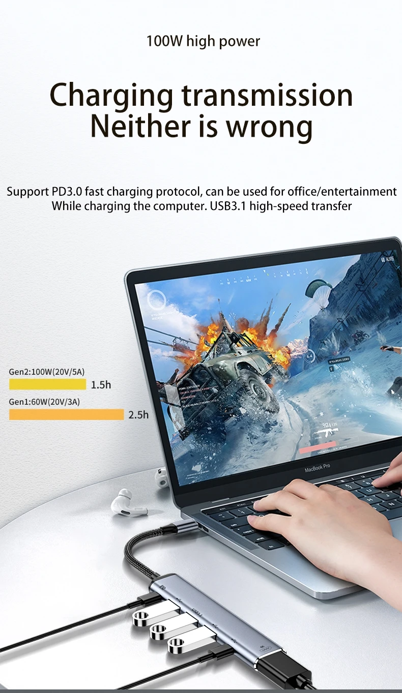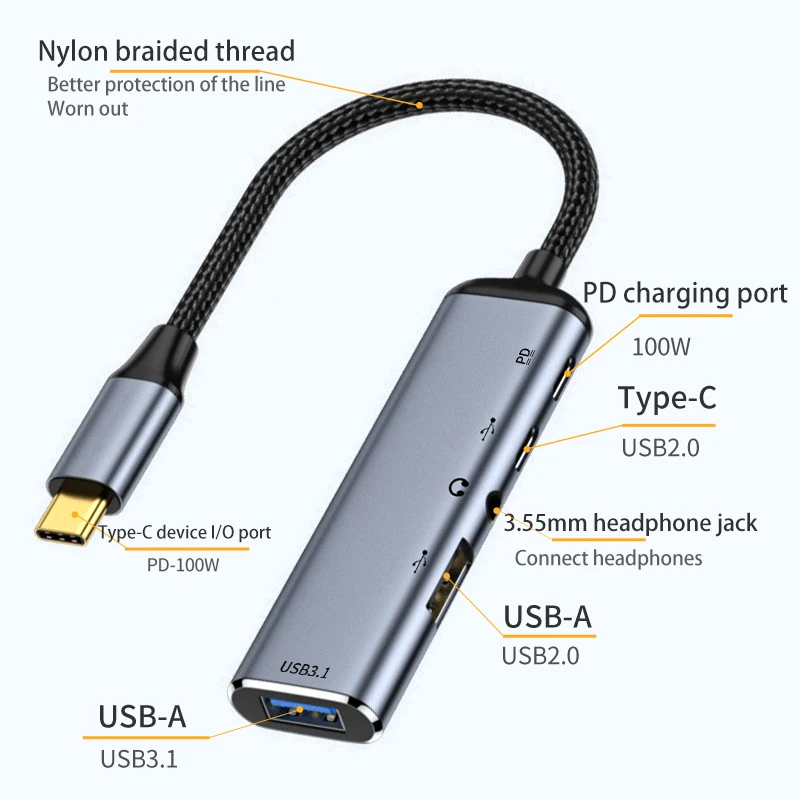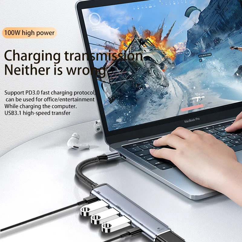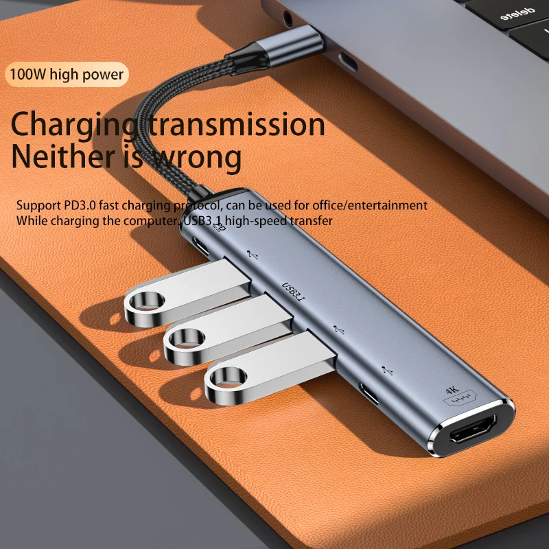 Comprar Estación de acoplamiento 6 en 1, adaptador de TYPE-C con USB-C, PD, recargable, HDTV, 4K, USB 3,0, concentrador de TYPE-C, adaptador de Audio y vídeo