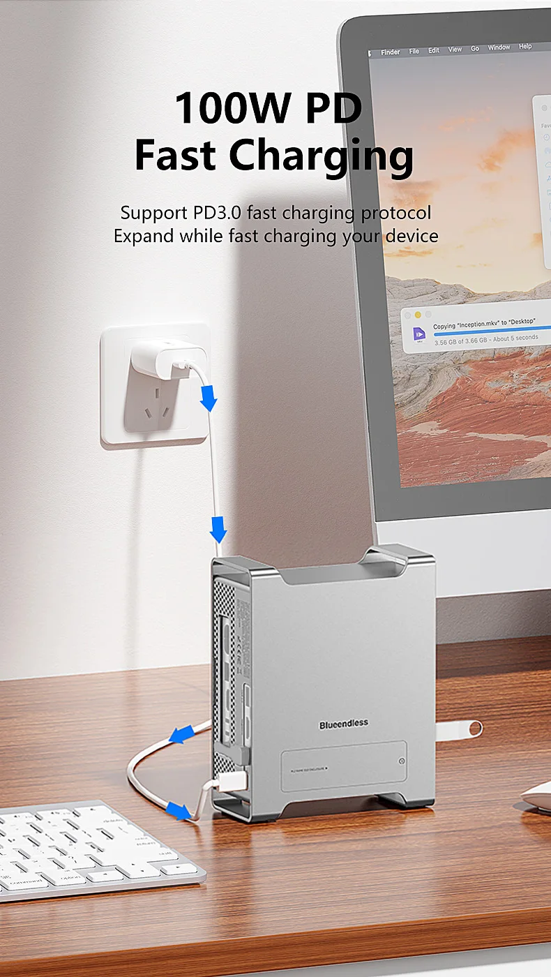 HDTV+2*USB-A 3.2+USB-A 2.0+SD 4.0/TF 4.0+Carcasa SSD NVME+PD 100W